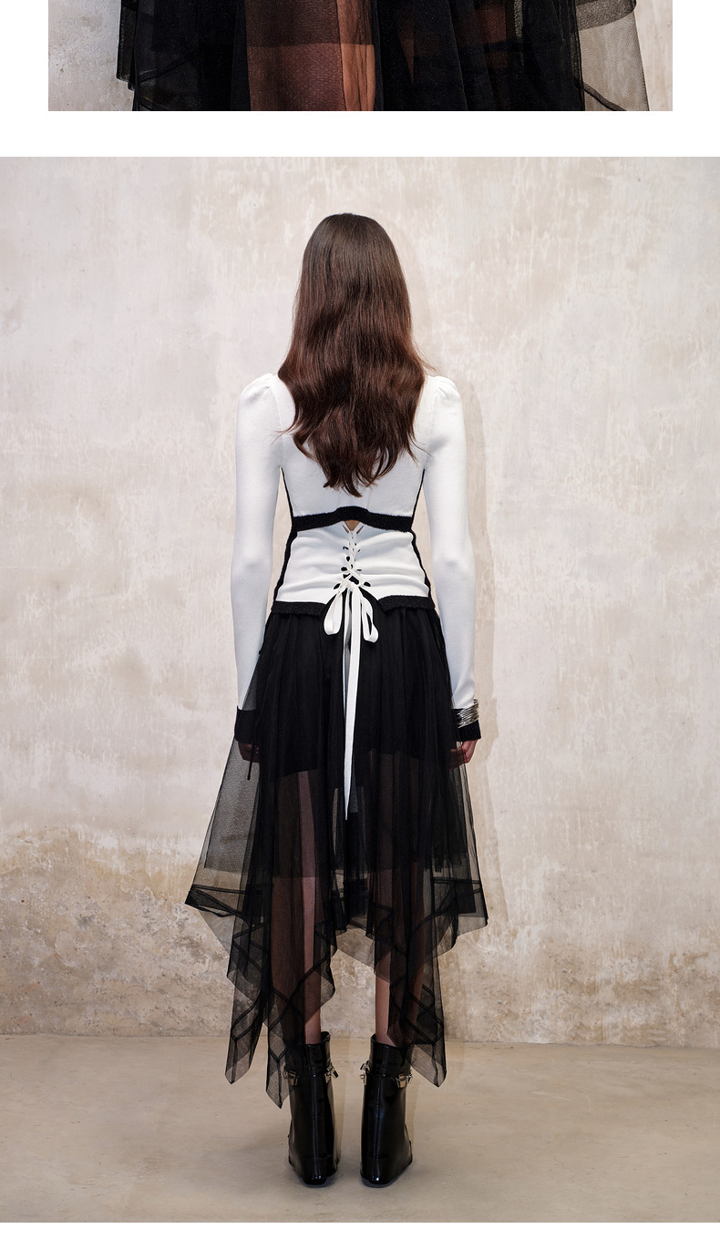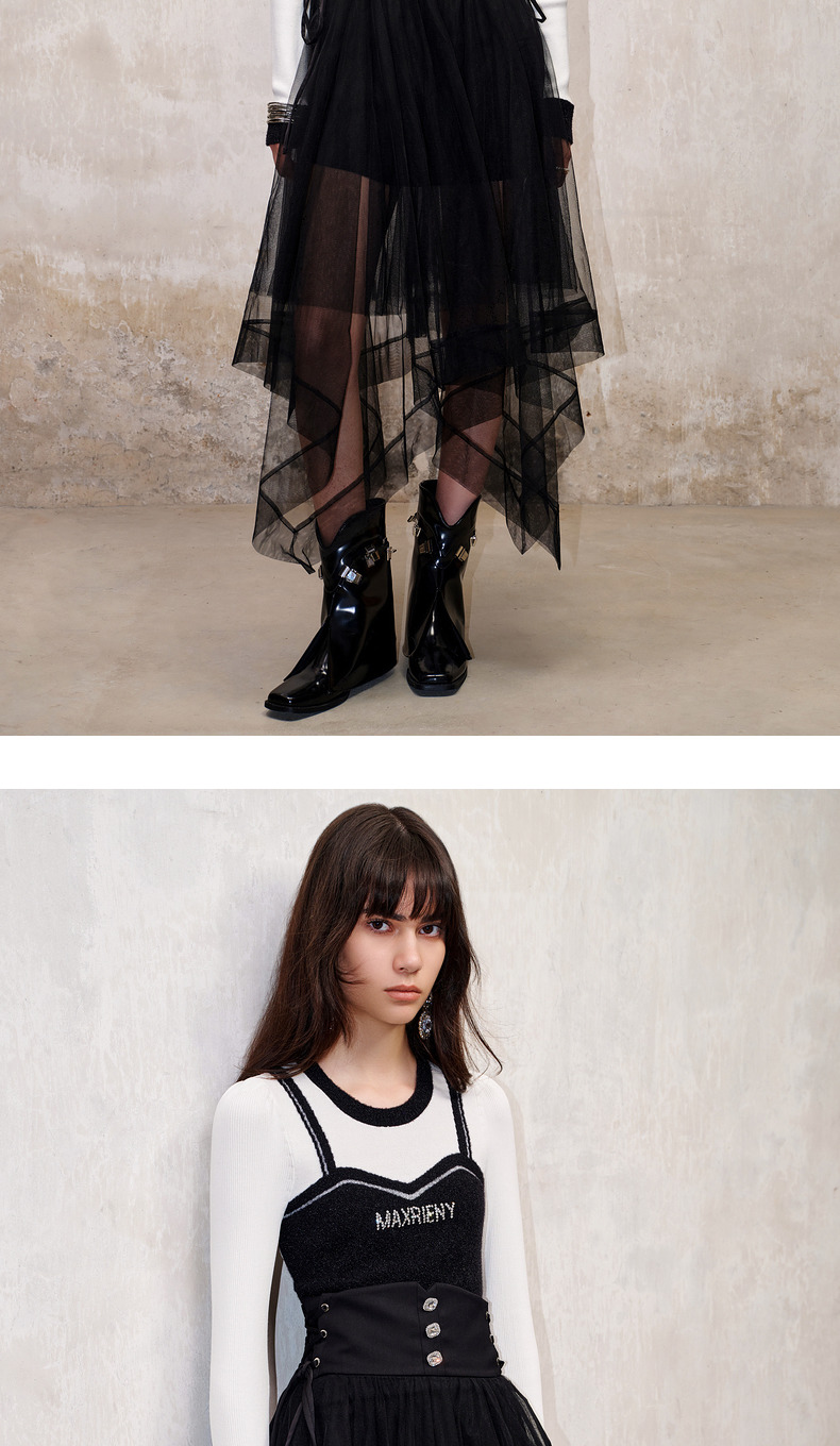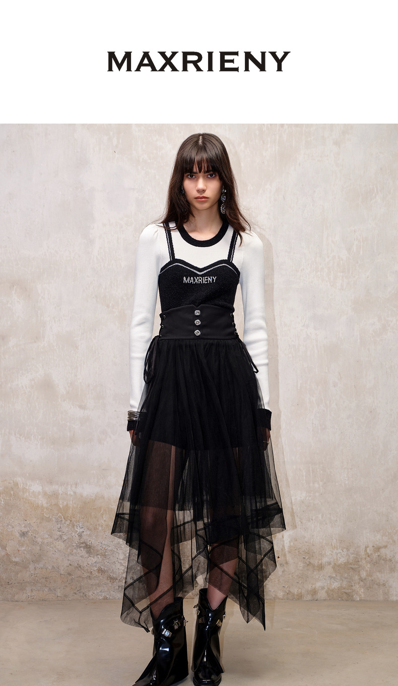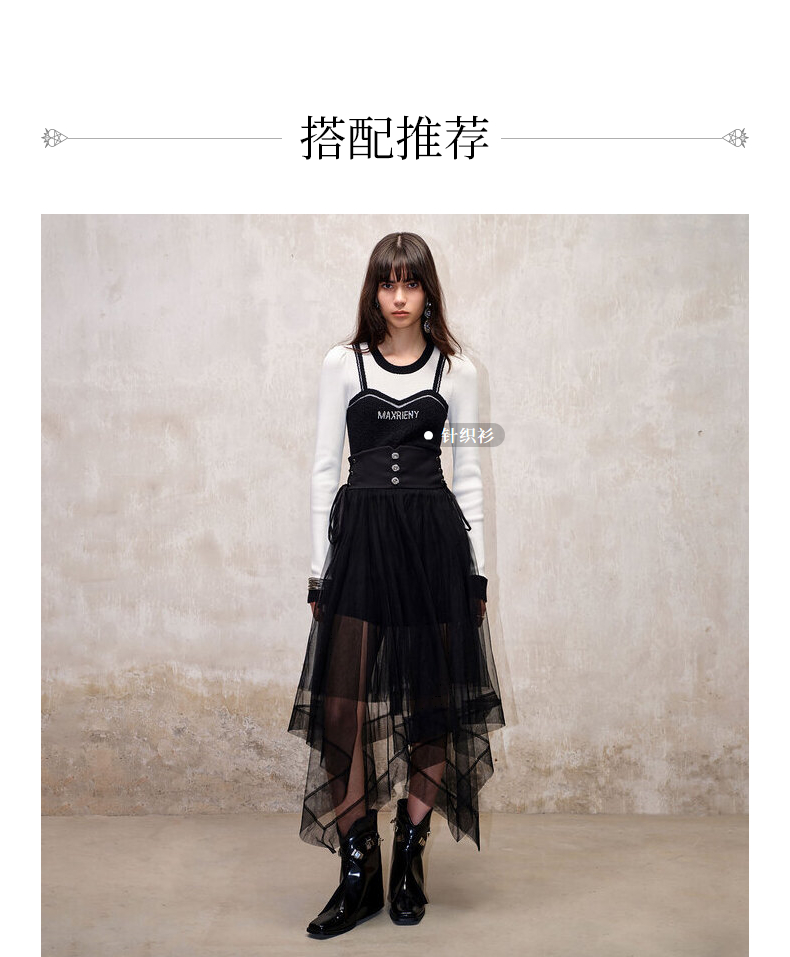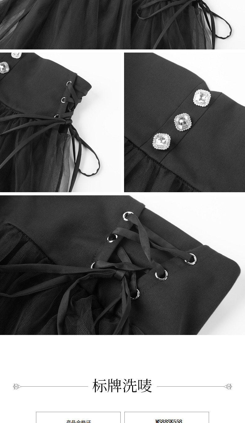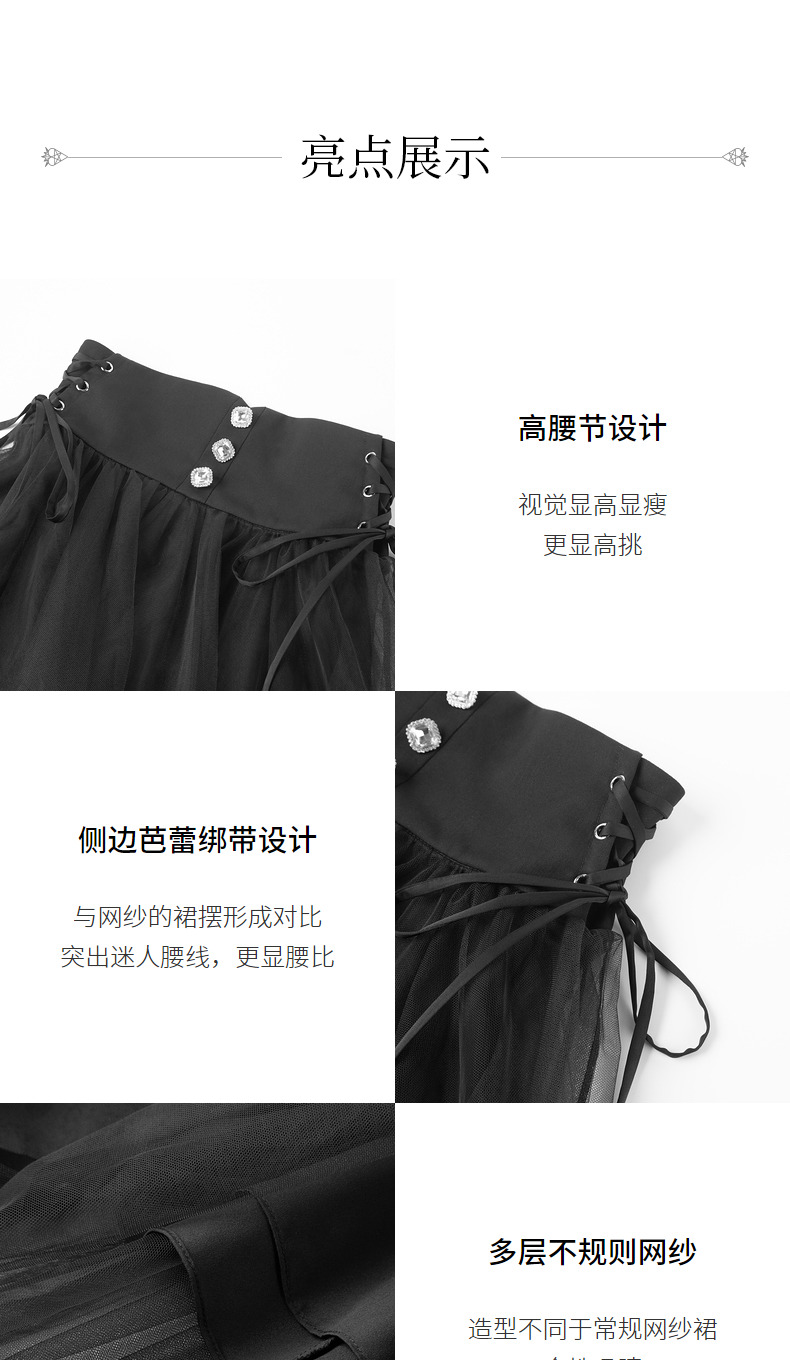 MAXRIENY芭蕾系带高腰封网纱半裙秋季精致复古裙子(货号:MS88SK558)