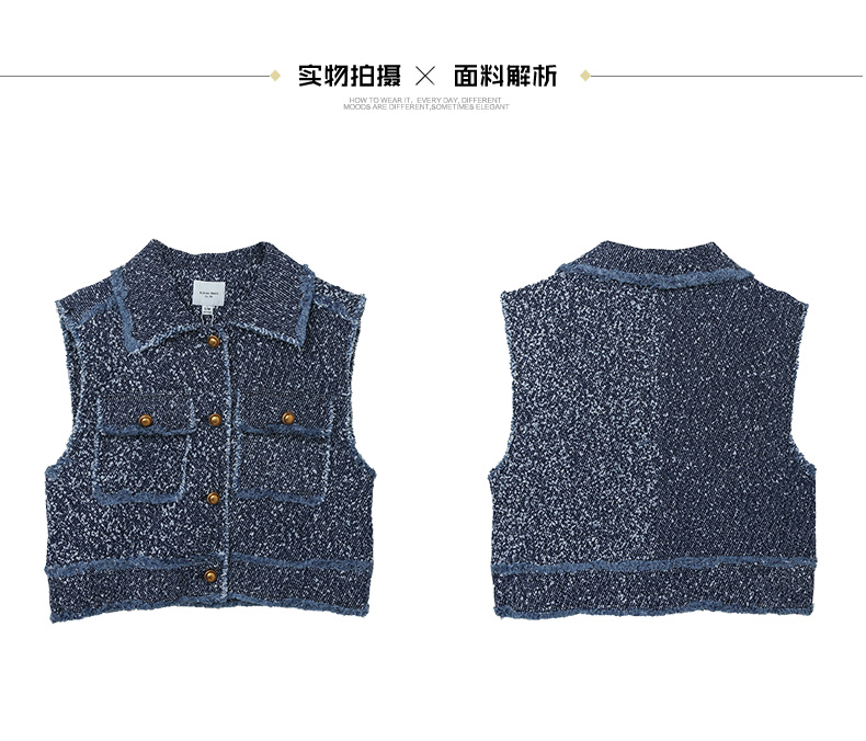 复古腔调十足!蓝调粗花呢马甲,解锁小香风新时尚