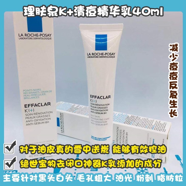 肤泉K+清痘精华乳40ml👍绝世宝物去闭口神器❗❗K乳添加的成分,对于油皮真的雪中送炭😘,能够有效控油✔,调节油脂的分泌从而改善肌肤的水油平衡〽!质地清爽不油腻🍃,淡淡的香味😊。主要针对👉黑头白头、毛孔粗大、油光、粉刺、脂肪粒、成人痘。帮助净化毛孔♻,减少黑白头的产生,🙅减少痘痘反复生长,紧致毛孔深层控油。再也不用担心近距离被人发现脸上的小颗粒啦👅,光滑肌再也不是梦想🌟!