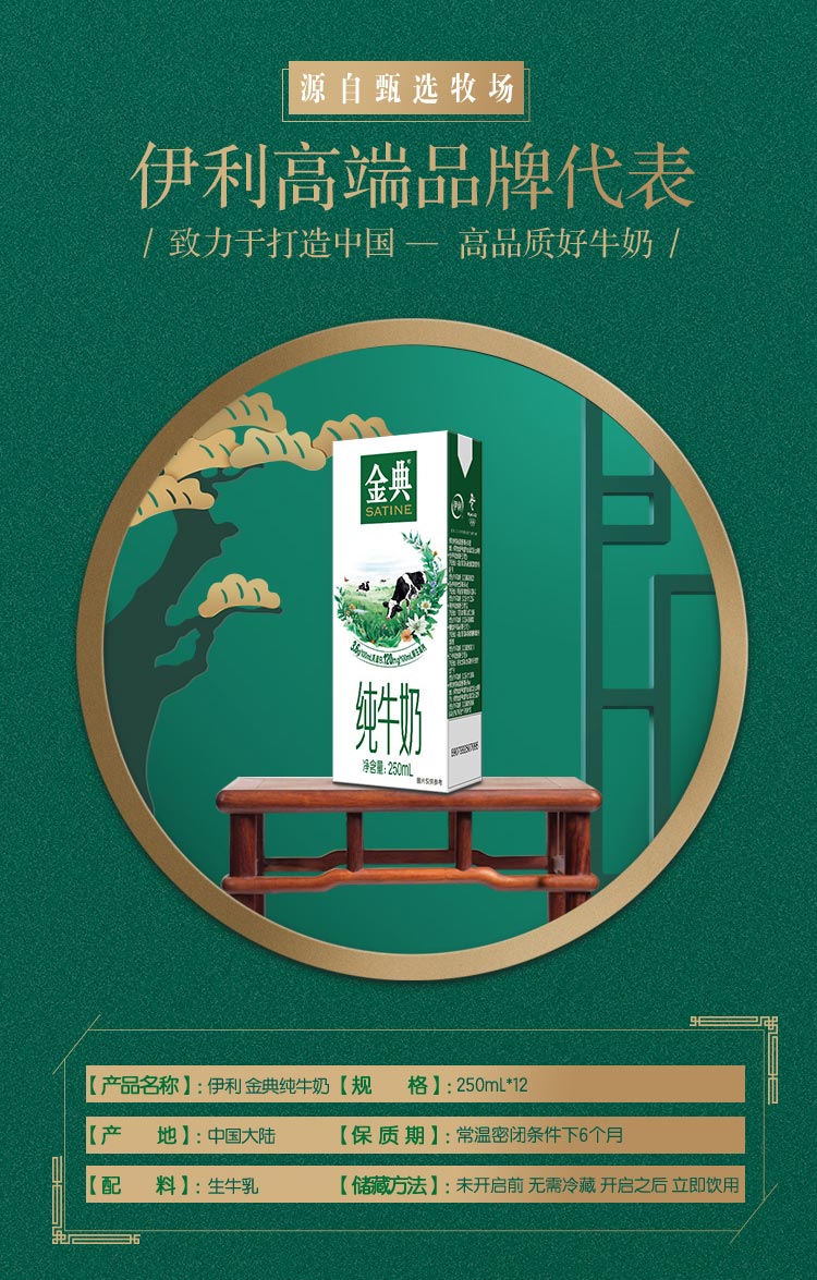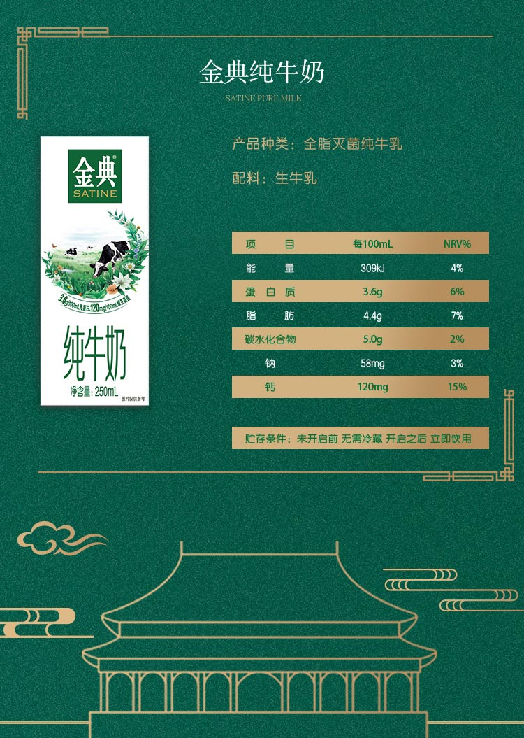 金典纯牛奶 250ml*12盒/箱