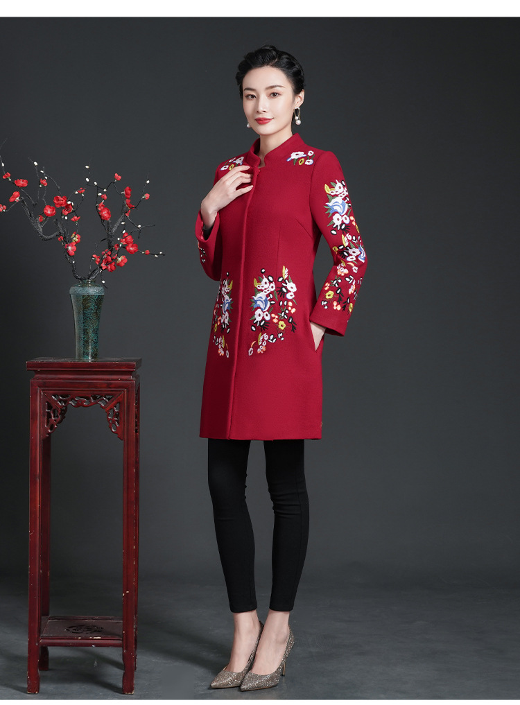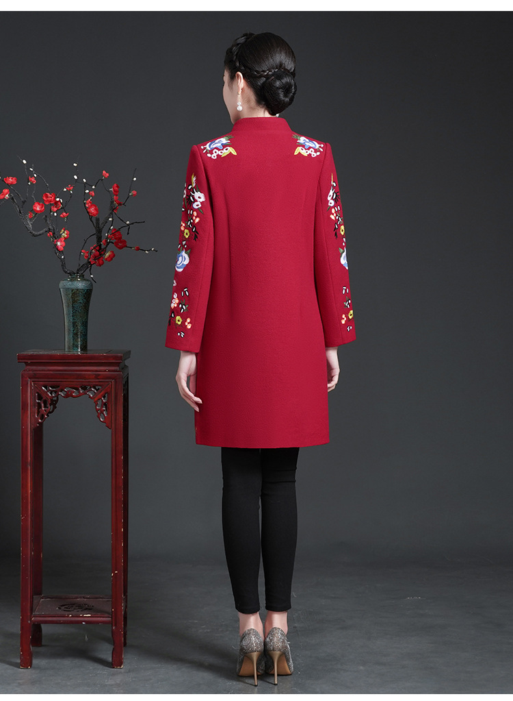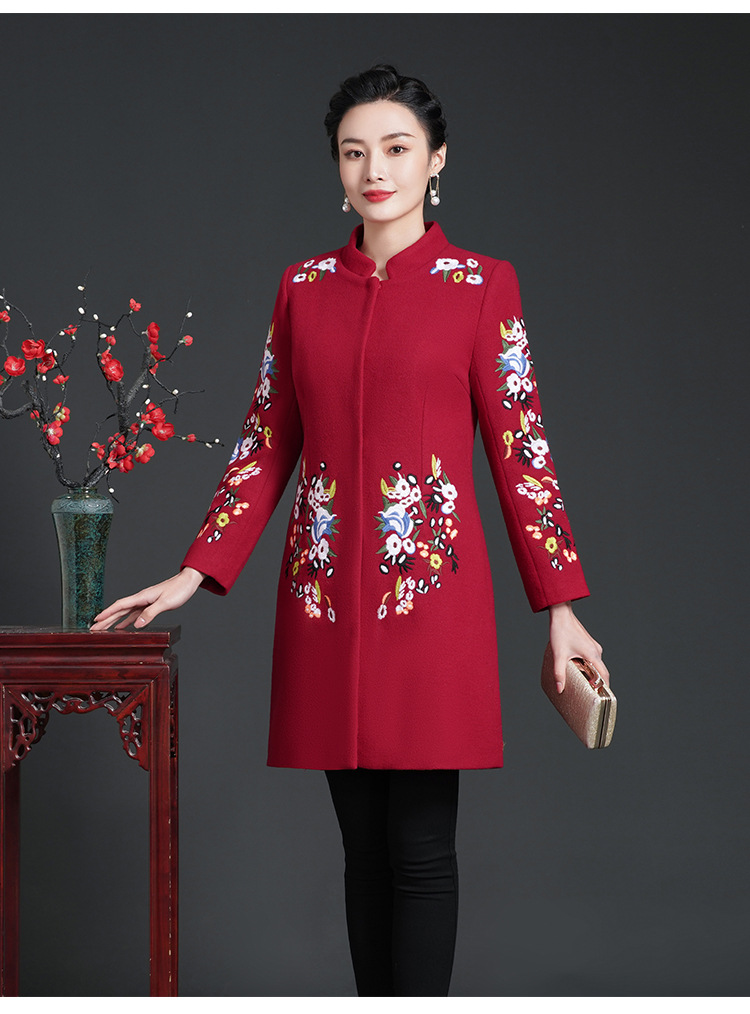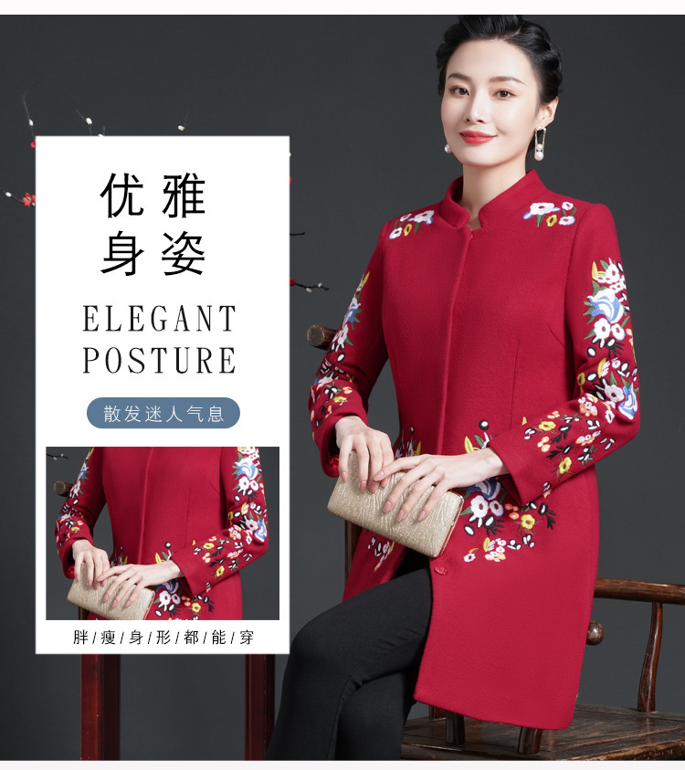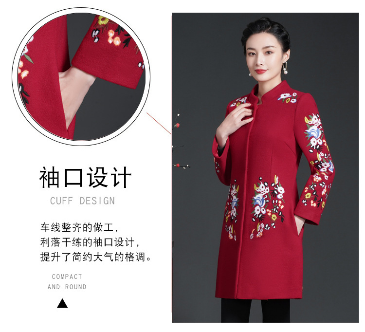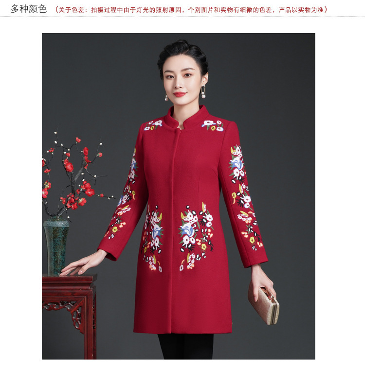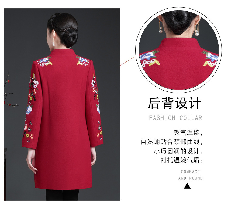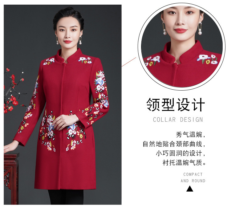上海旗袍厂ZY-Y1228冬季新款毛呢刺绣花立领大衣妈妈装女装气质风衣外套