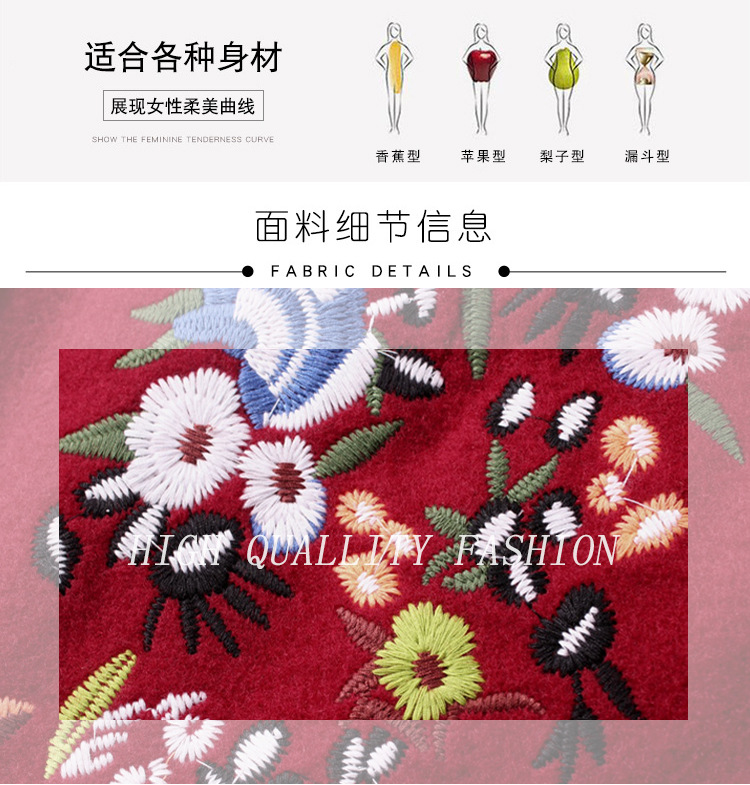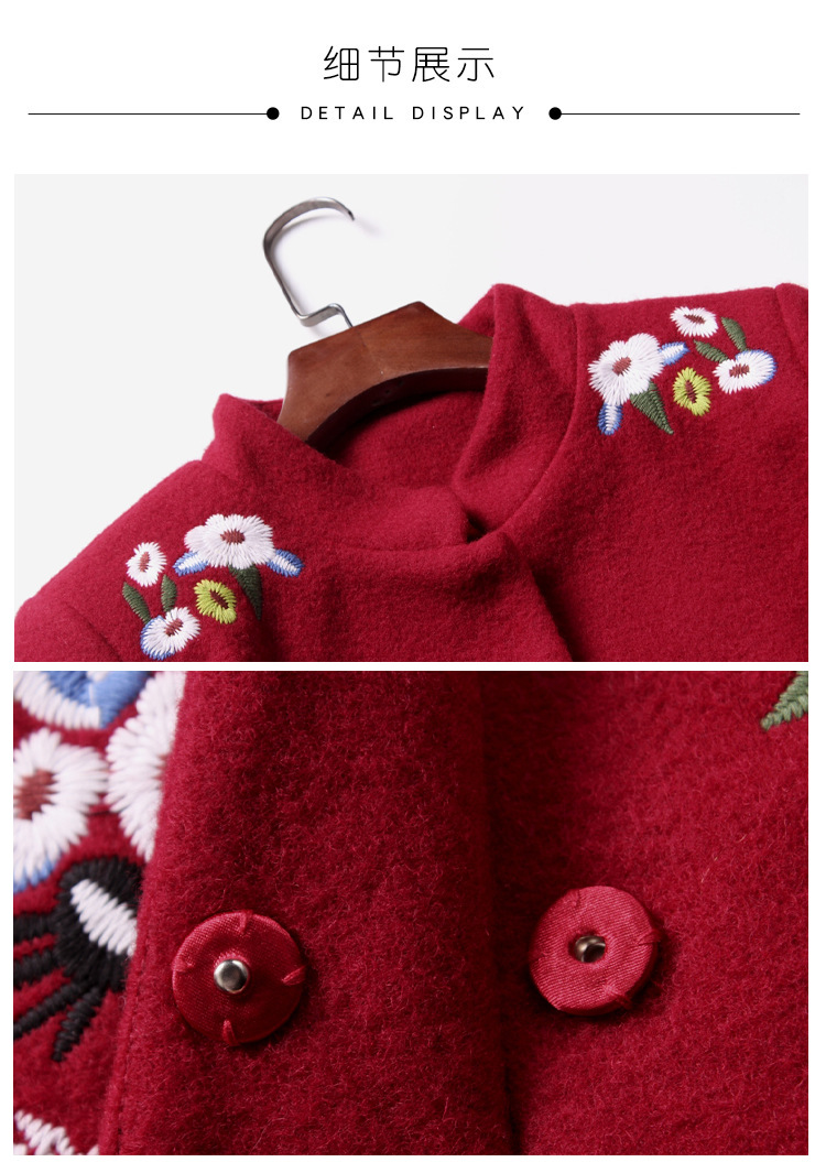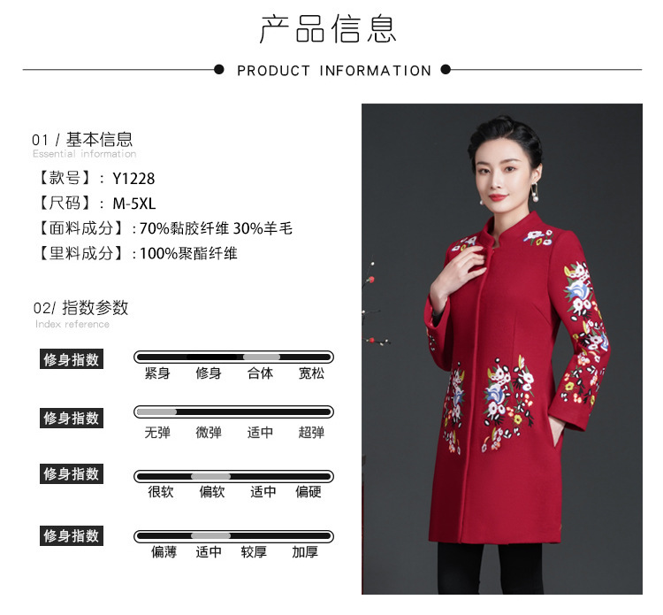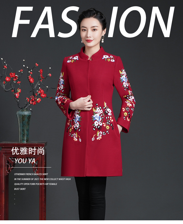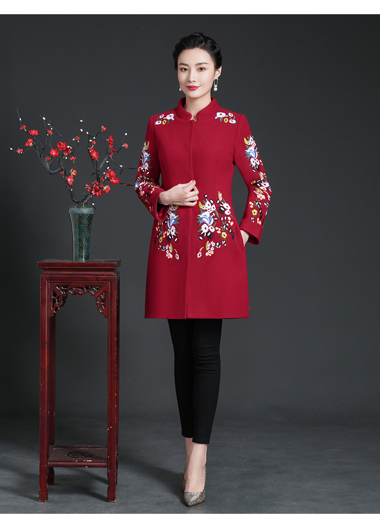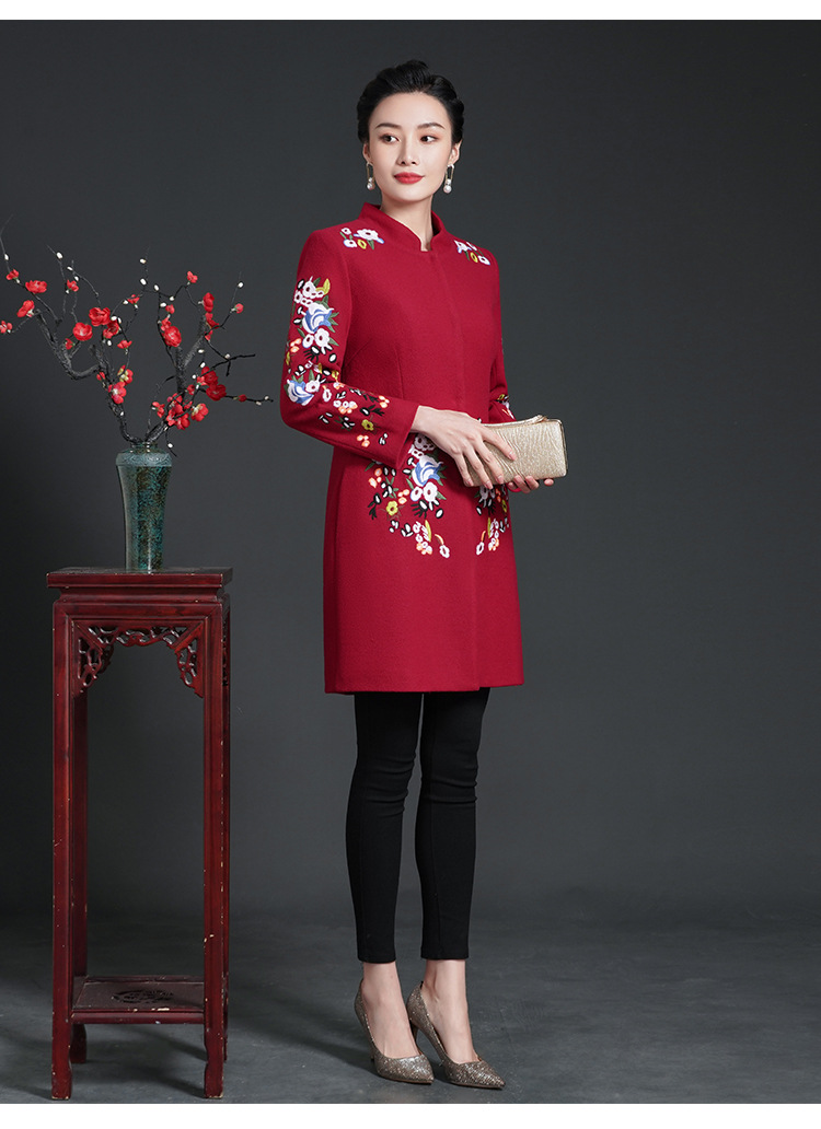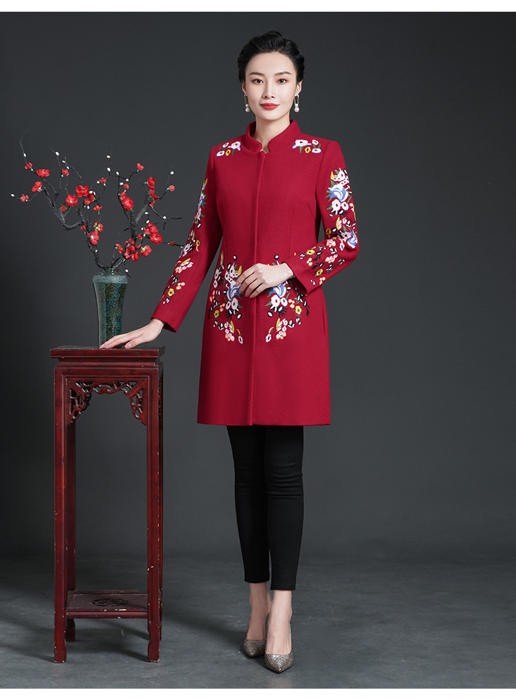 上海旗袍厂ZY-Y1228冬季新款毛呢刺绣花立领大衣妈妈装女装气质风衣外套