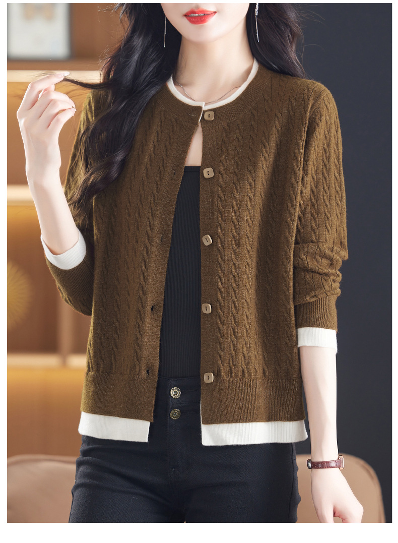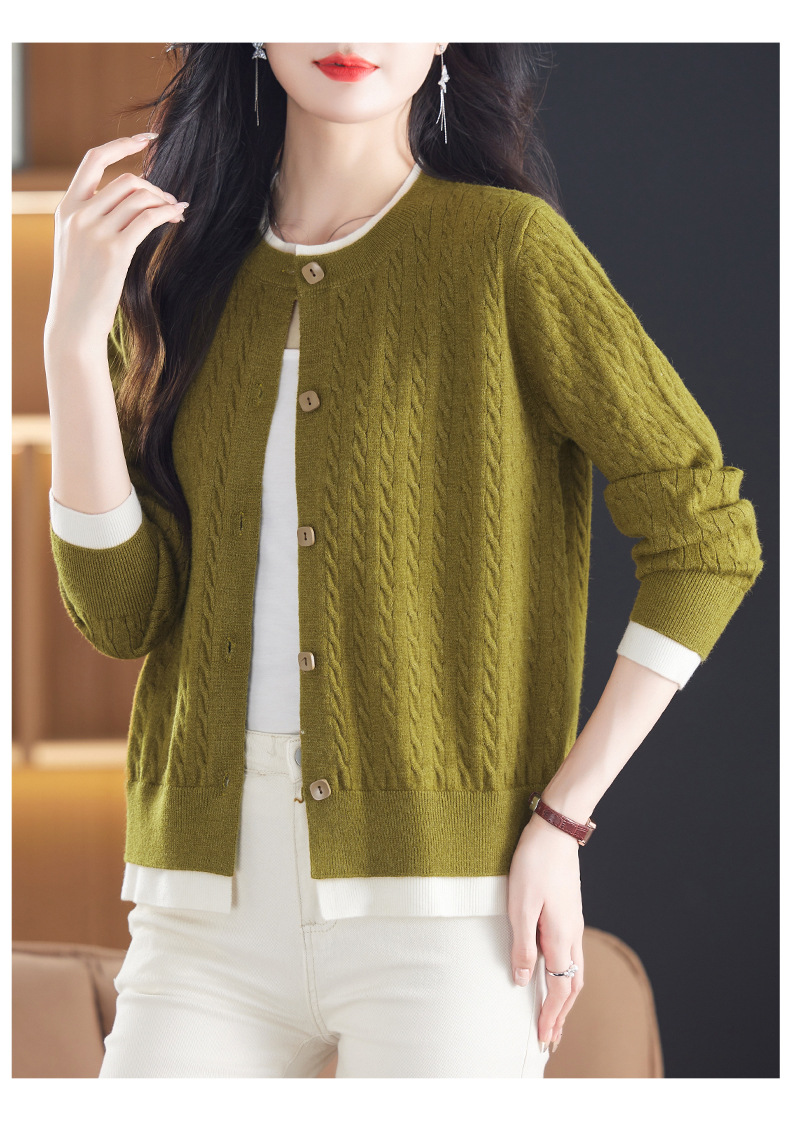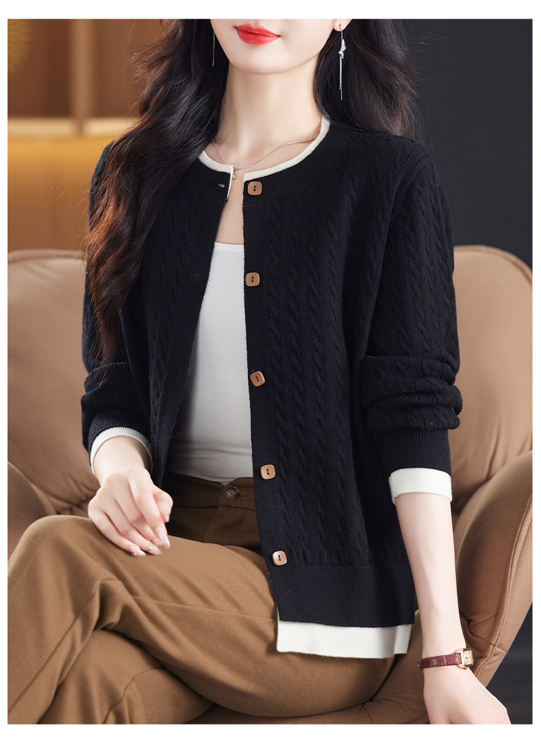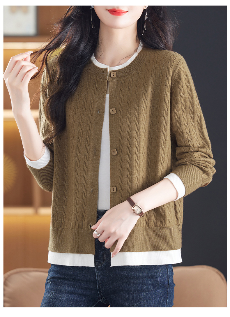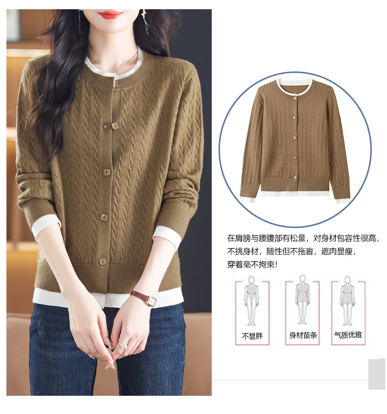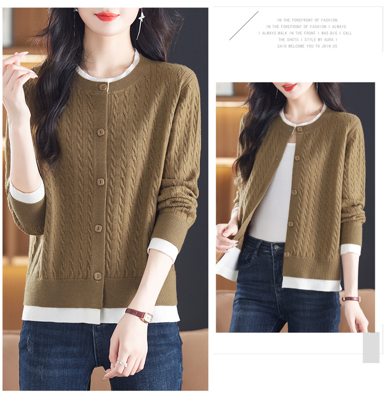 CC-XMY-89580假两件针织衫开衫外搭圆领上衣春秋2024新款早秋洋气外穿毛衣外套