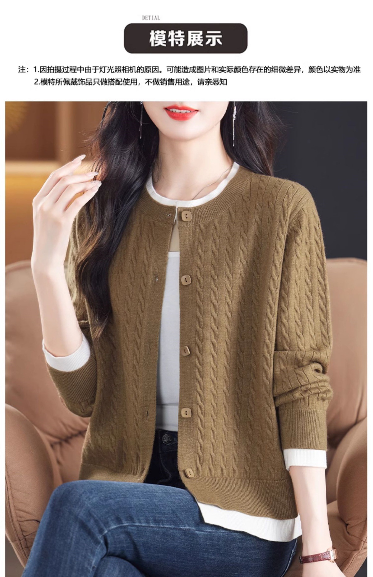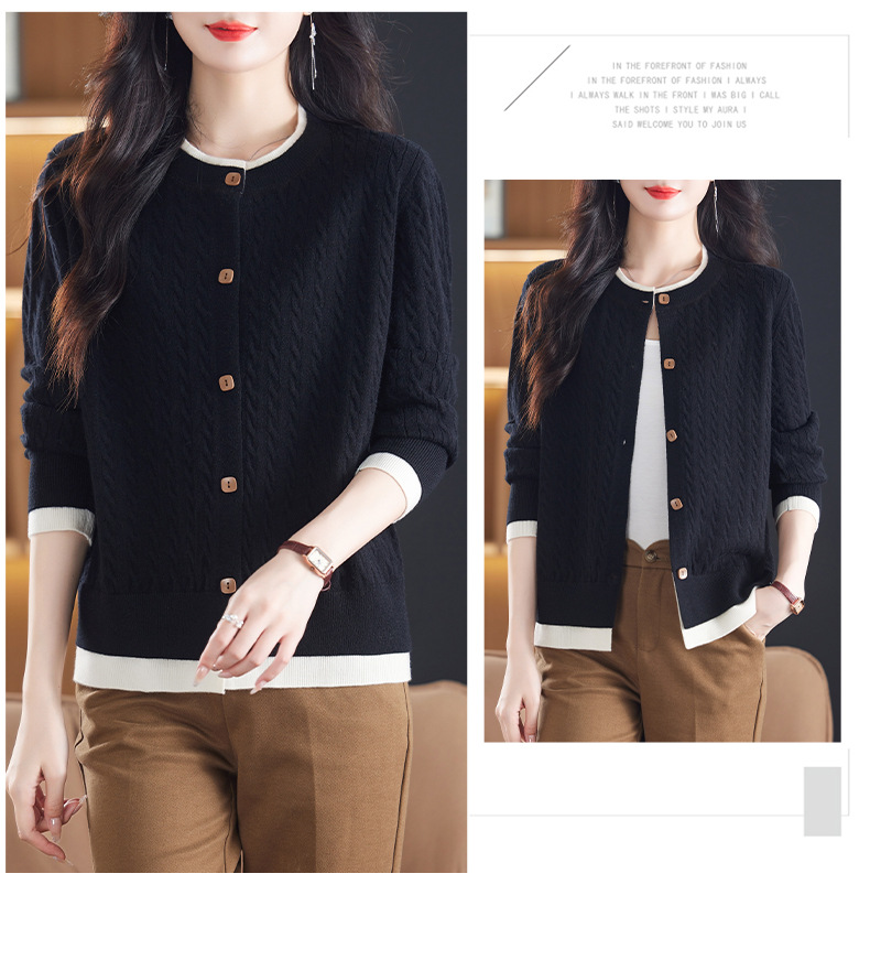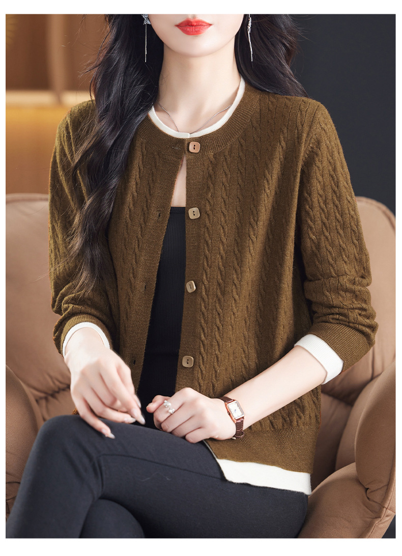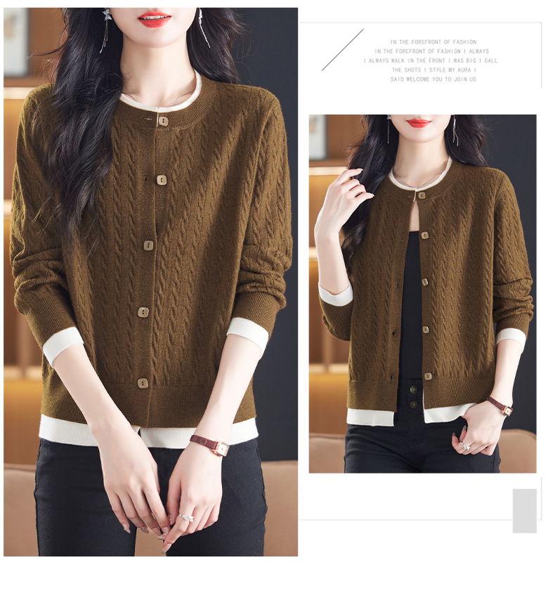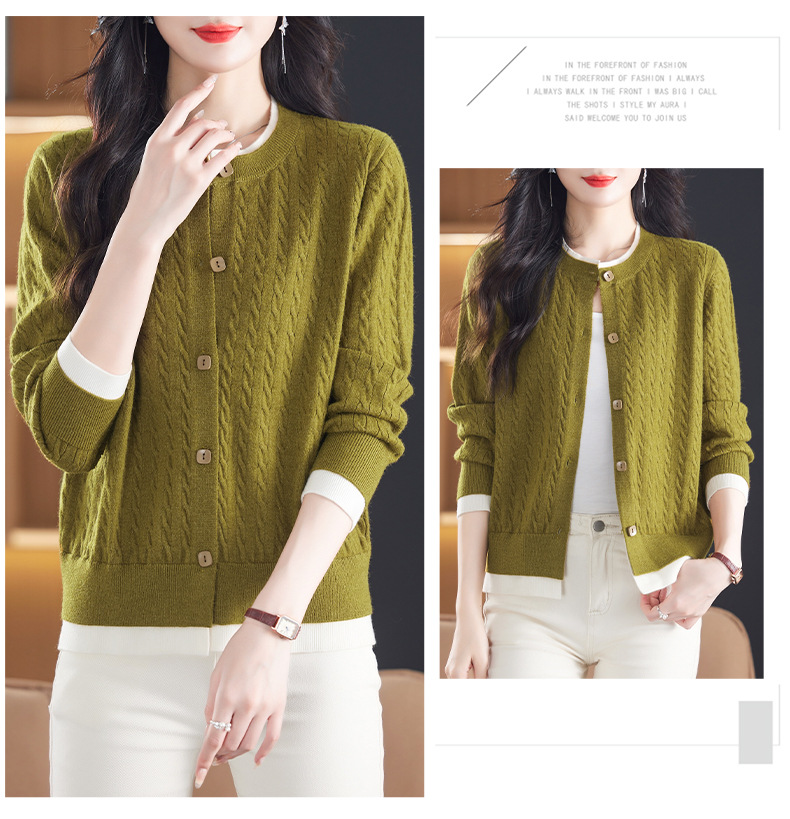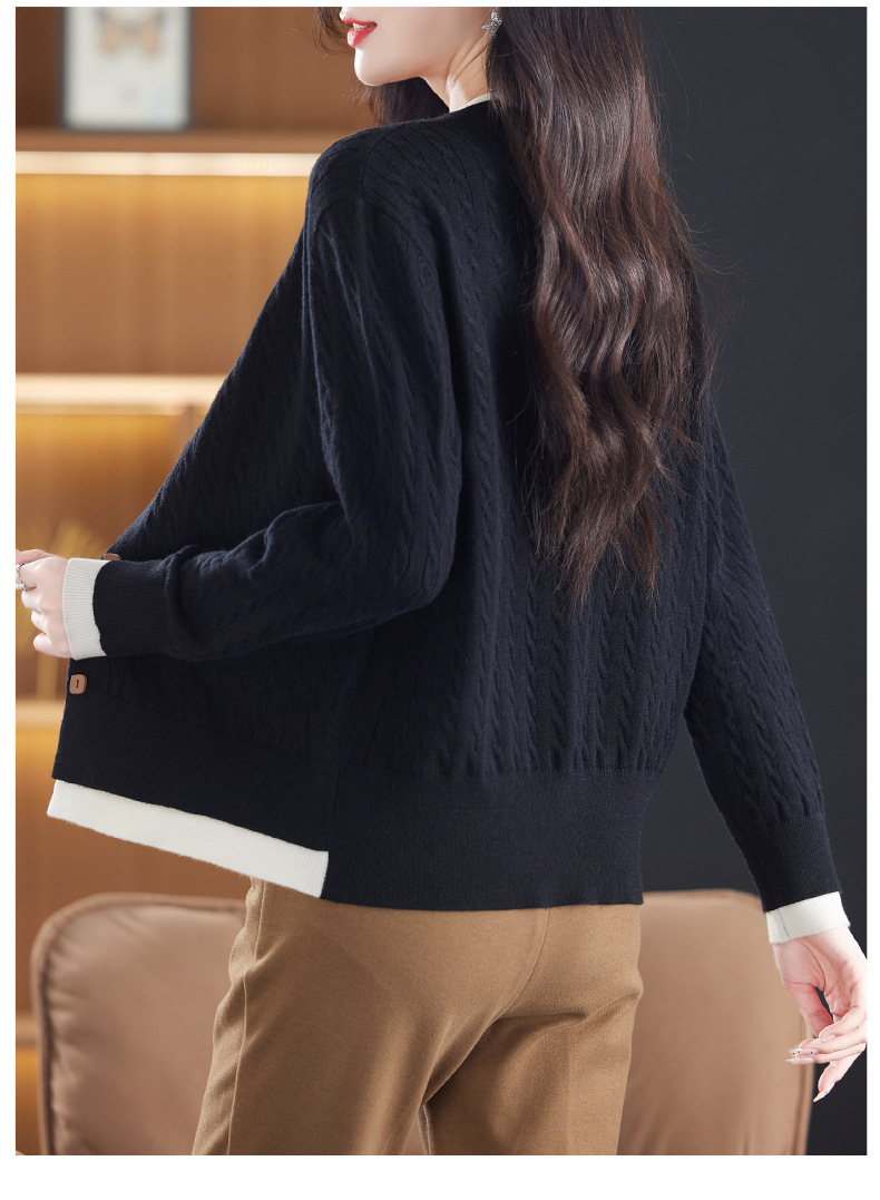 CC-XMY-89580假两件针织衫开衫外搭圆领上衣春秋2024新款早秋洋气外穿毛衣外套