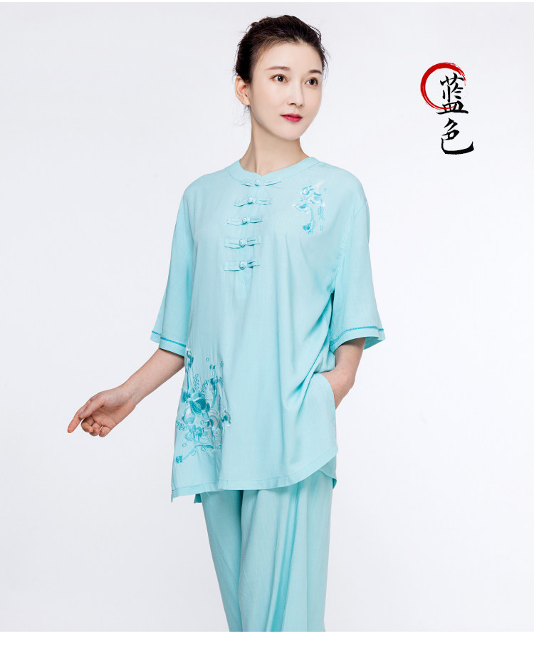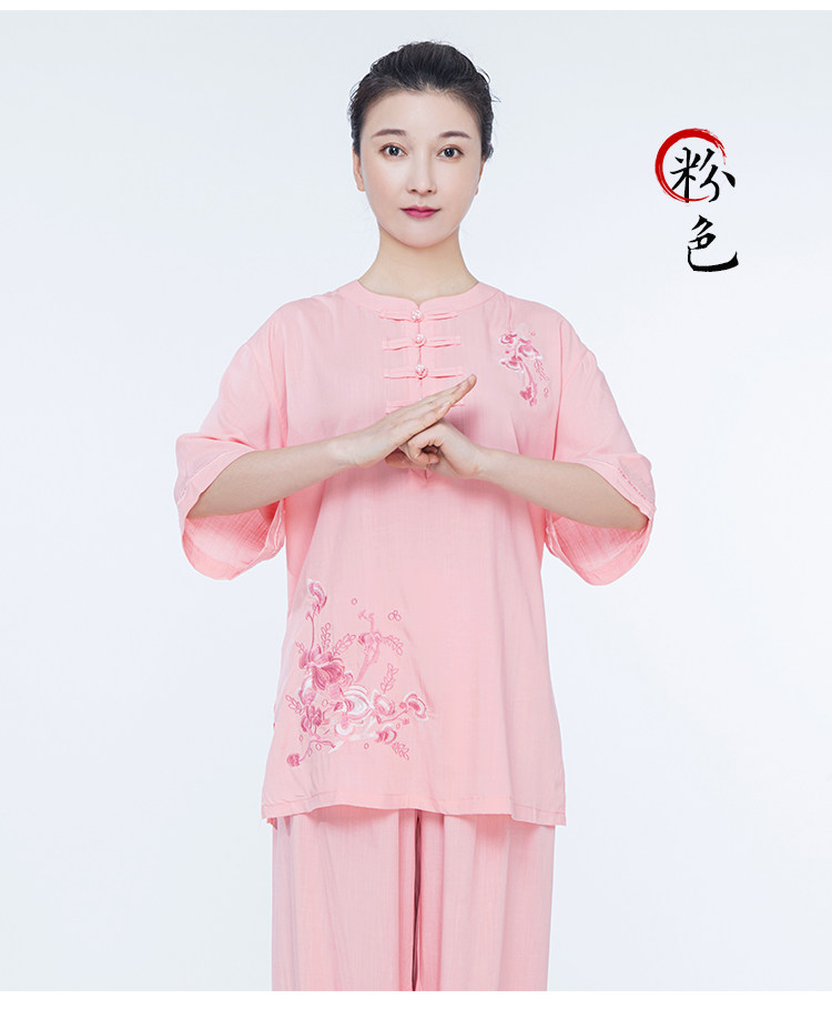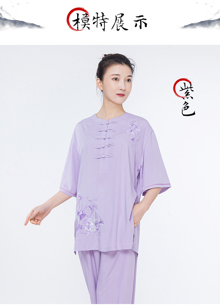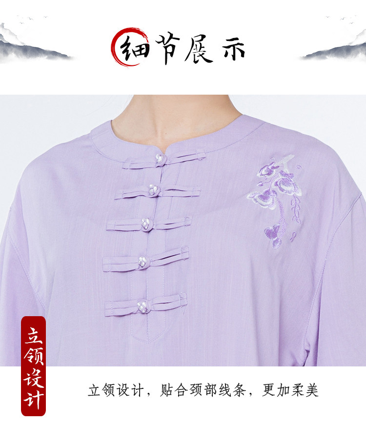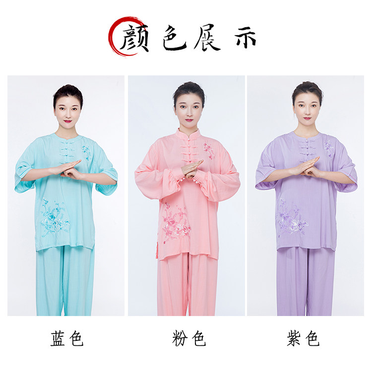 太极服装女新款洋气亚麻棉麻太极拳练功服女夏季太极服短袖