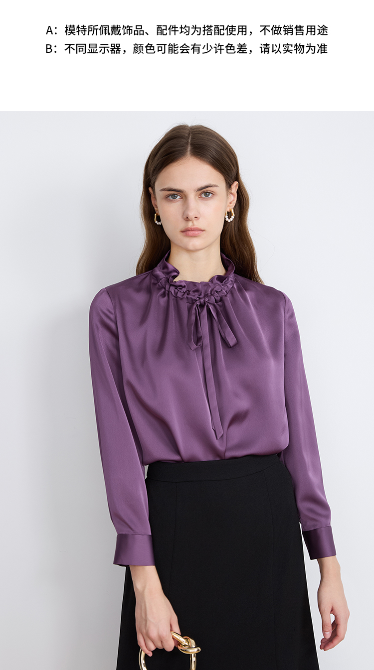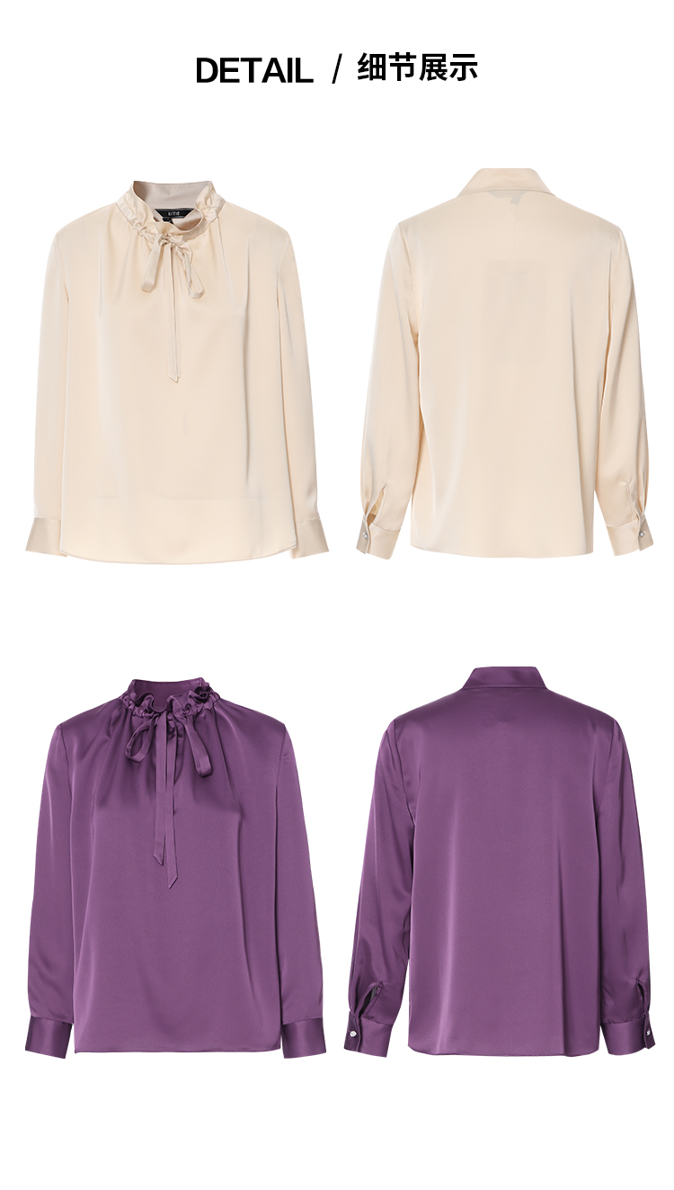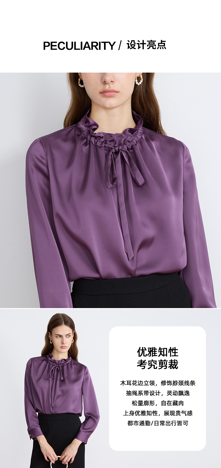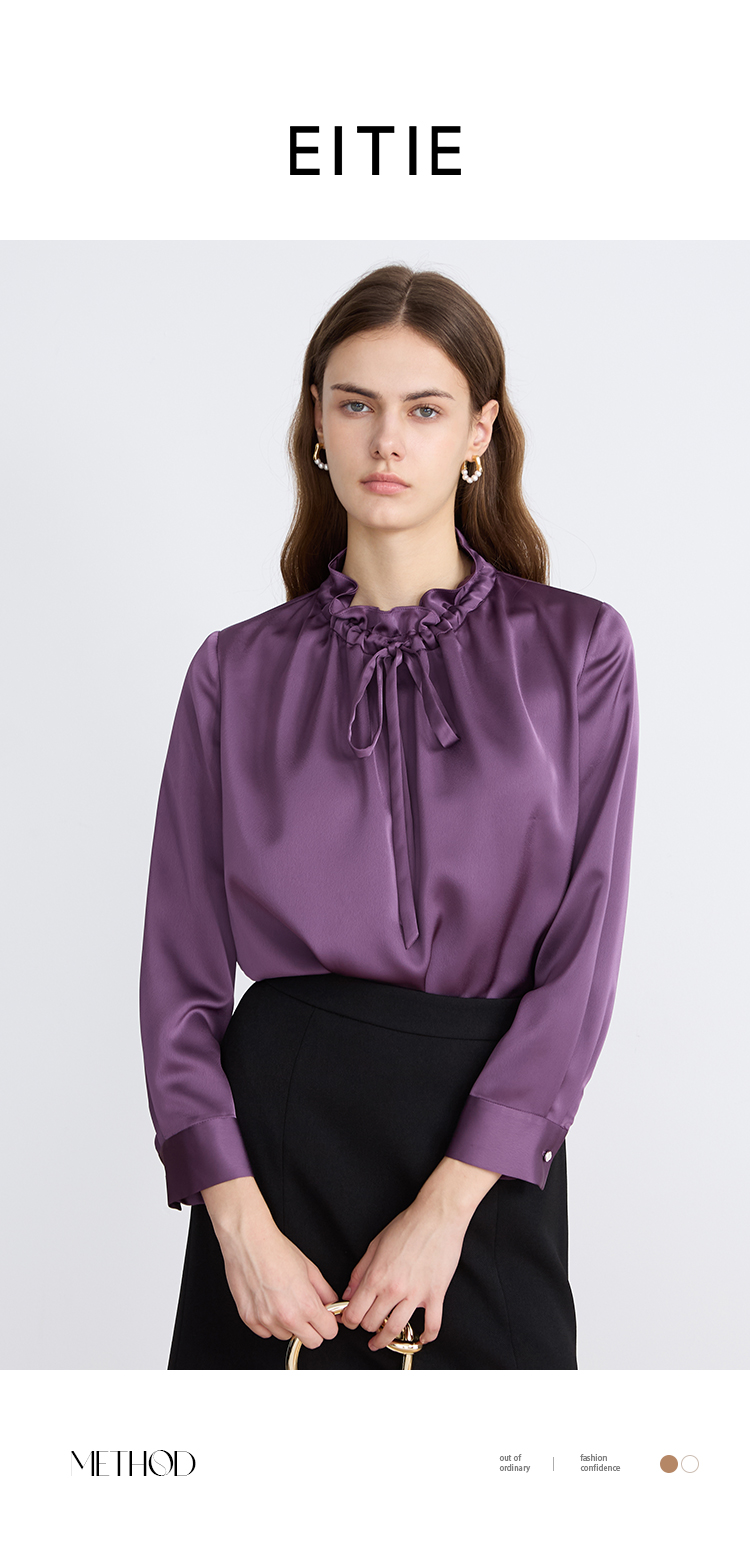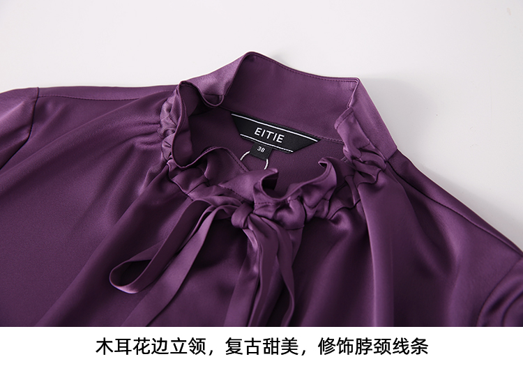 【紫色缎面衬衫】EITIE爱特爱气质抽绳木耳领直筒显瘦2025秋新款上衣C2513826