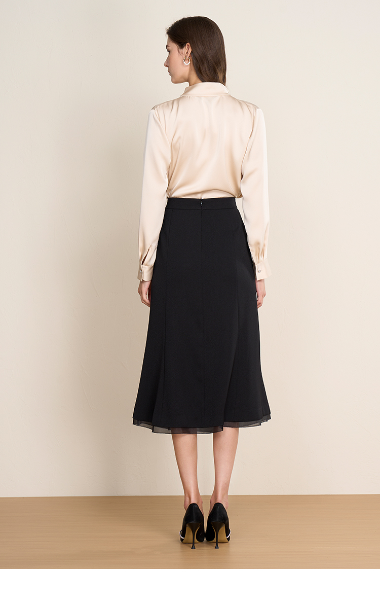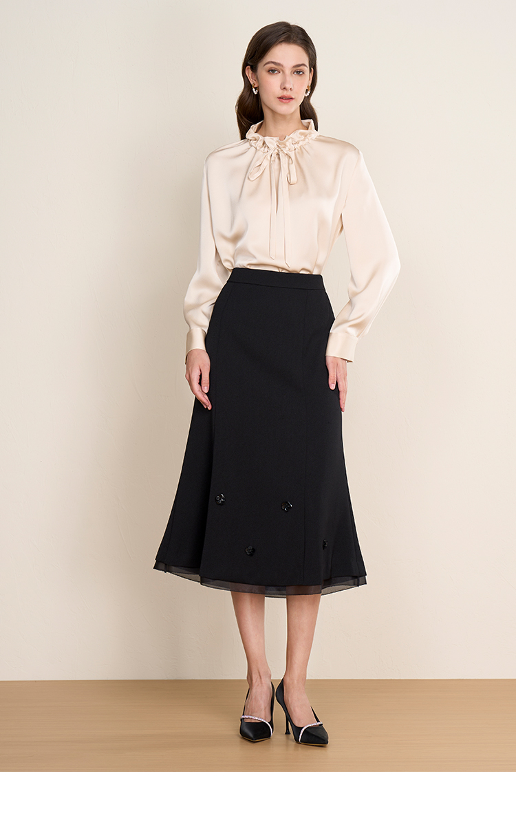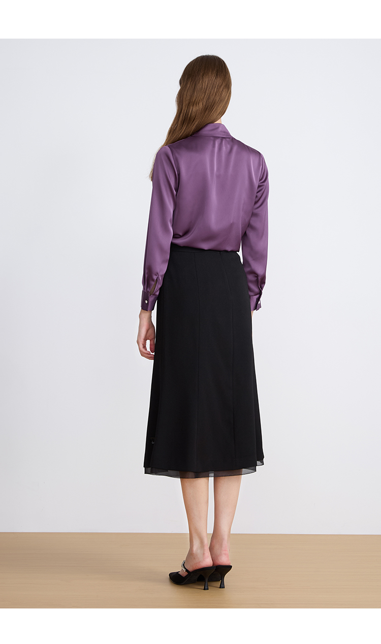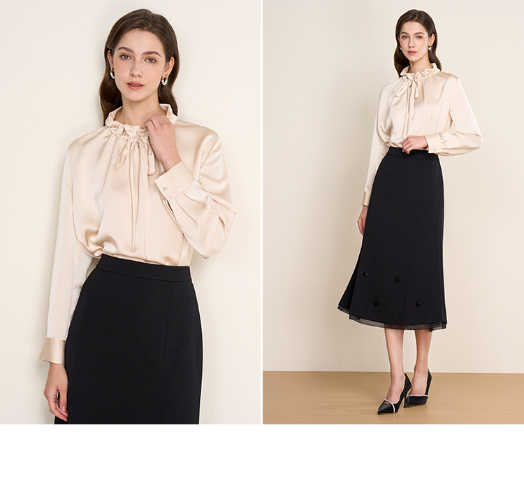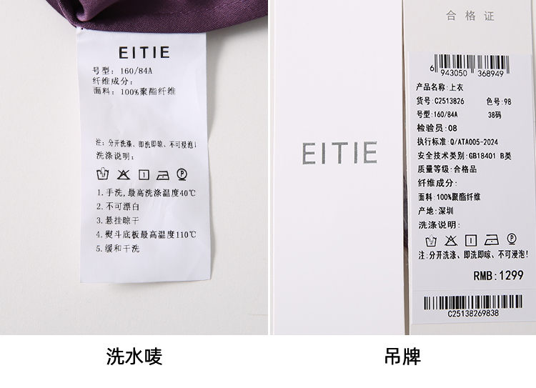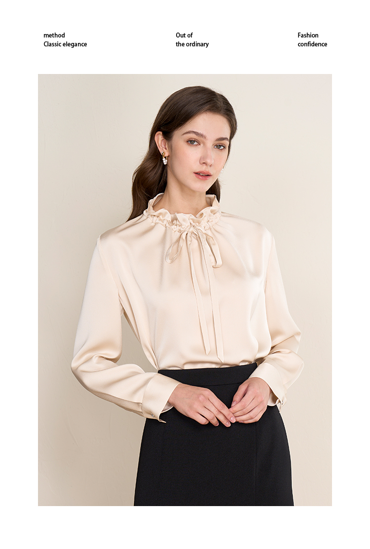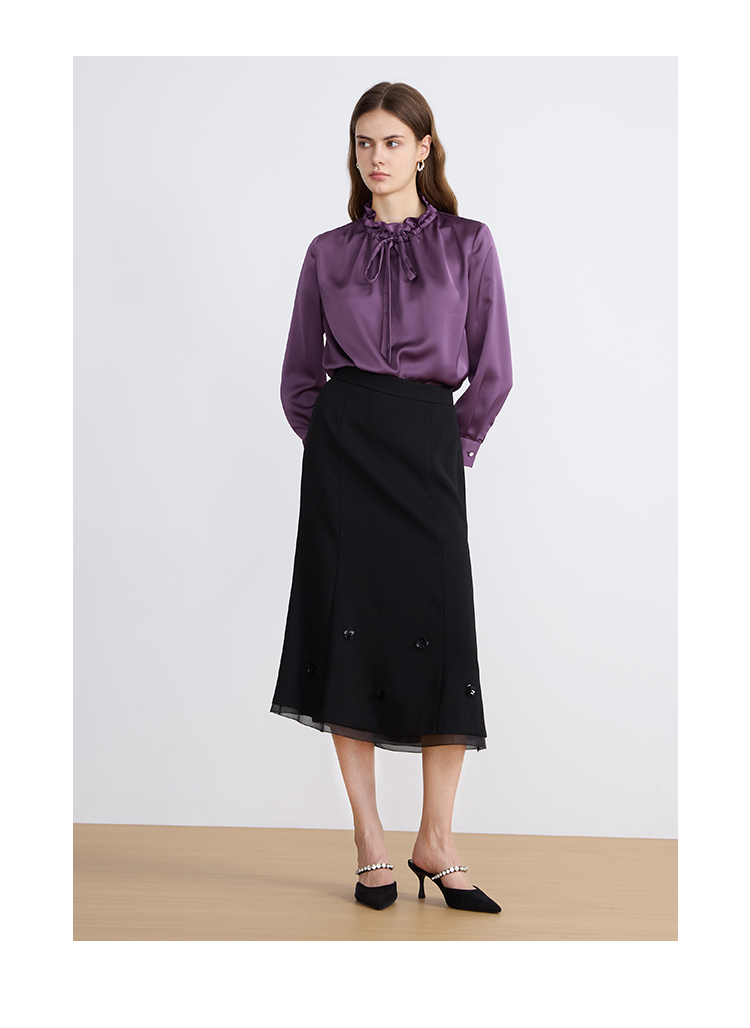 【紫色缎面衬衫】EITIE爱特爱气质抽绳木耳领直筒显瘦2025秋新款上衣C2513826