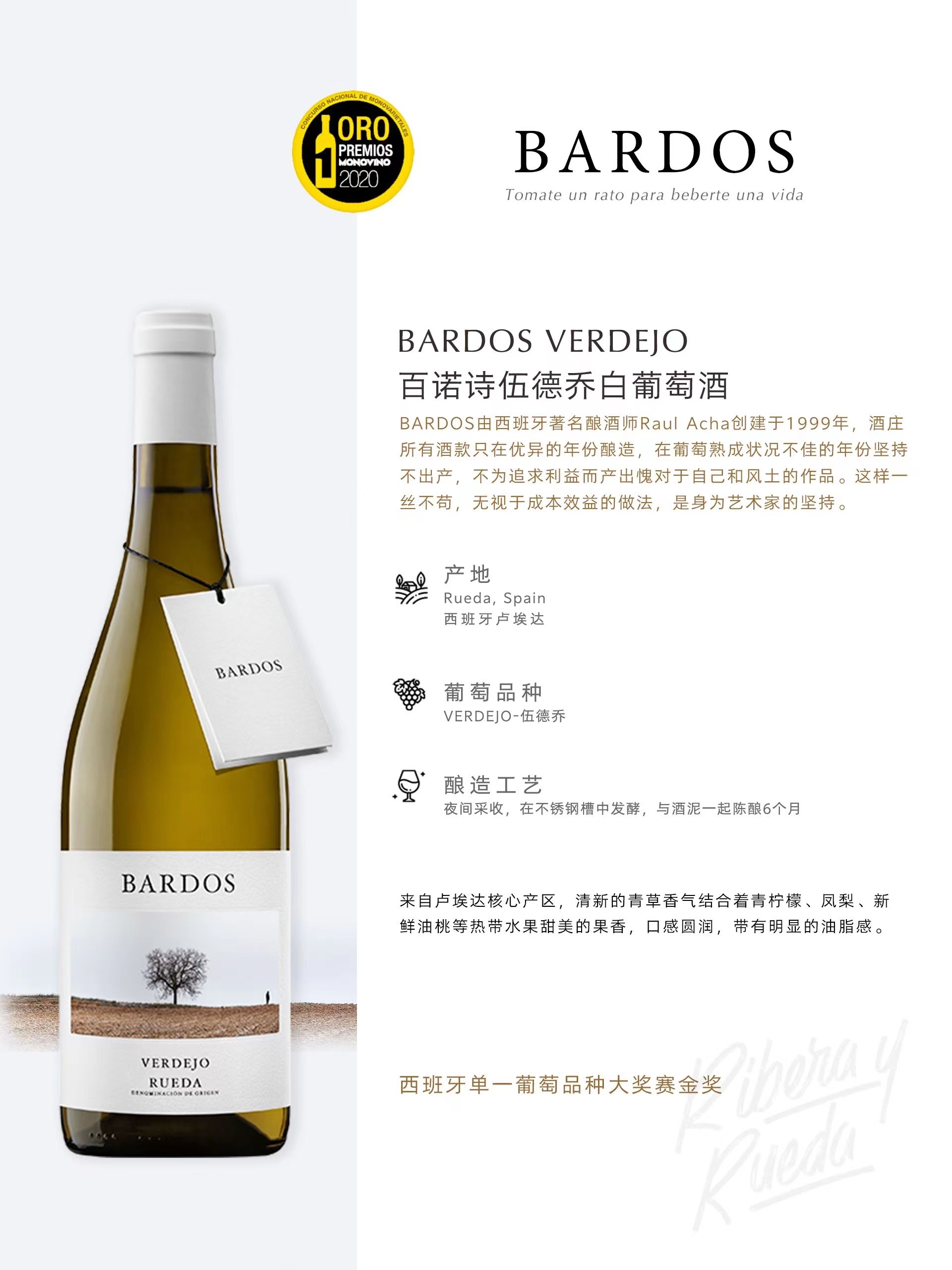 【先锋产区】西班牙 百诺诗伍德乔干白2018 杜罗河岸