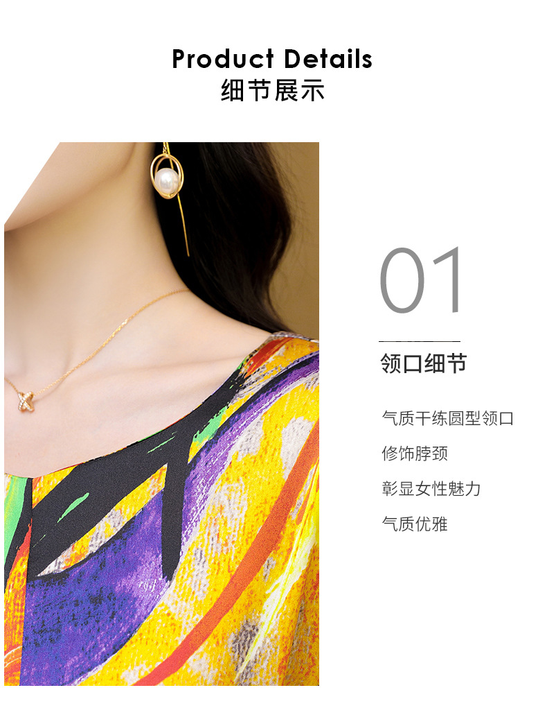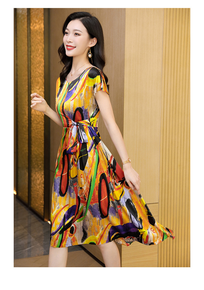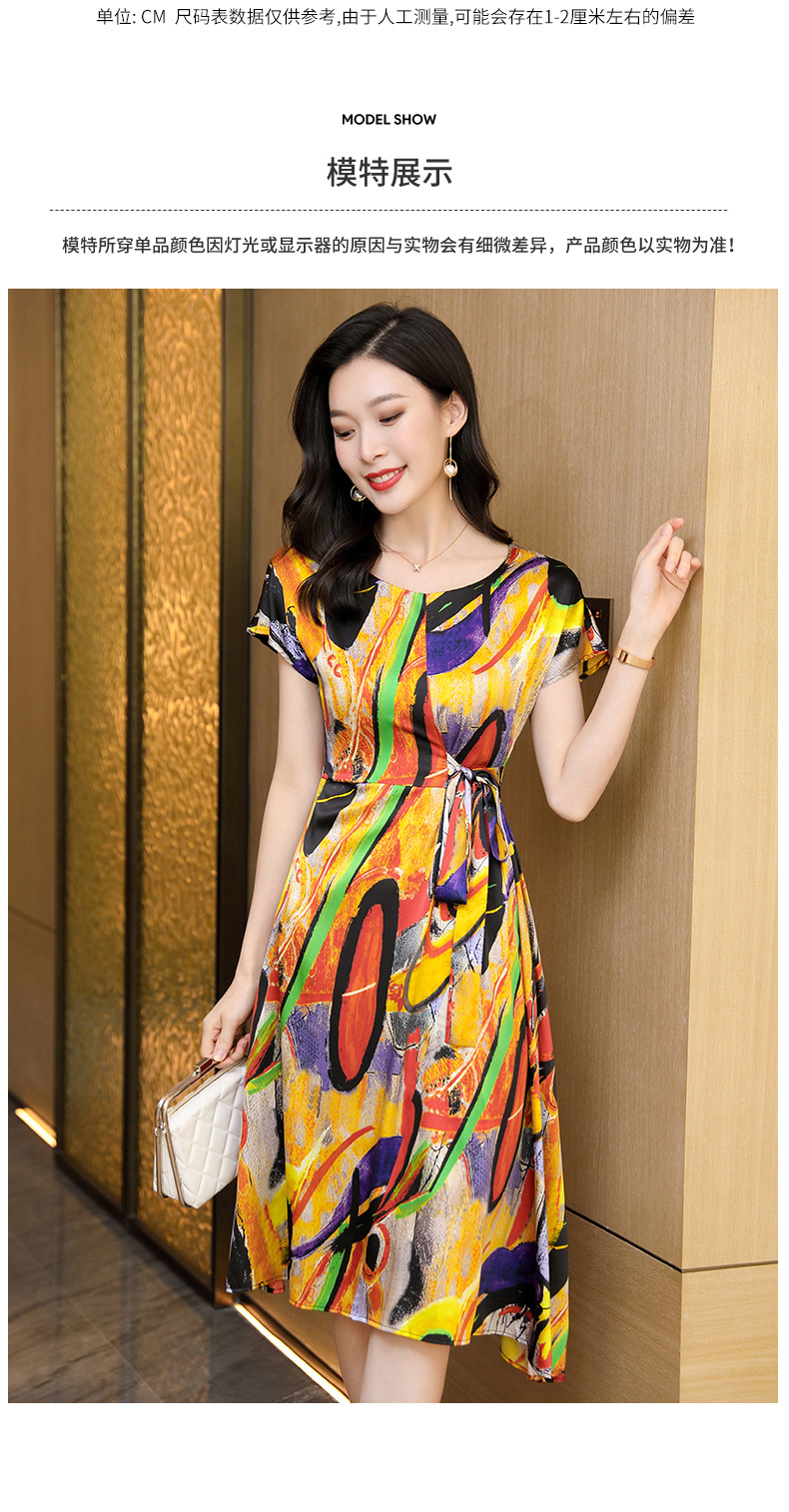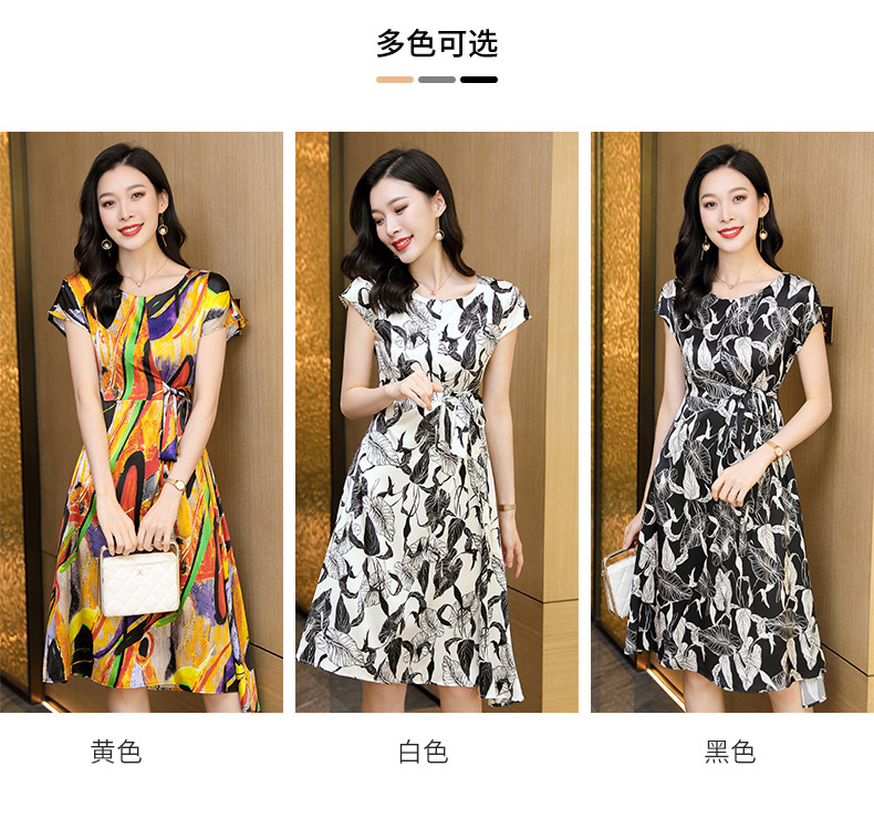 新款夏季,气质显瘦轻熟风时尚印花重磅真丝连衣裙KQN-97999
