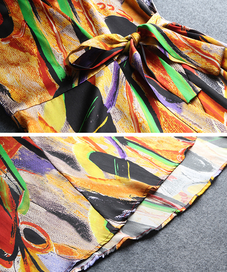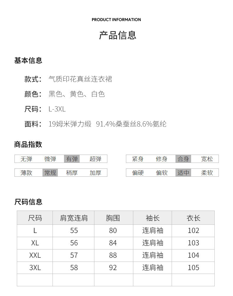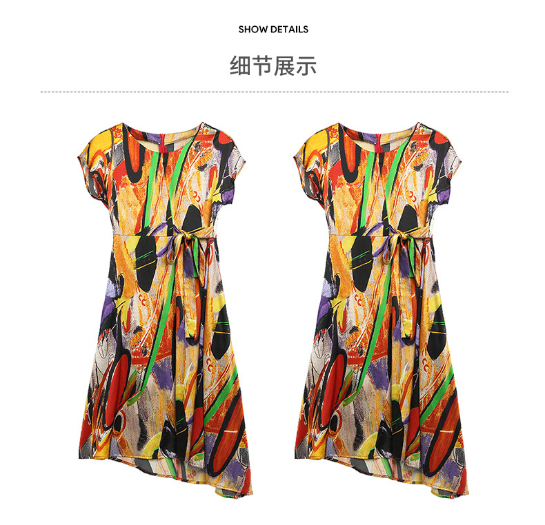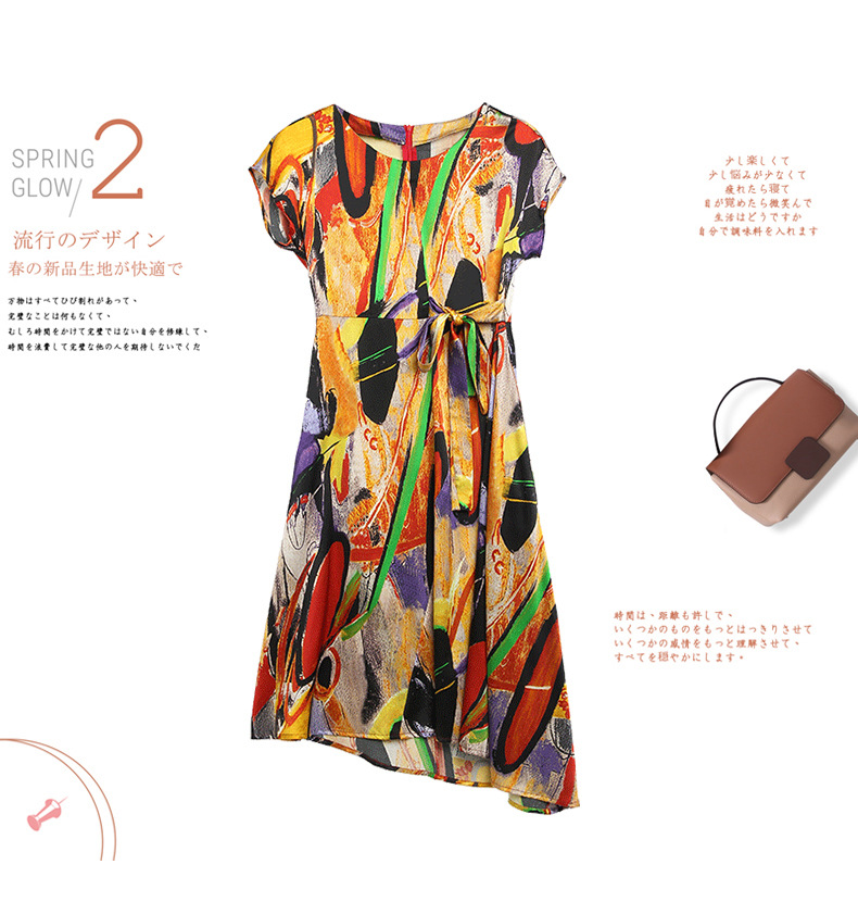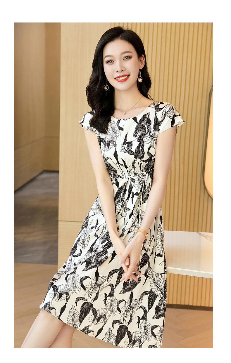 新款夏季,气质显瘦轻熟风时尚印花重磅真丝连衣裙KQN-97999
