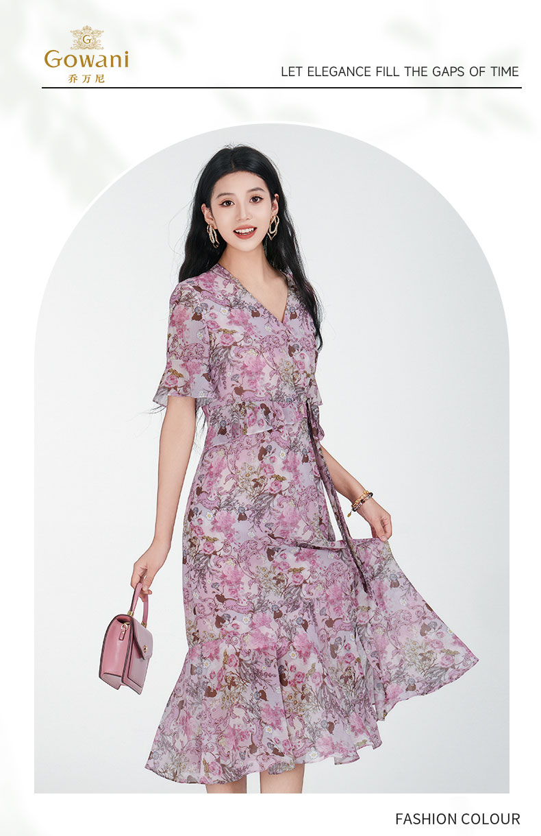 【罗马花园】乔万尼新品罗马花园印花茶歇中长款连衣裙ED2E525