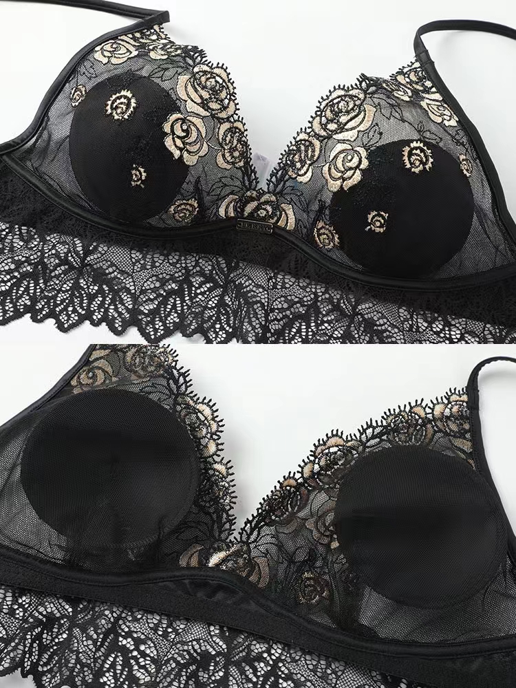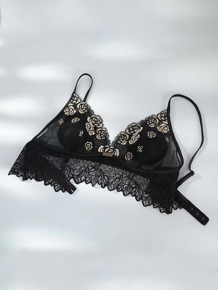 安莉芳黑标单层围三角杯蕾丝文胸女性感超薄小胸内衣EB00591