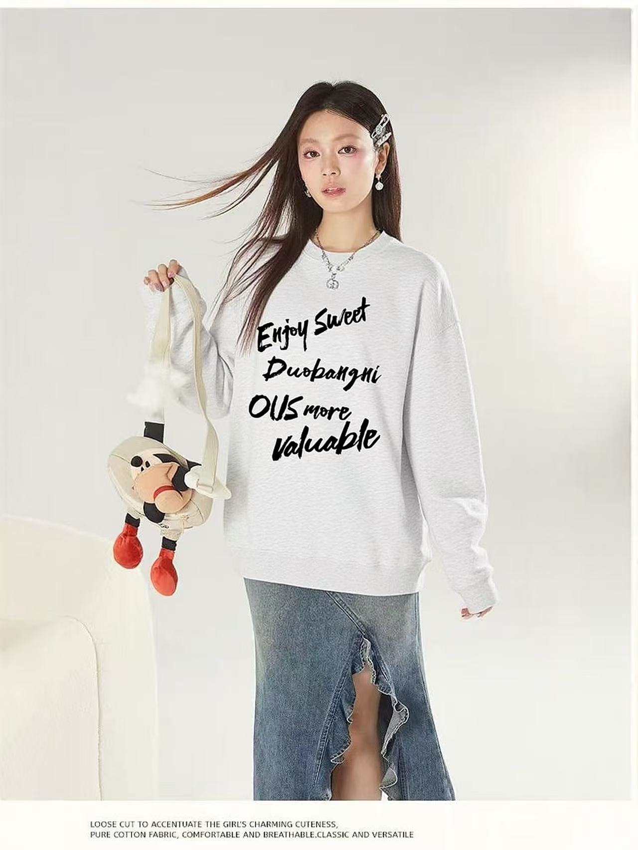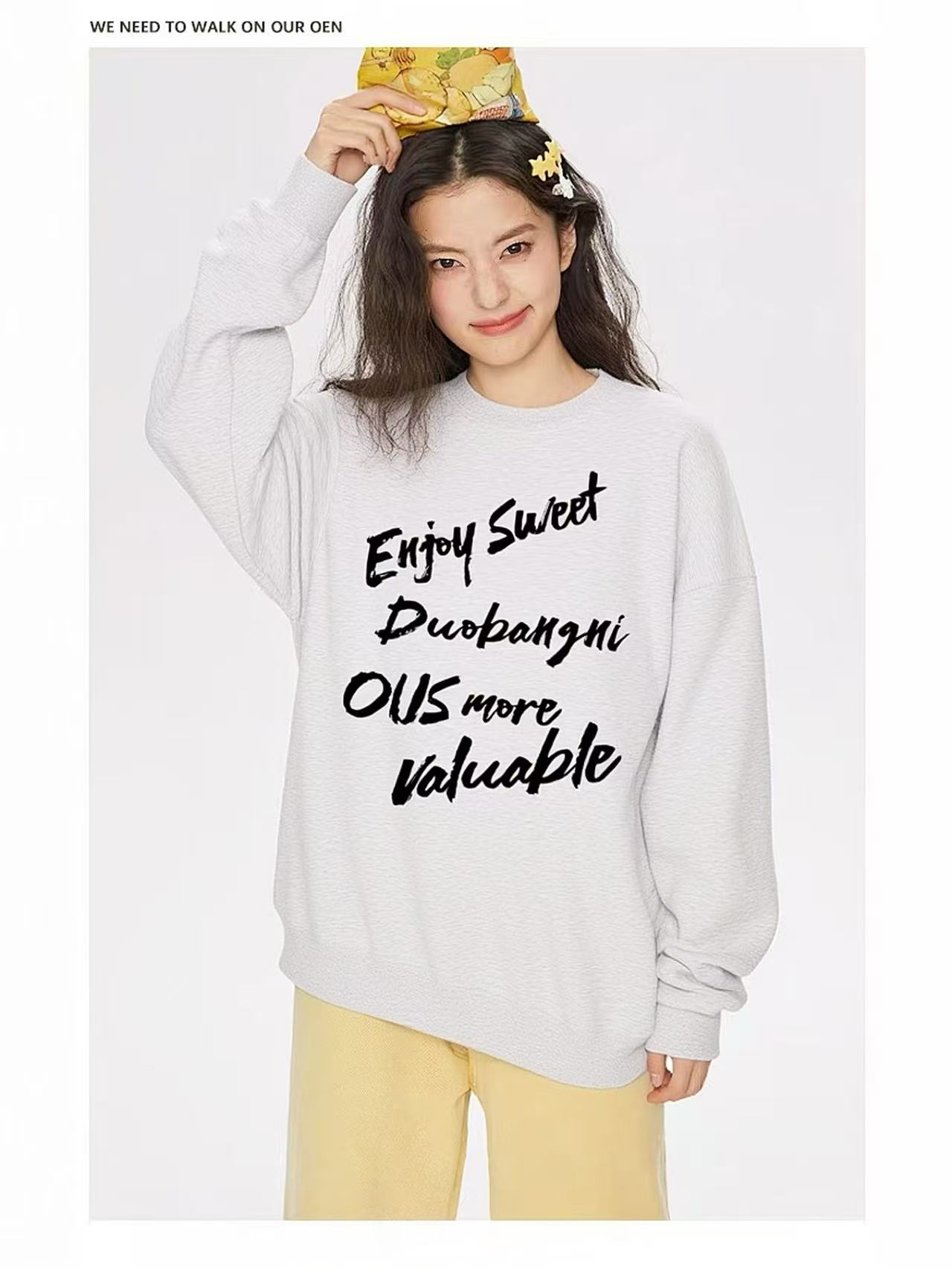 🔥🔥【潮牌卫衣】圆领牛奶绒~花灰字母宽松加绒卫衣-喜出