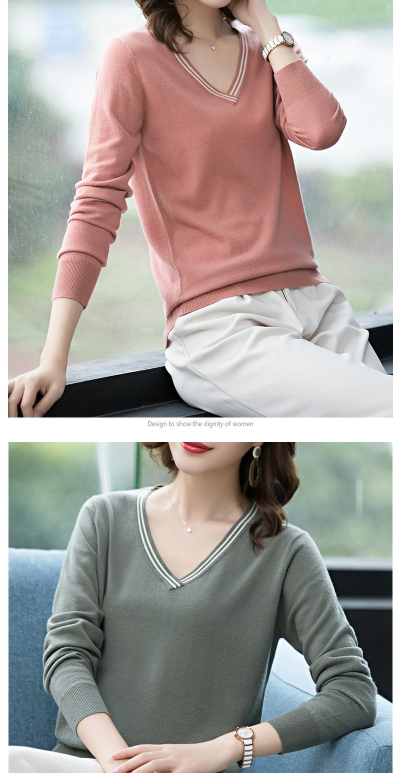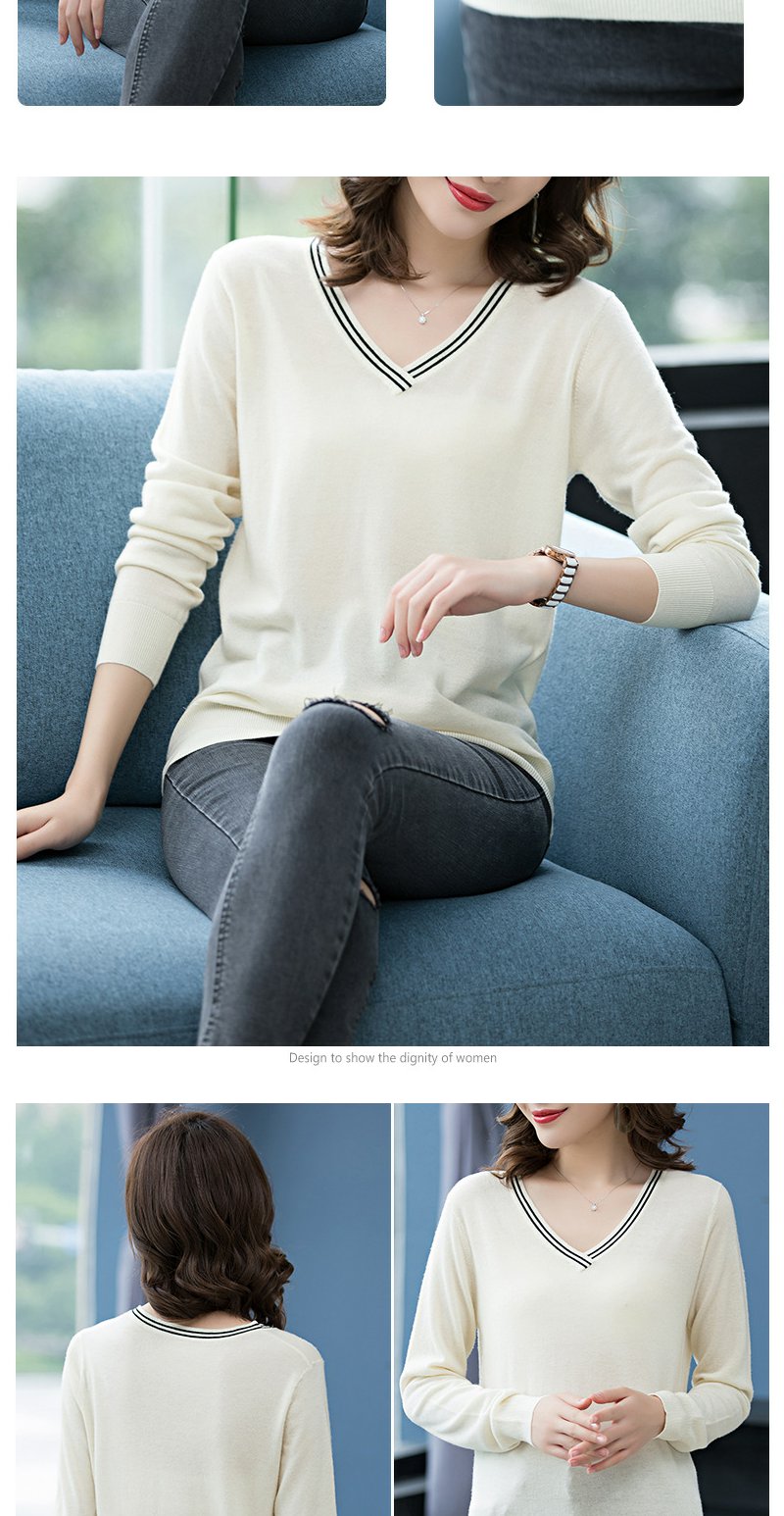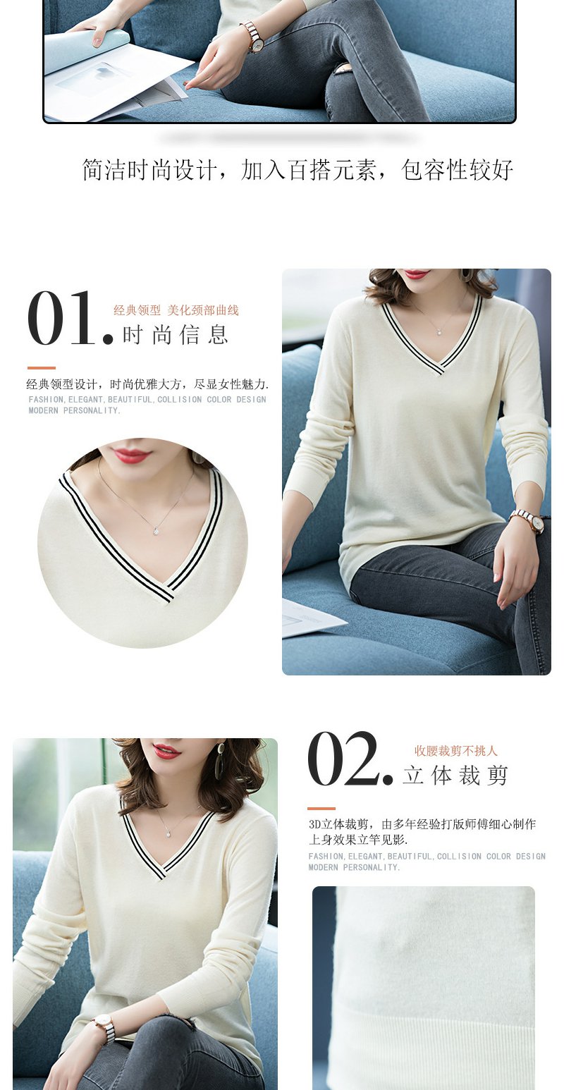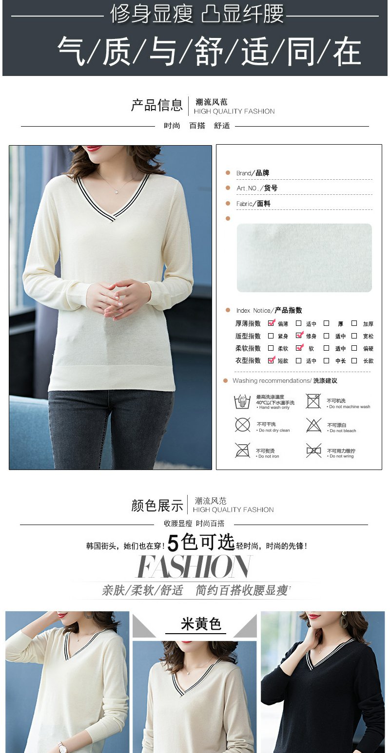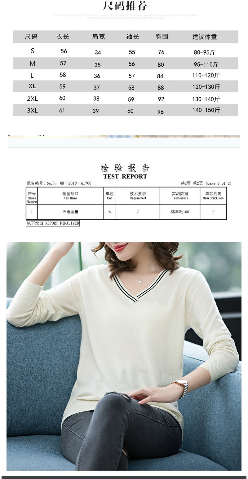 丁摩 100%羊毛V领宽松套头毛衣针织打底衫A819WX-149