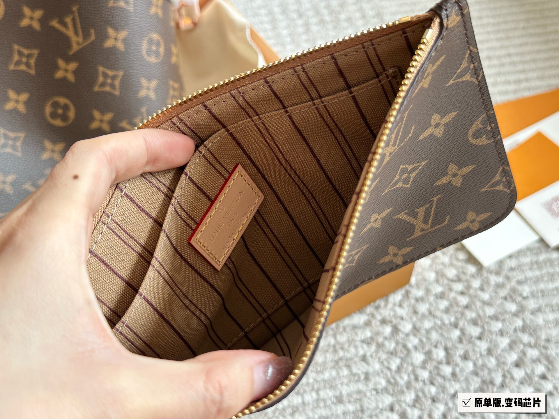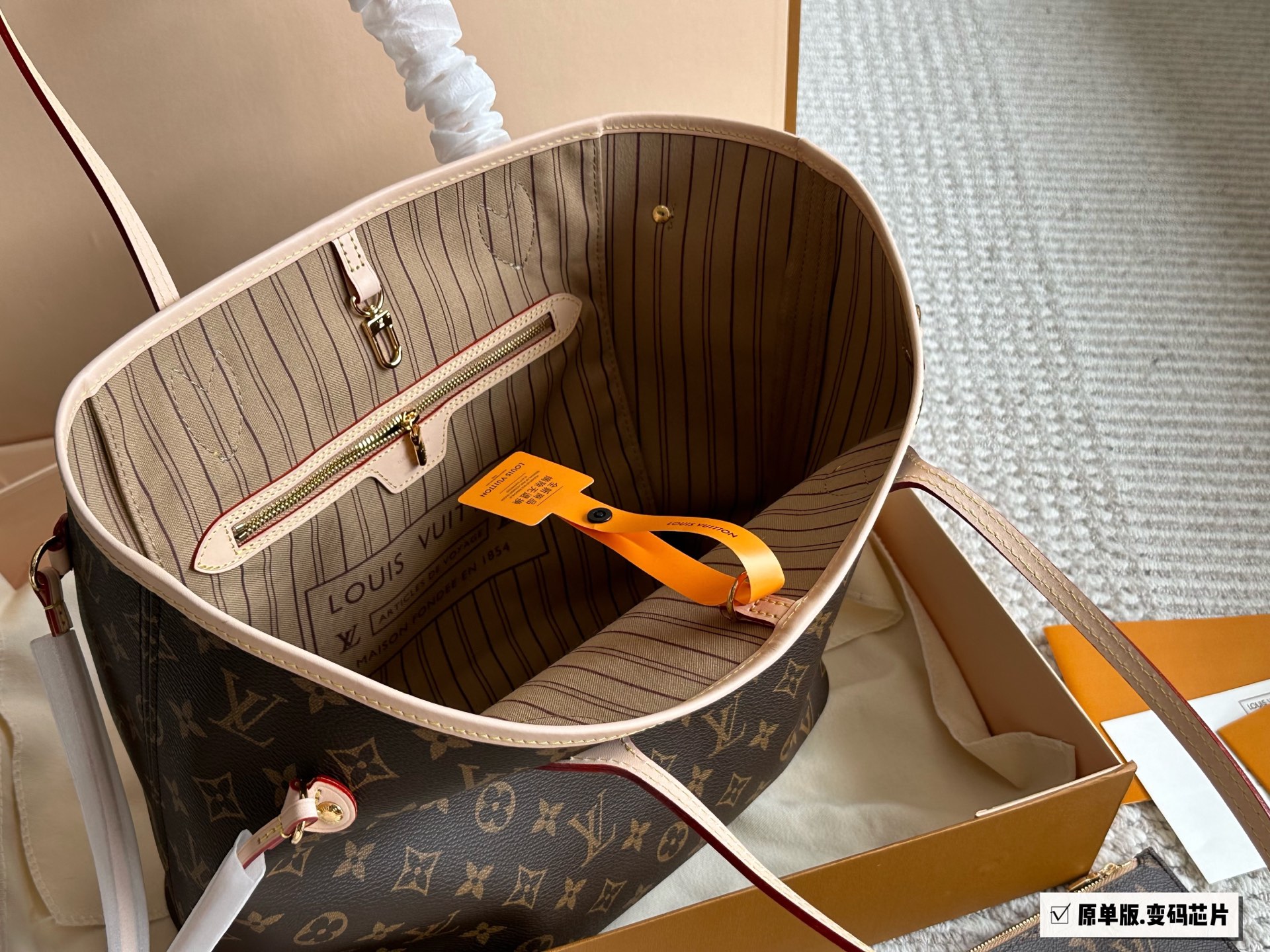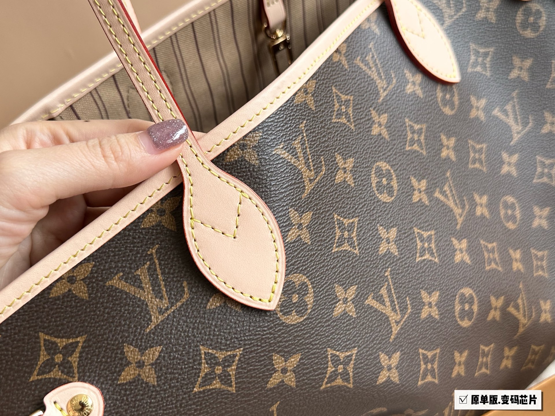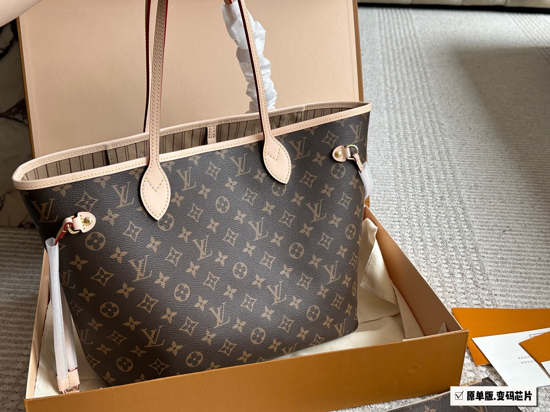 [Neverfull购物袋白格粉里] N41605LV 家的经典王牌,超大容量的设计作为妈咪包和OL通勤都是妥妥 滴,出镜率 最高的包款。条纹内衬完全不单调沉闷,设计感十足,可拆卸式子母拉链手包,既可单独作手拎包使用,亦可作为额外的内胆。白色棋盘格衬粉色內里清 丽中带点小女人的可爱