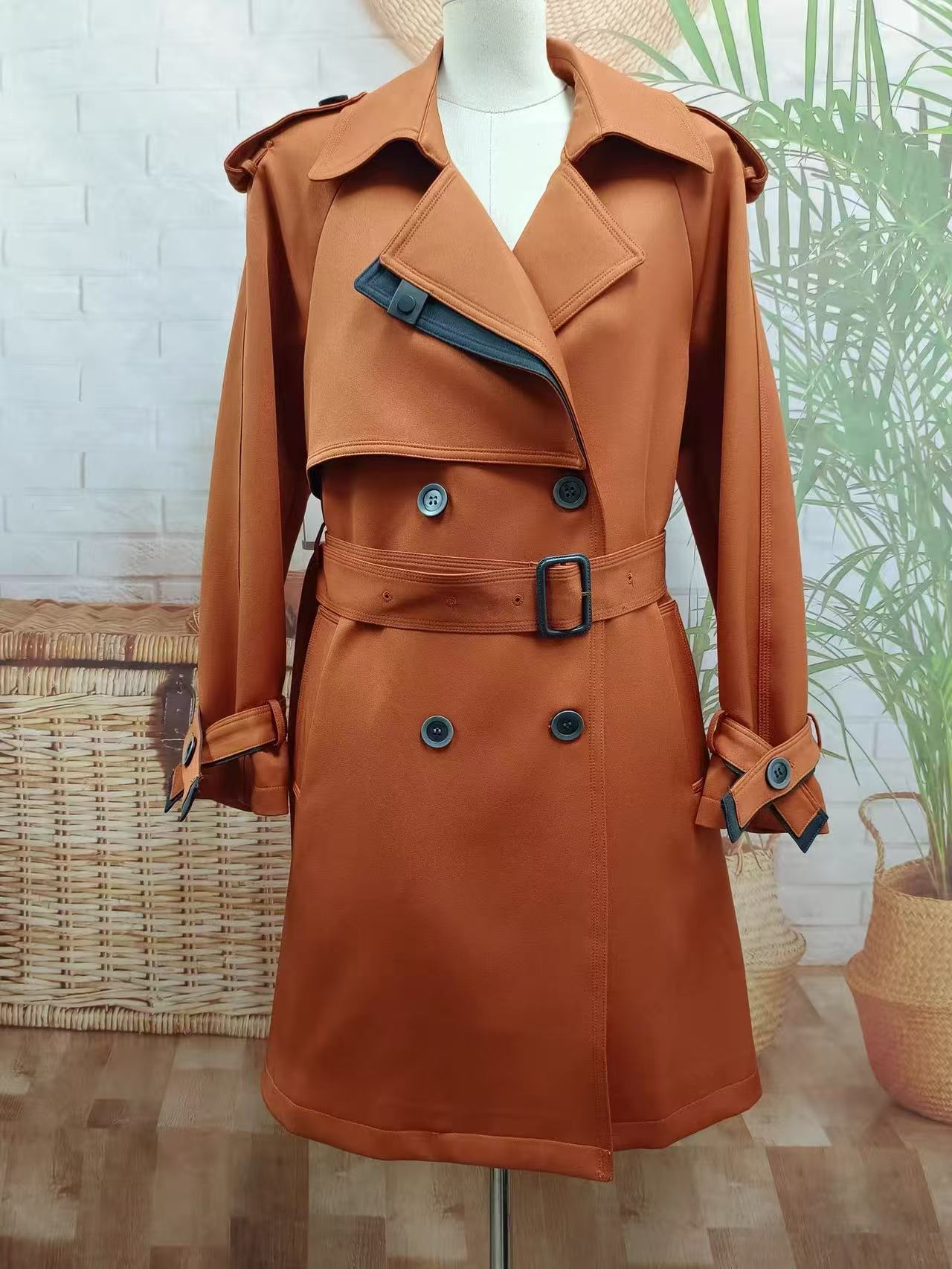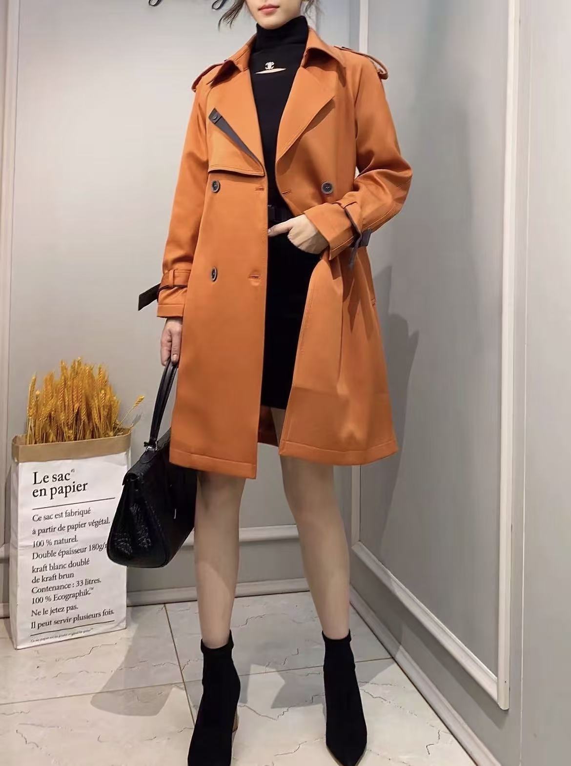 【自营】【外套系列】爱马仕橙中长质感风衣外套-喜出