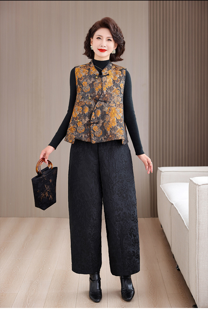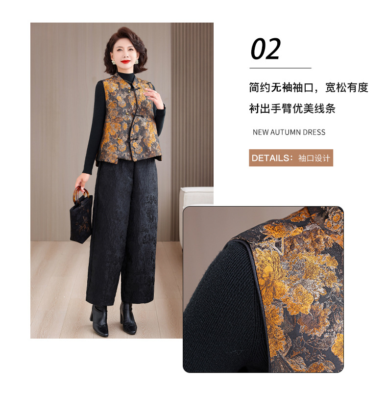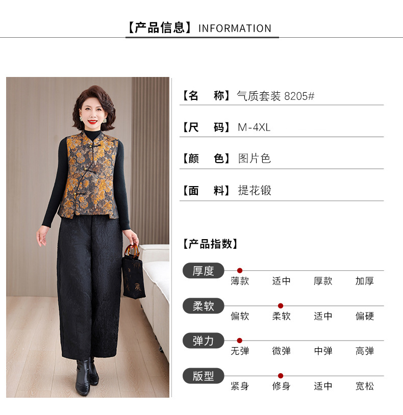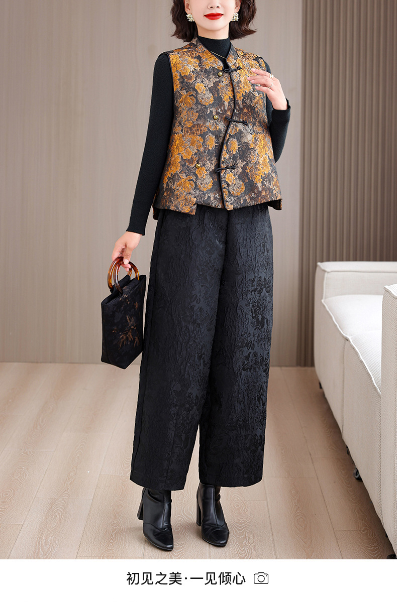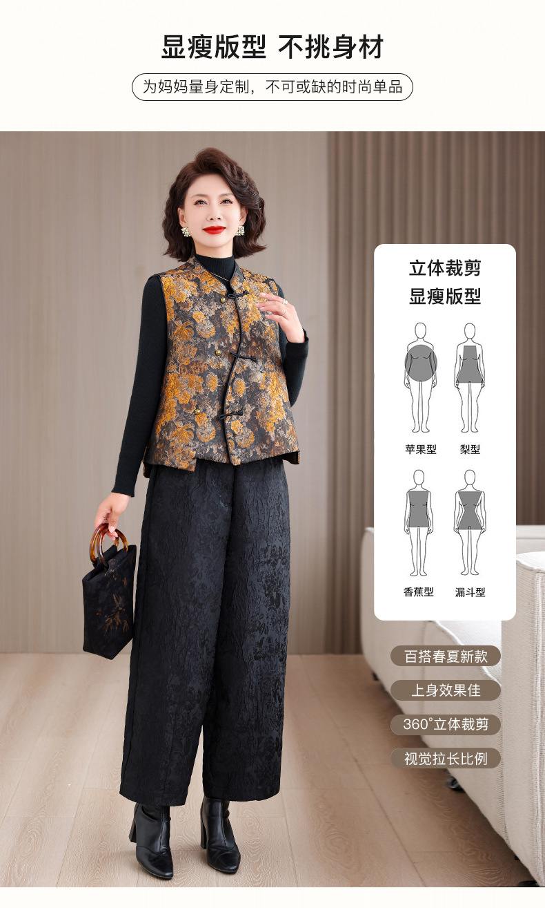 KQL 422H8205新中式国风马甲提花洋气大码马夹阔腿裤套装