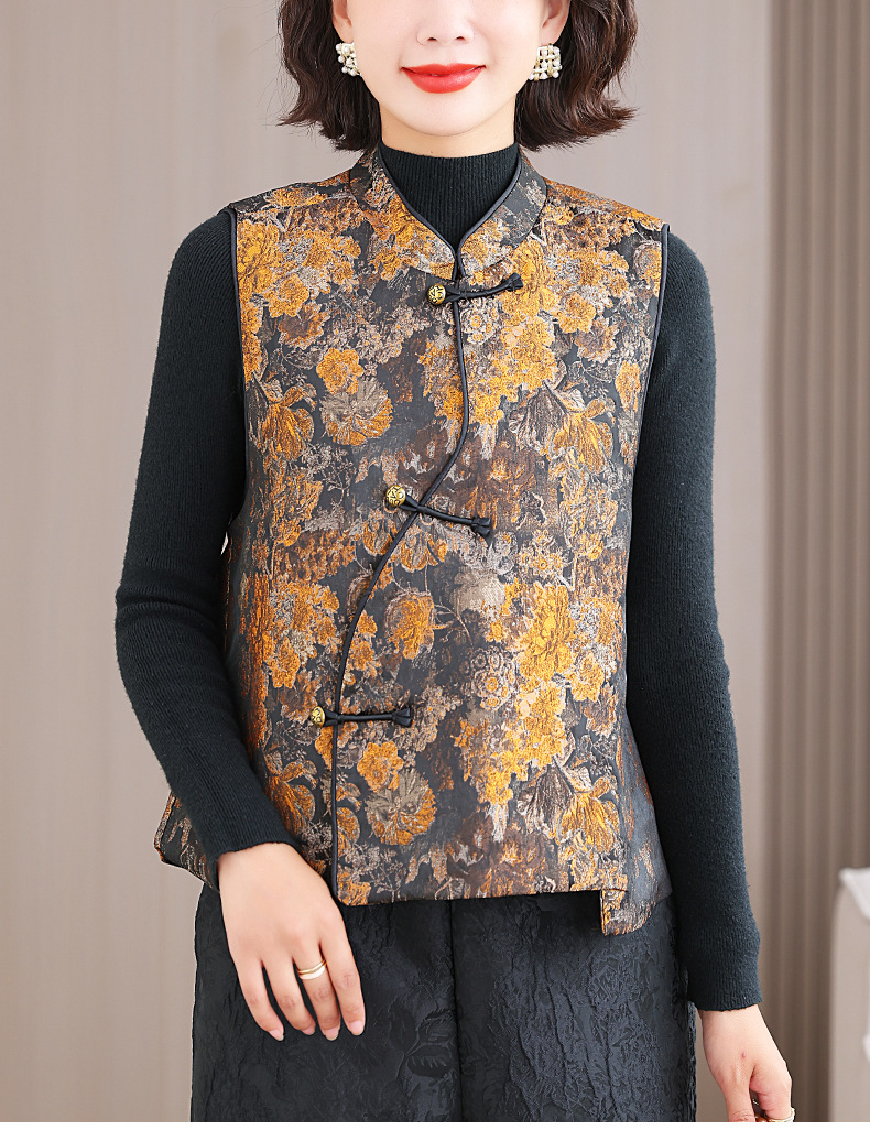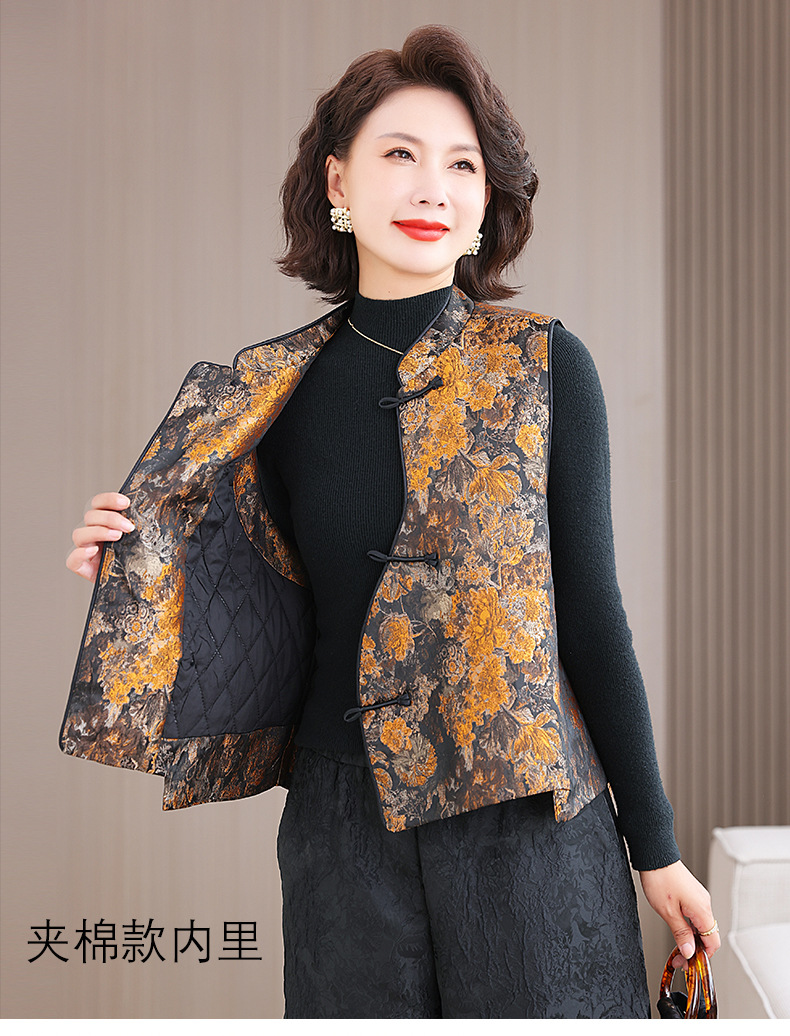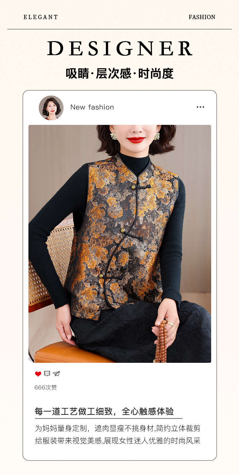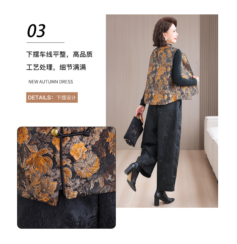 KQL 422H8205新中式国风马甲提花洋气大码马夹阔腿裤套装