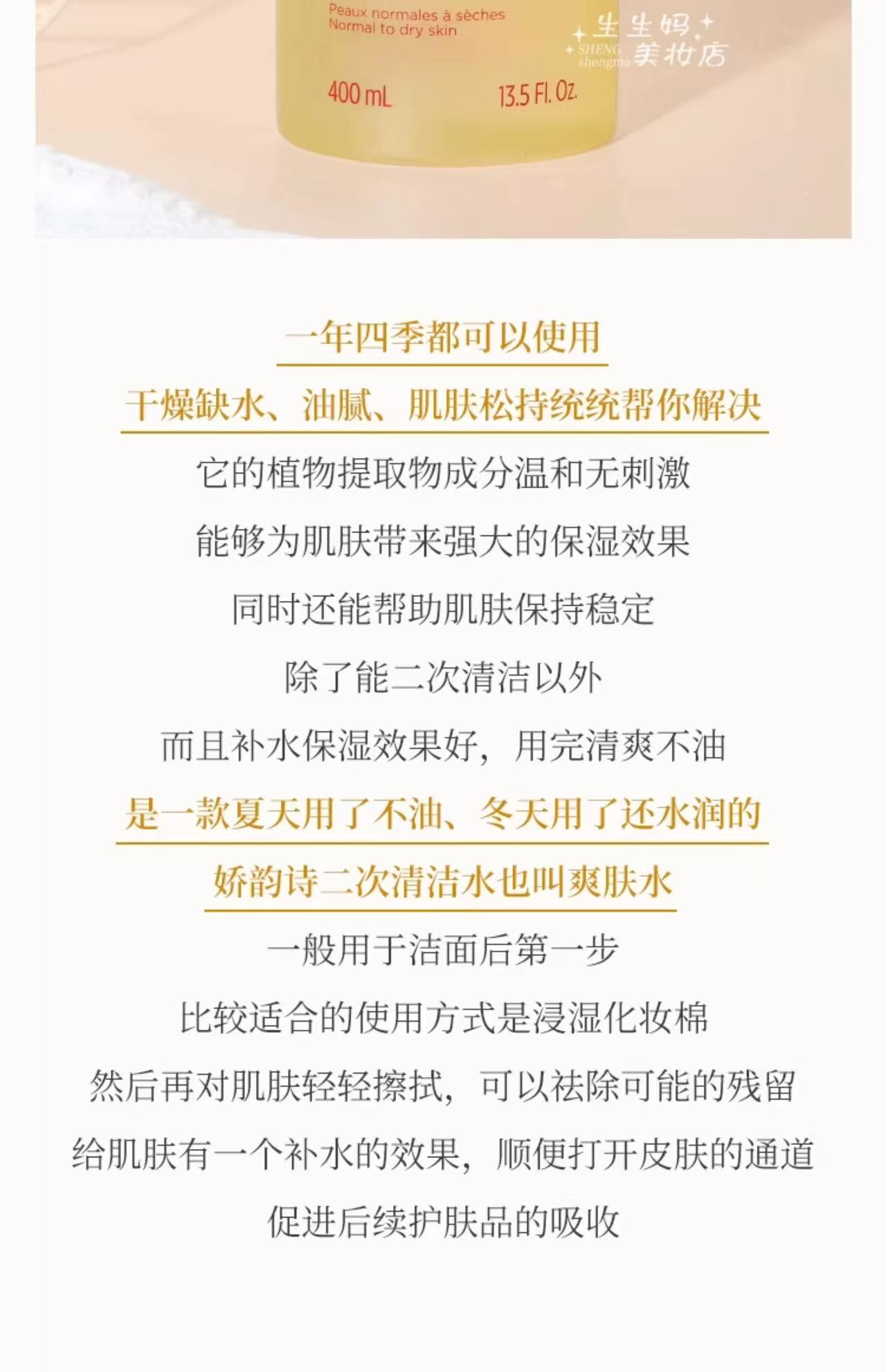 【门店直发】娇韵诗舒缓保湿爽肤水黄水400ml
