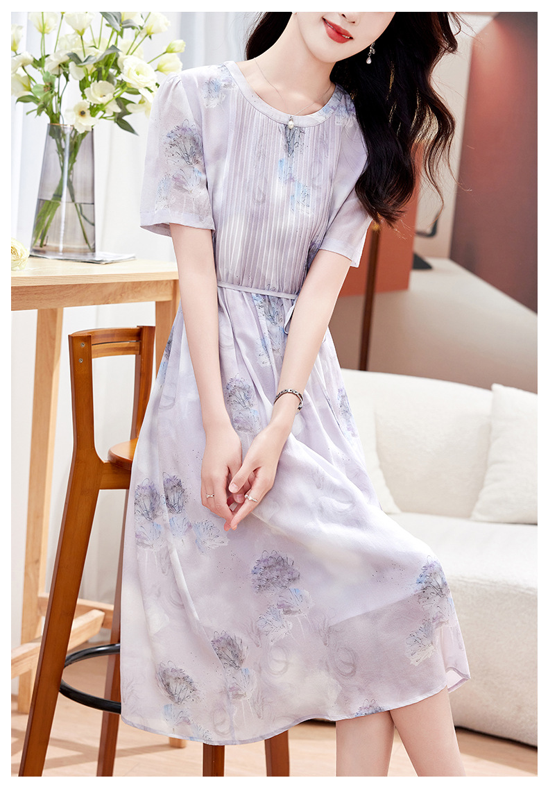 KQ-P09103 03双绉真丝连衣裙女2025新款夏季法式收腰显瘦气质短袖桑蚕丝裙子