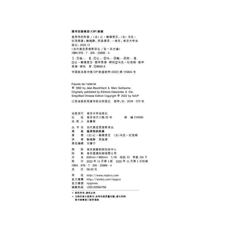 本书始于格奥尔格·西美尔的一篇短文《闲话局外人》。“局外人”这一因阿尔贝·加缪而广泛传播的概念,在鲍德里亚和纪尧姆的讨论中变幻为“他异性”,即不属于共同体那一部分的社会功能。他异性可以存在于青少年的特立独行中,可以存在于心理医师与患者的匿名对话中,也可以存在于本国人和异乡人之间的交流中。对于这个问题的思考,将引领我们思考我们自身的身份、我们与他人的关系、我们与社会的关系、他人与社会的关系,等等。
