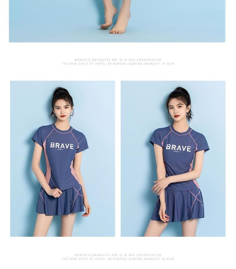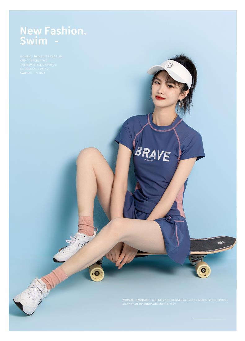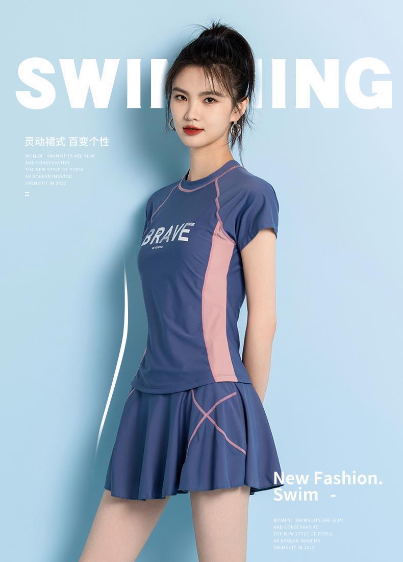 【FASHION,灵动活力少女~】分体泳衣女 爆款运动显瘦遮肚 时尚收腰显瘦裙式泳装 平角游泳衣套装-QQ