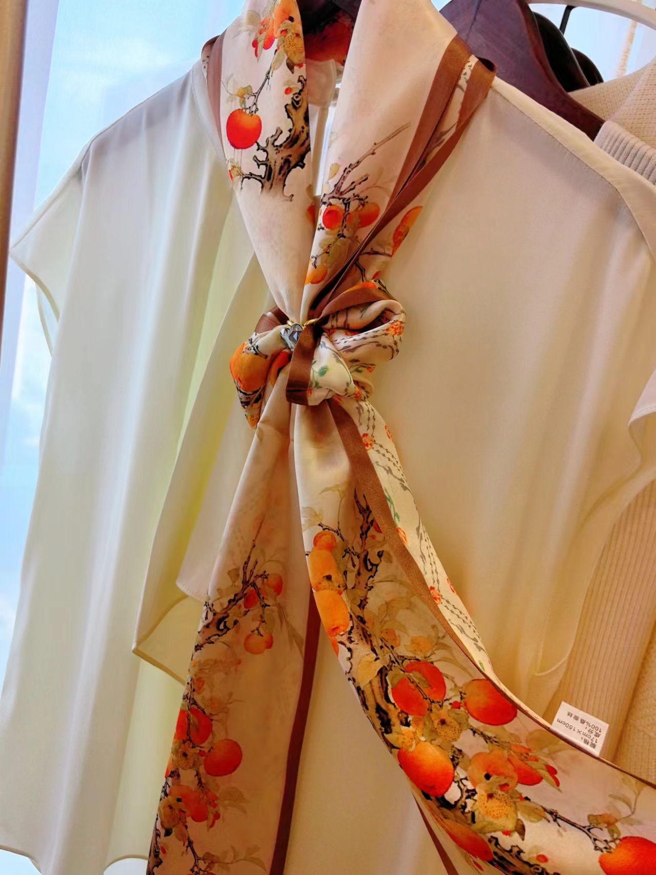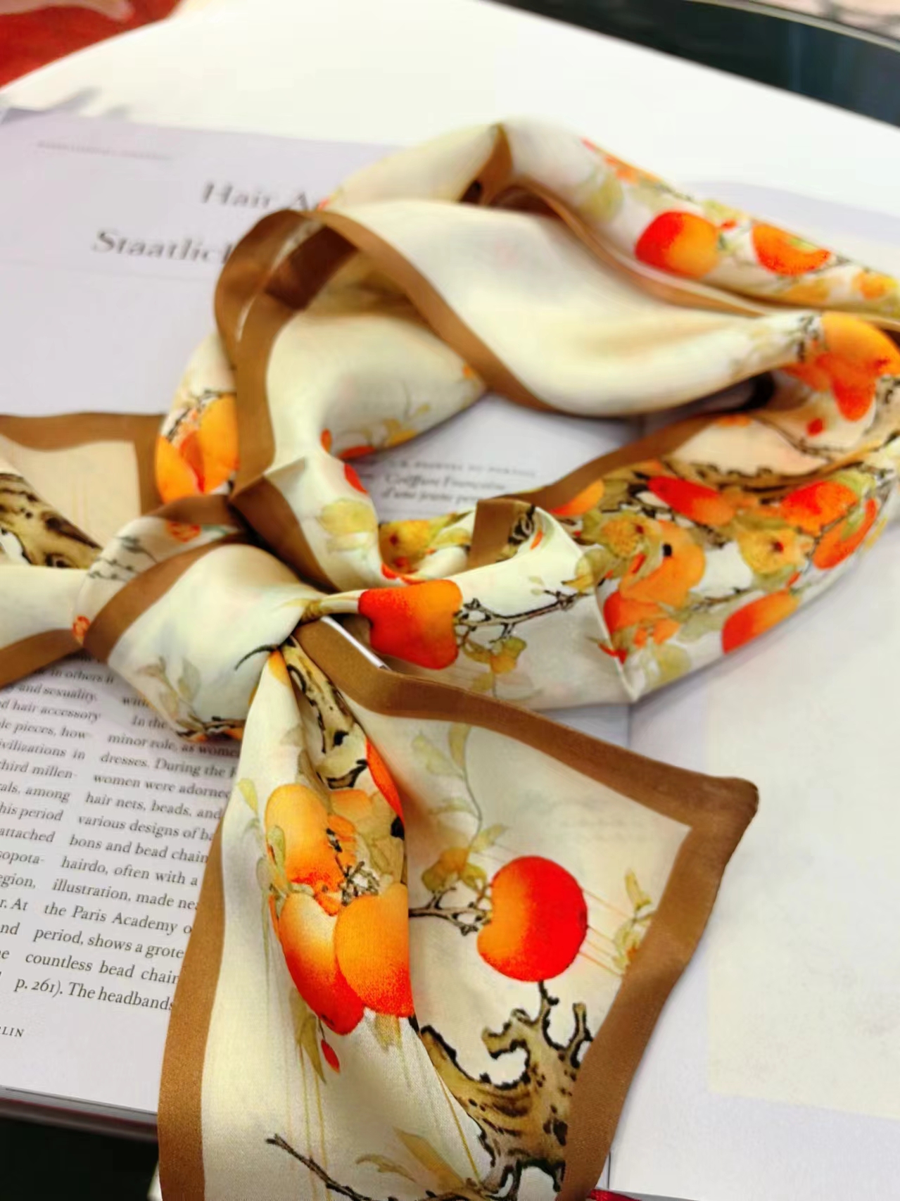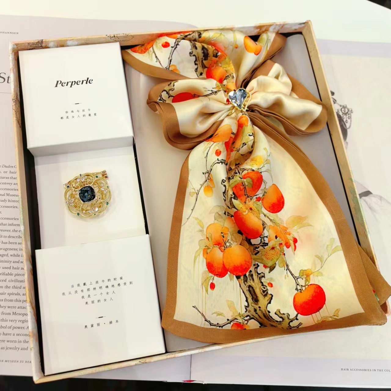 【甄珠贝·国风系列】柿柿如意飘带和施华洛丝巾扣三件套礼盒套装【适合送外宾】