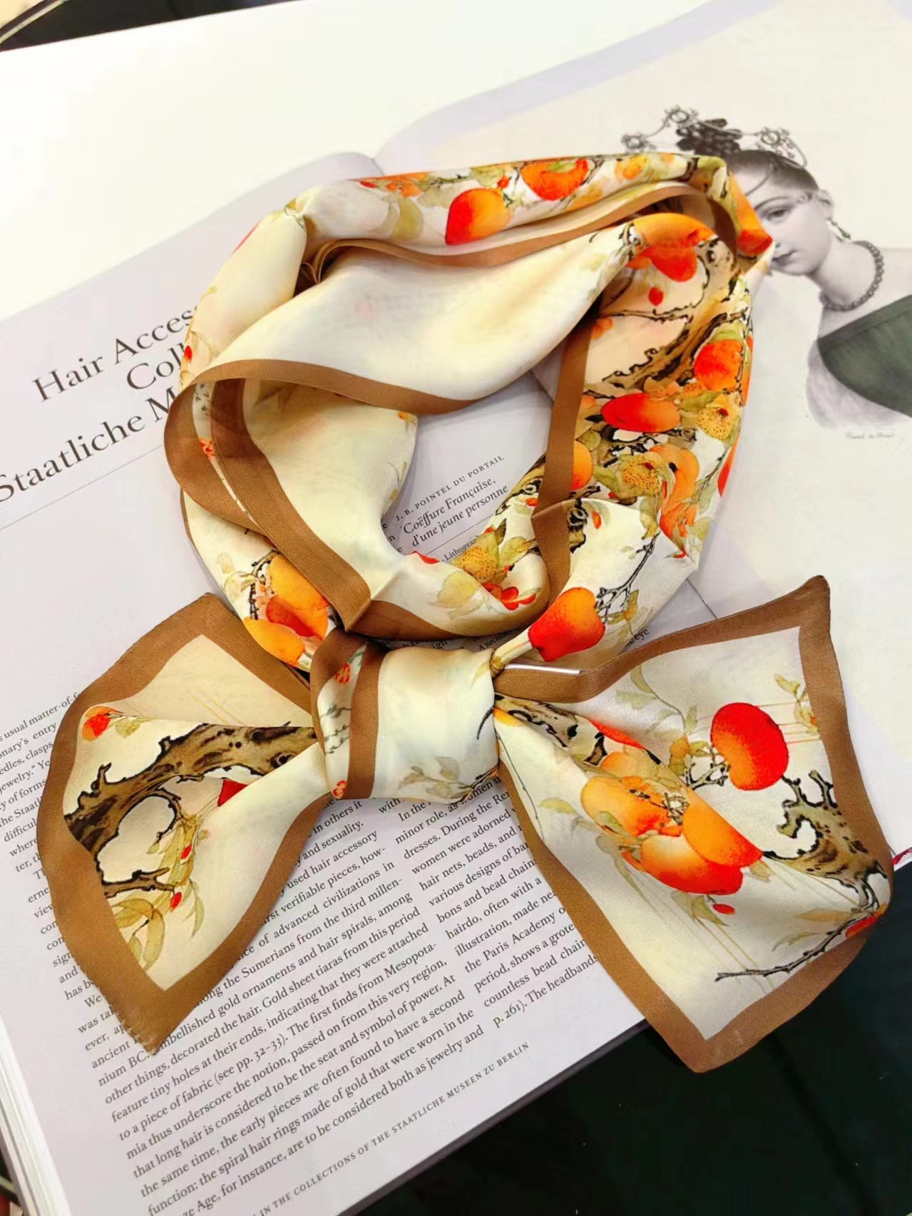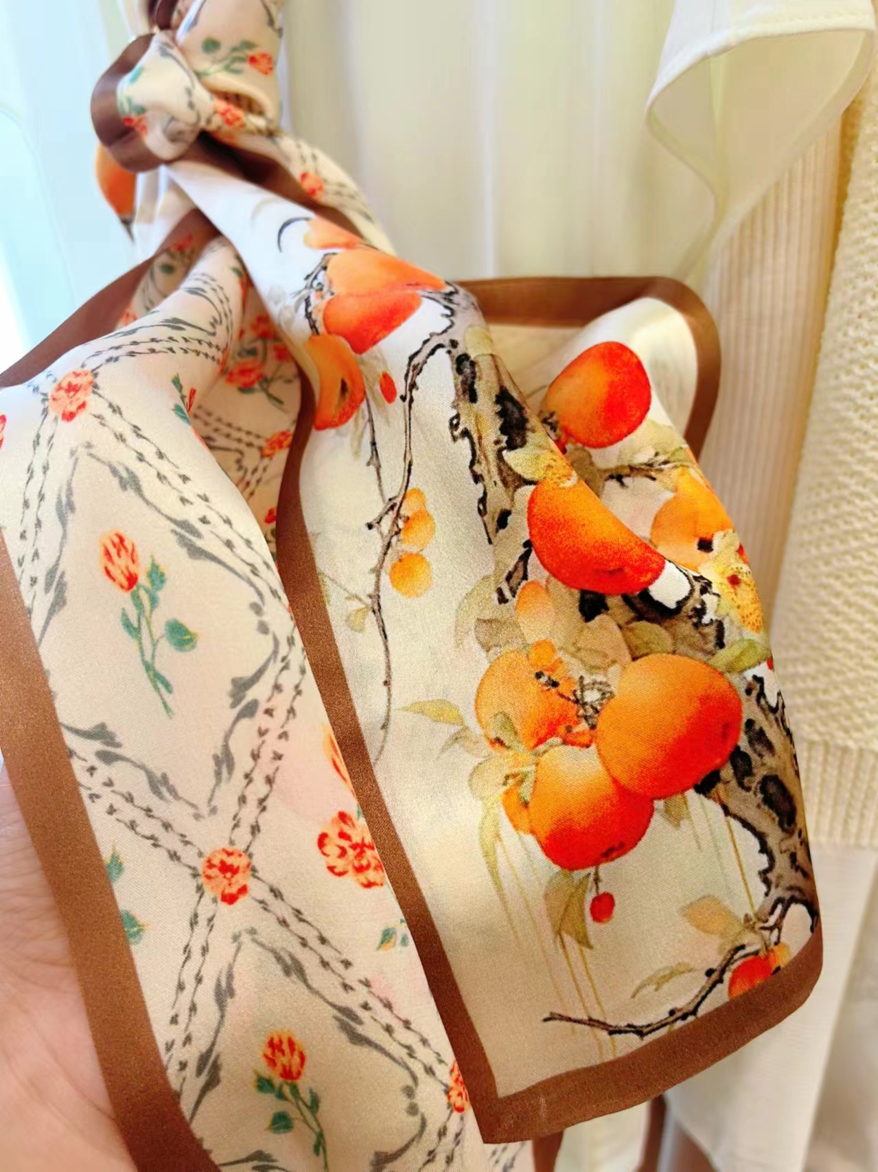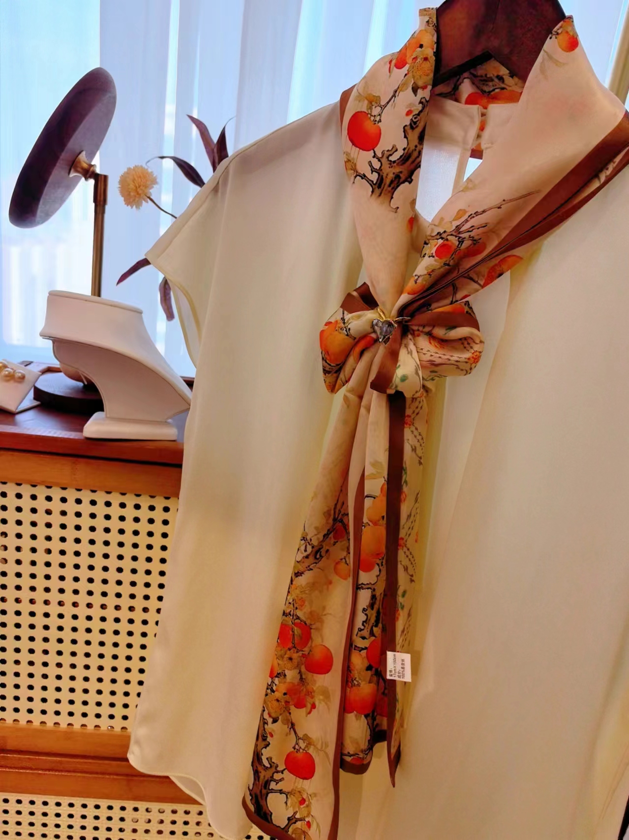【甄珠贝·国风系列】柿柿如意飘带和施华洛丝巾扣三件套礼盒套装【适合送外宾】