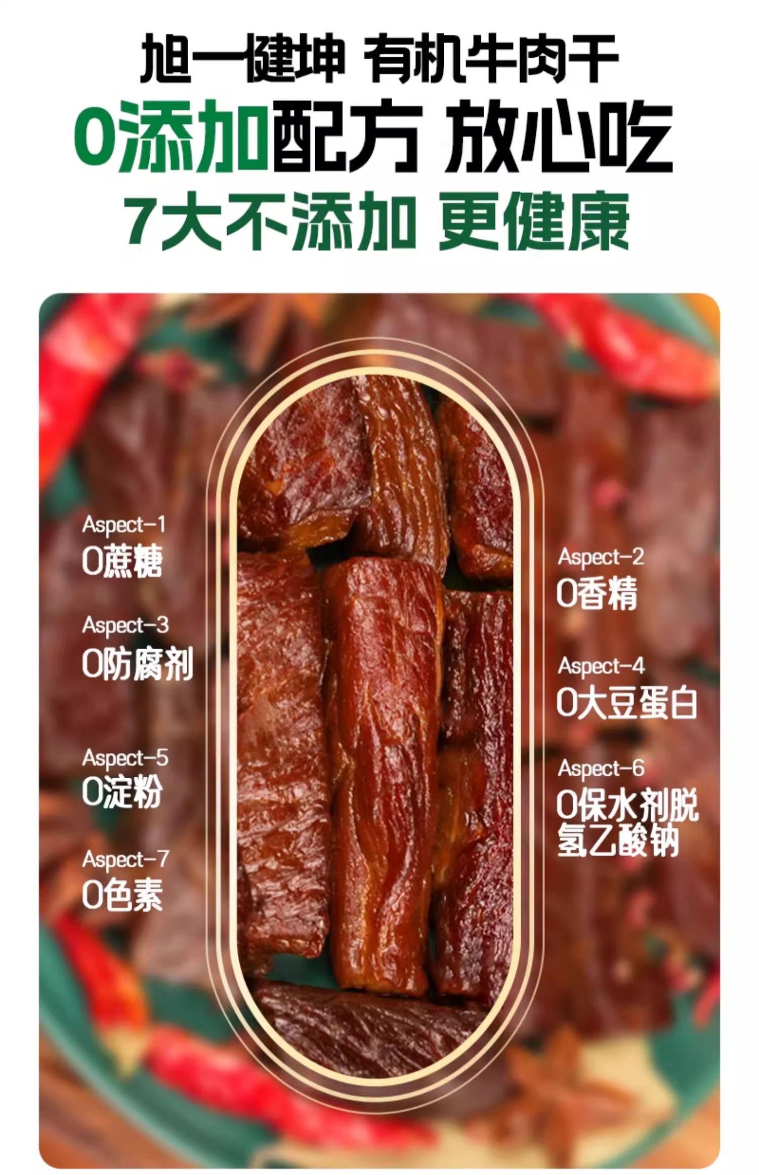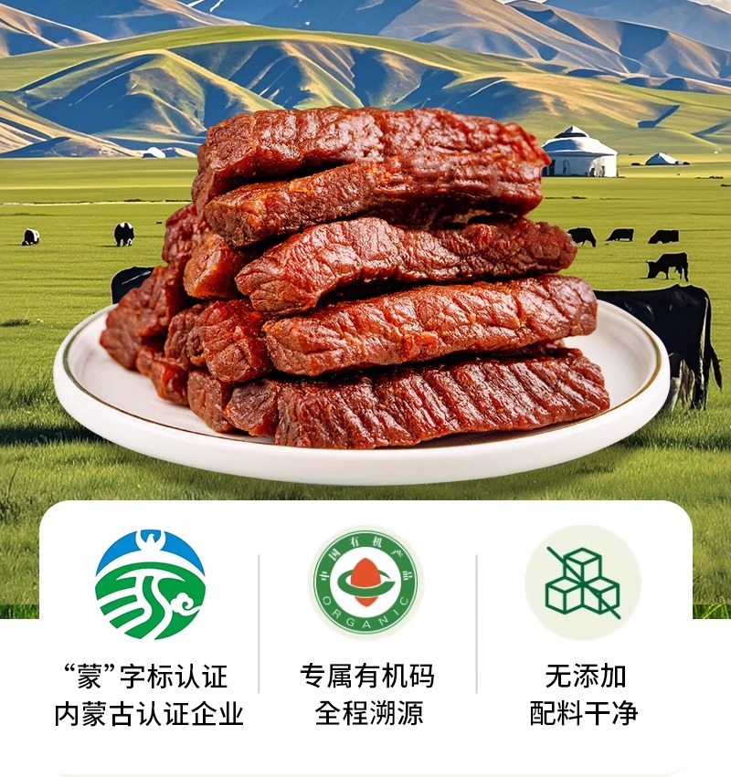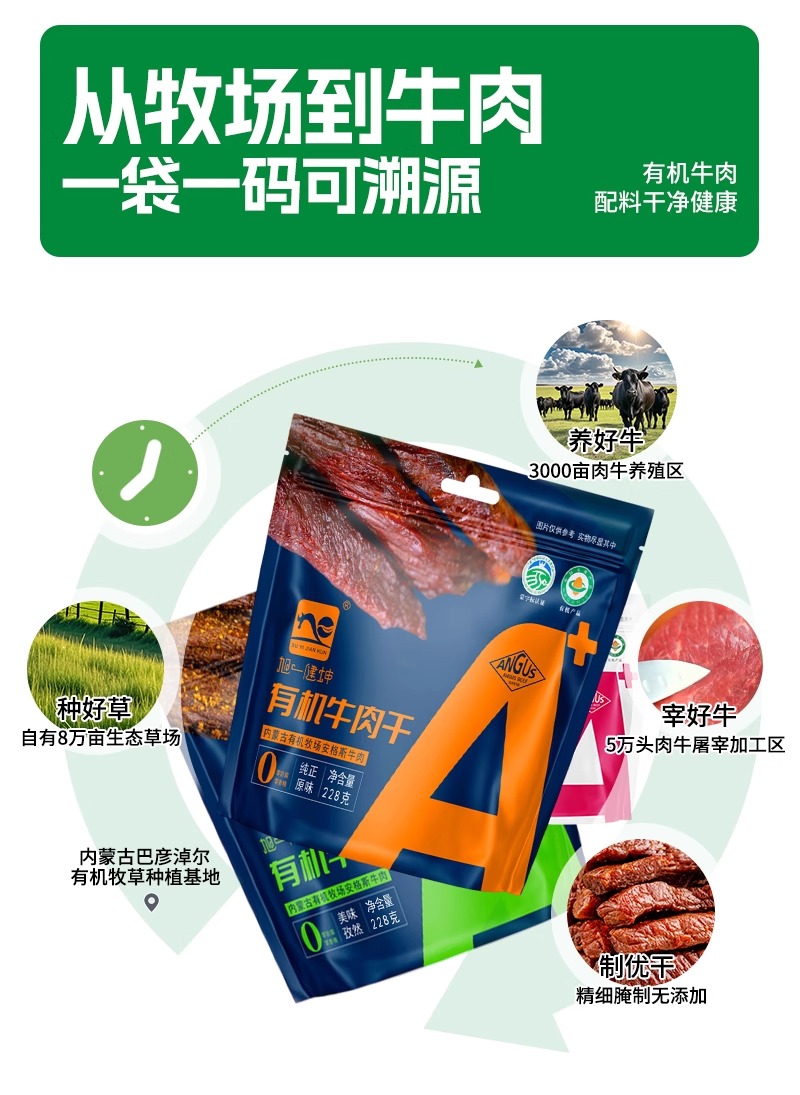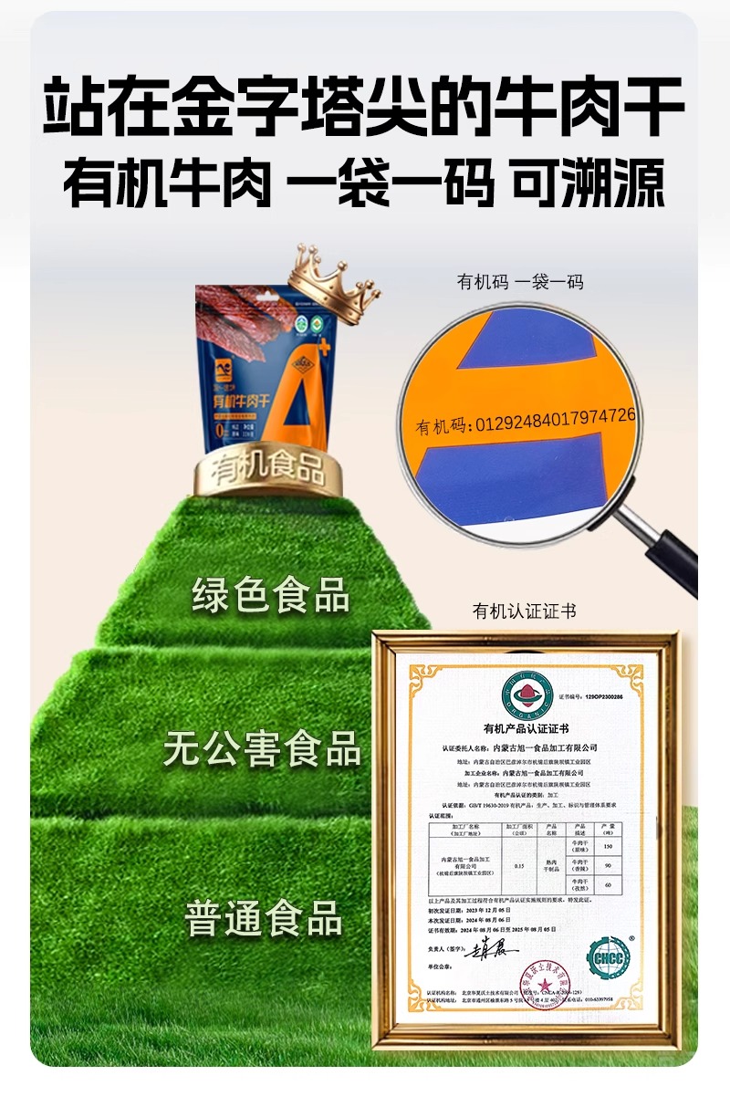 【0添加 放心吃】旭一健坤内蒙有机牛肉干 牧场到牛肉 1包1码可溯源 健康高蛋白休闲零食 多规格