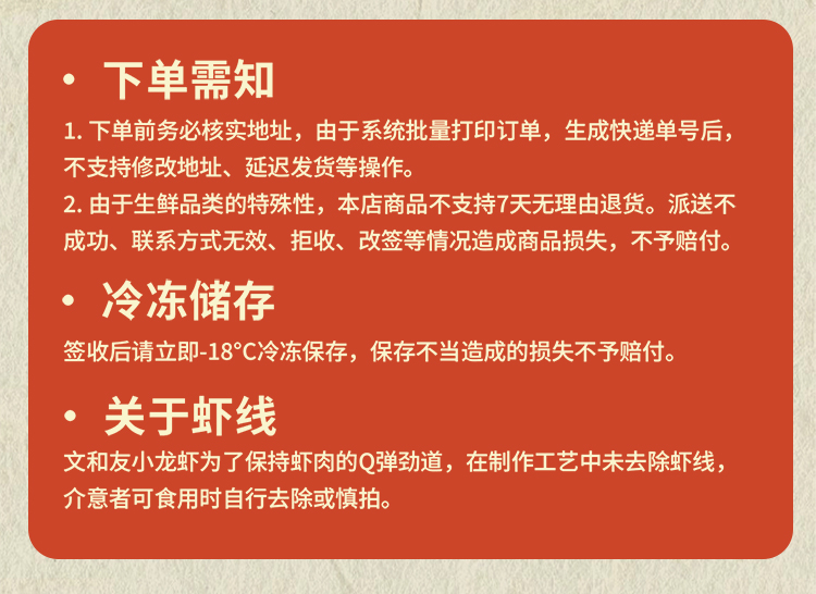 3、生鲜食品不接受中途拦截申请和改地址,介意勿拍