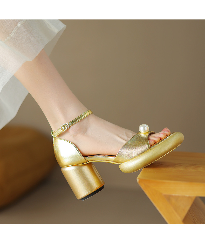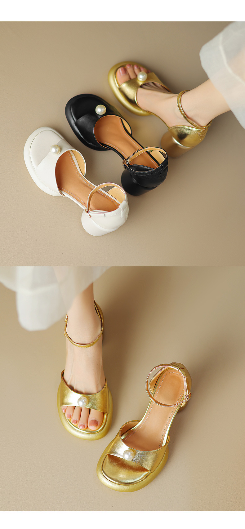 鞋垫:头层牛皮垫内里材质:头层猪里皮鞋底材质:TPR颜色:金色 黑色 米白色跟高:8 CM