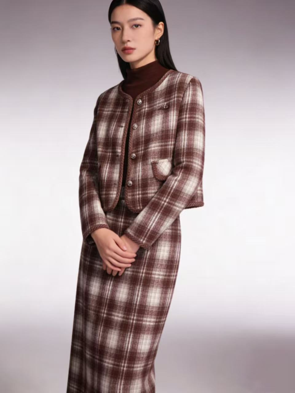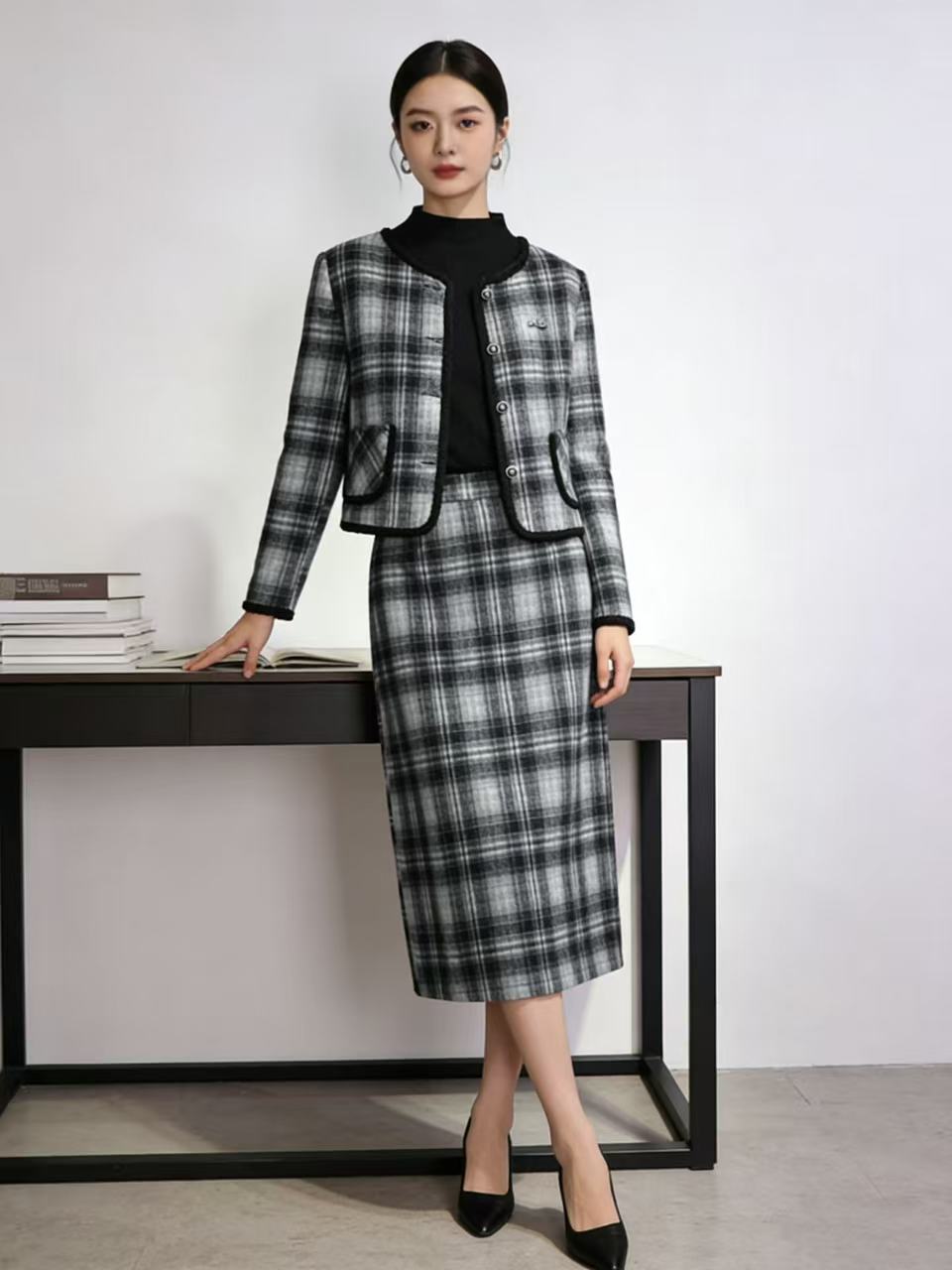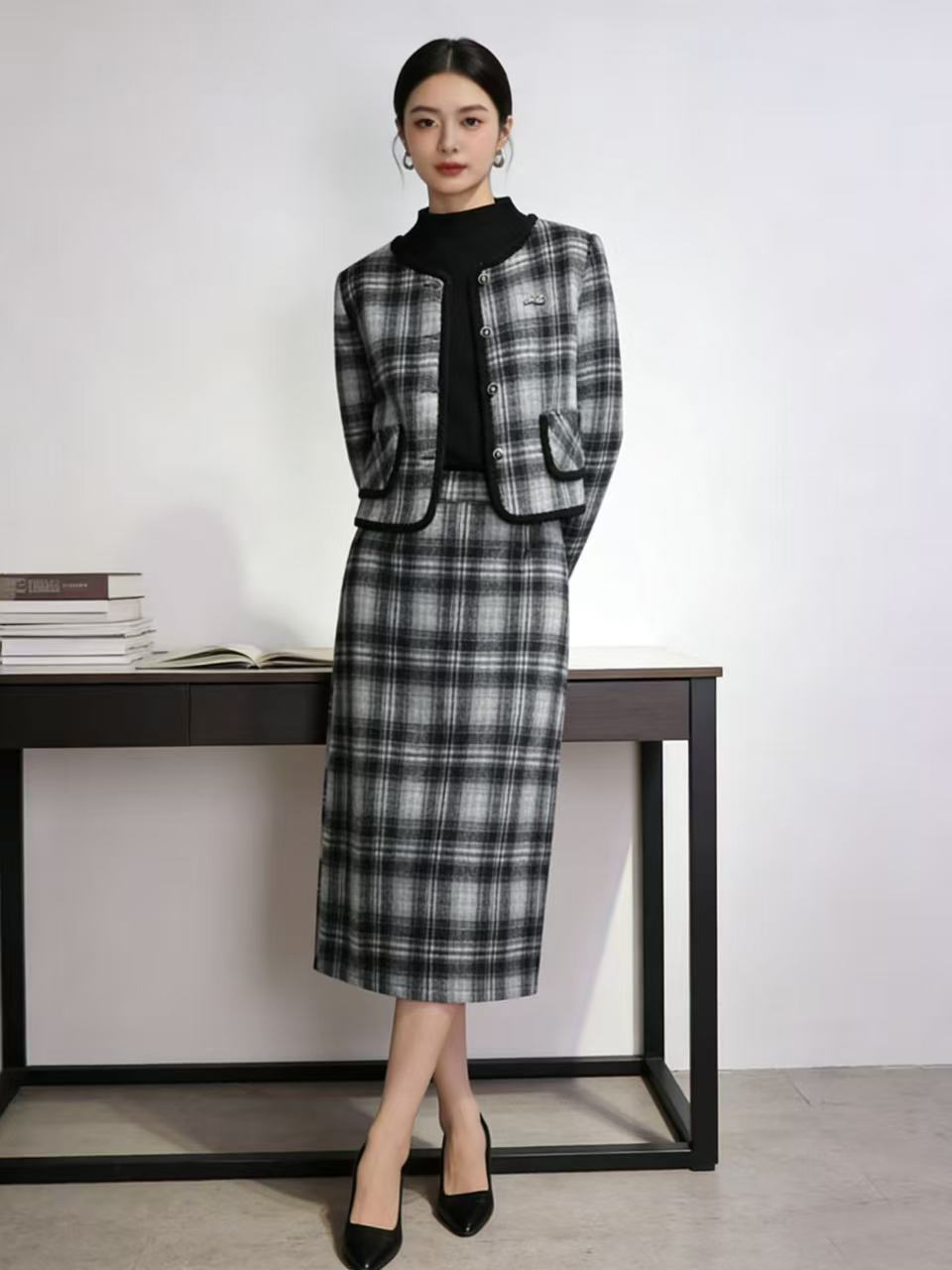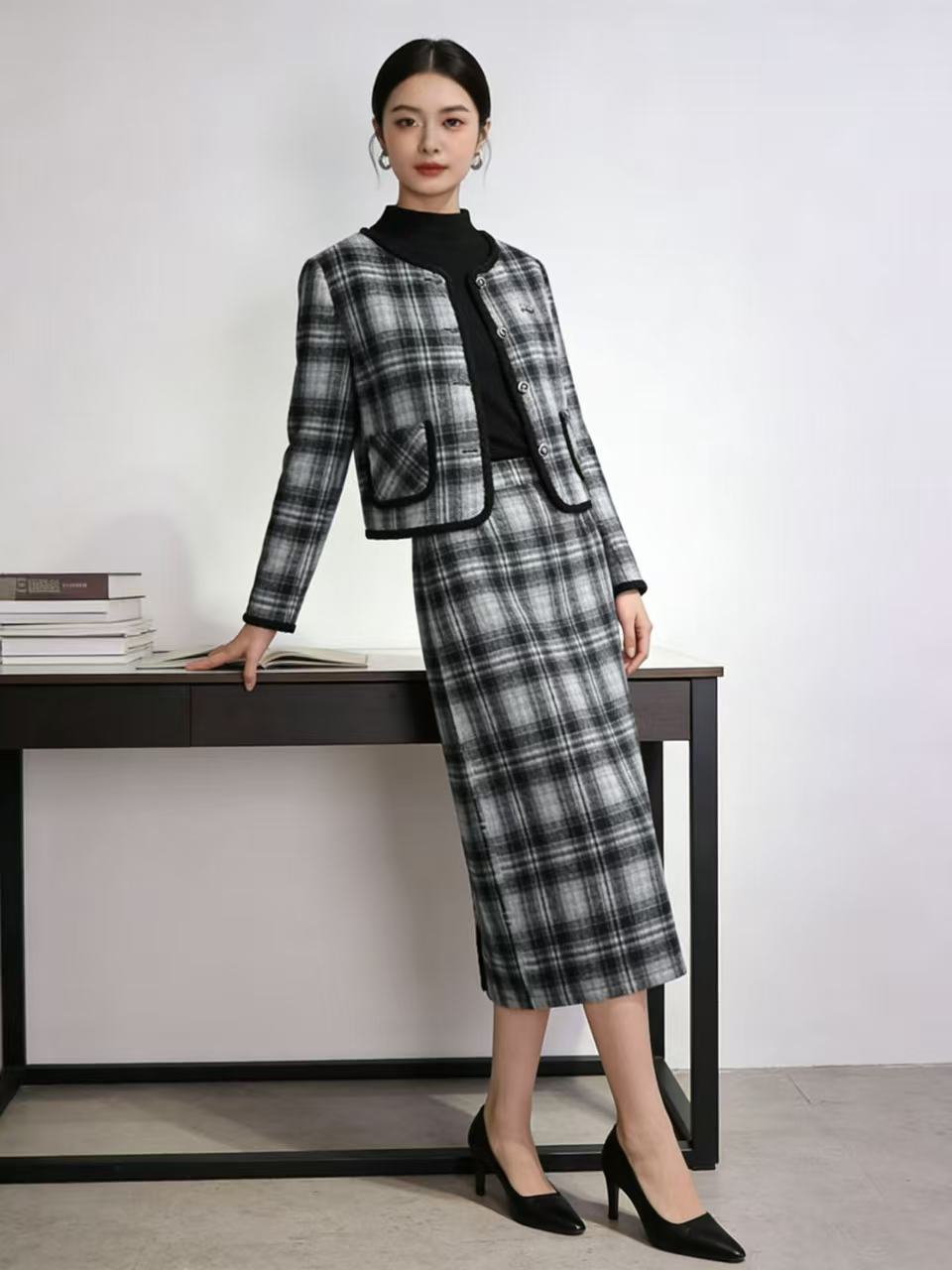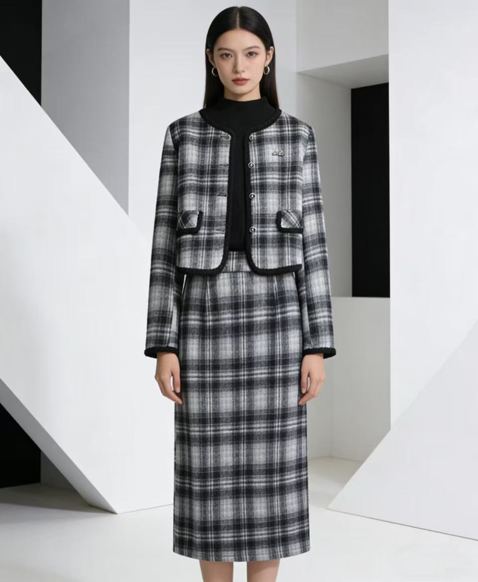 418良粉节|2026 活动爆款 活动爆款~【自营】衣周期~(三件套)Q81小香风格子外套➕打底衫➕半身裙三件套套装-喜出