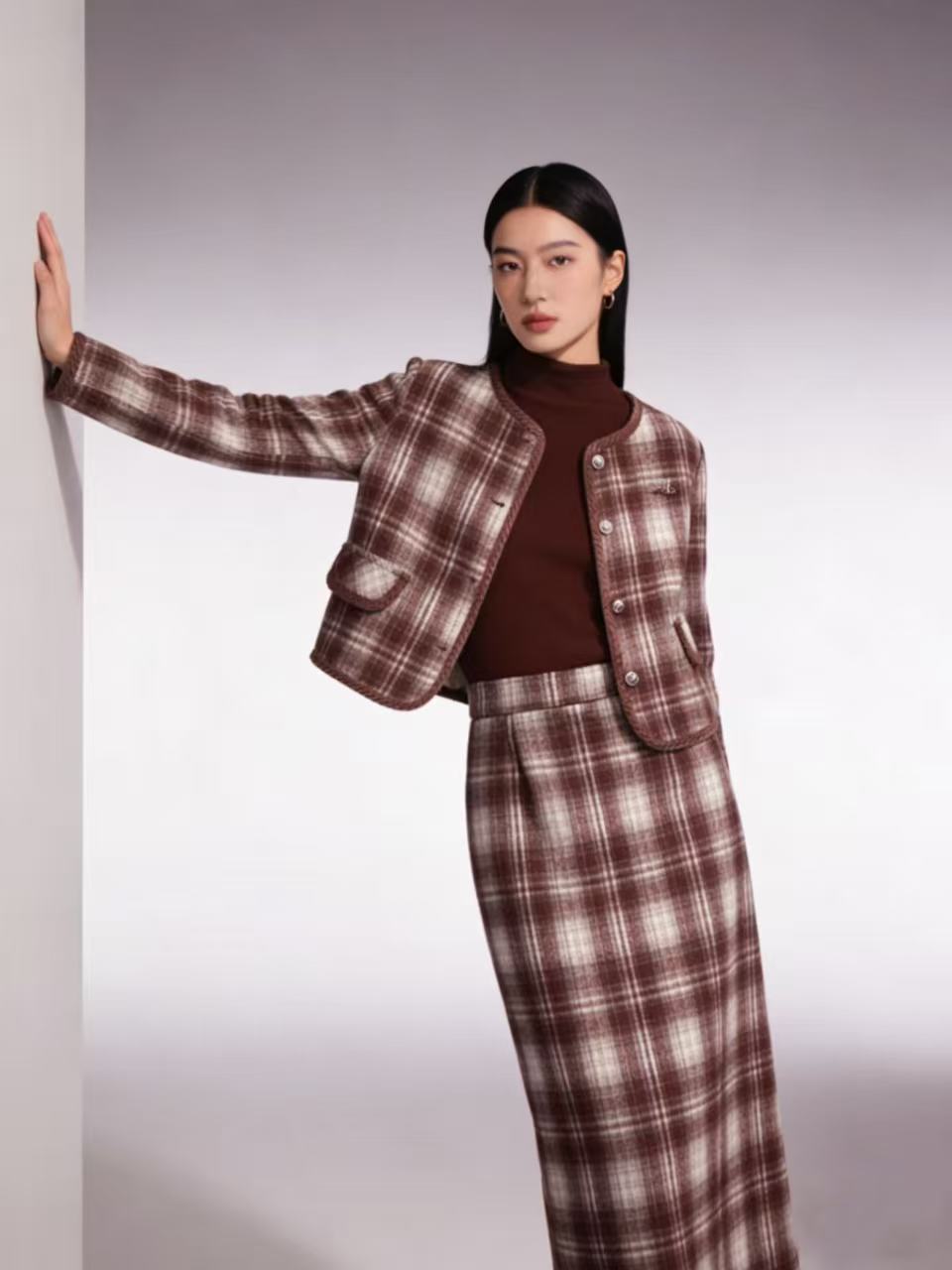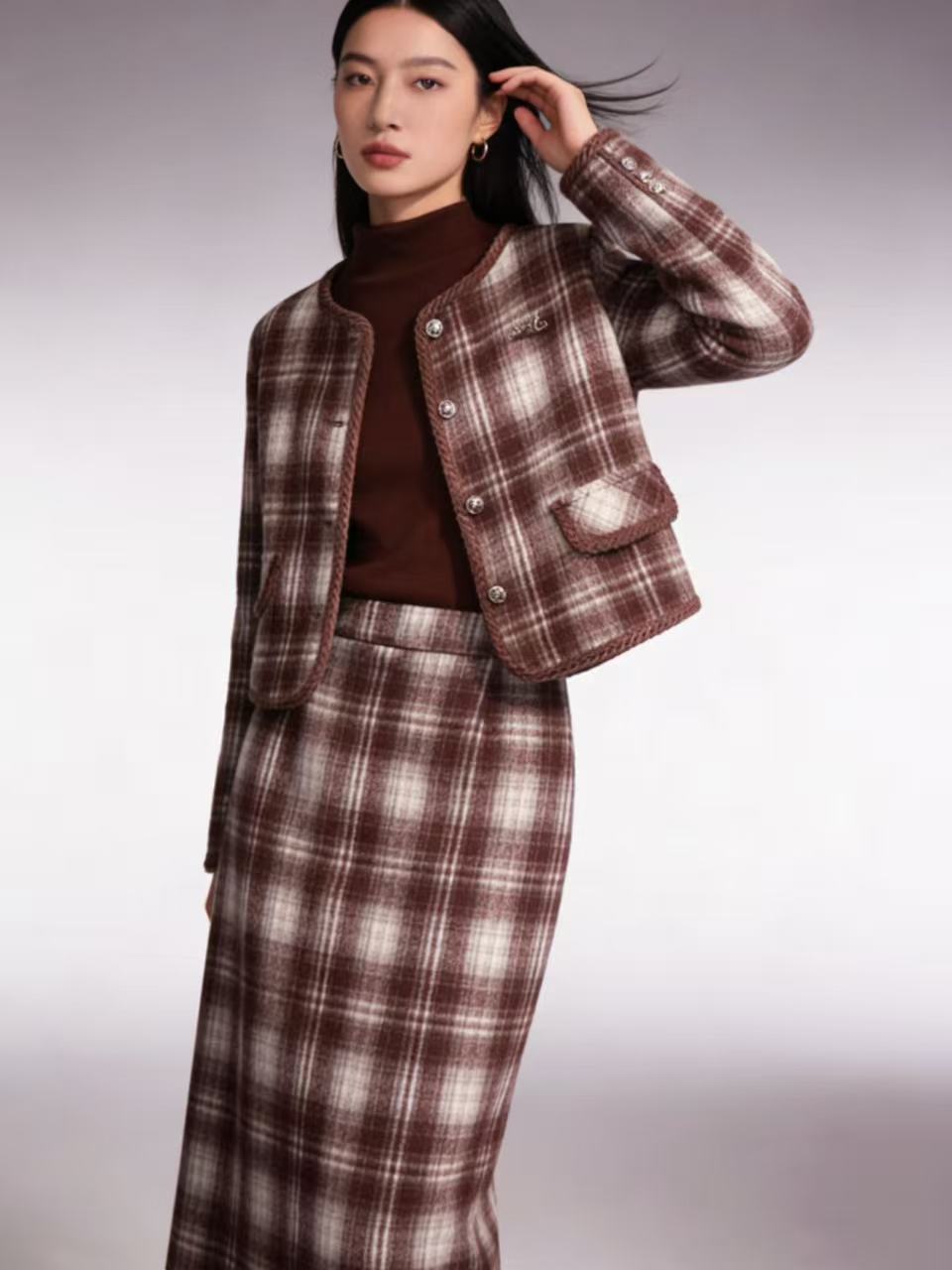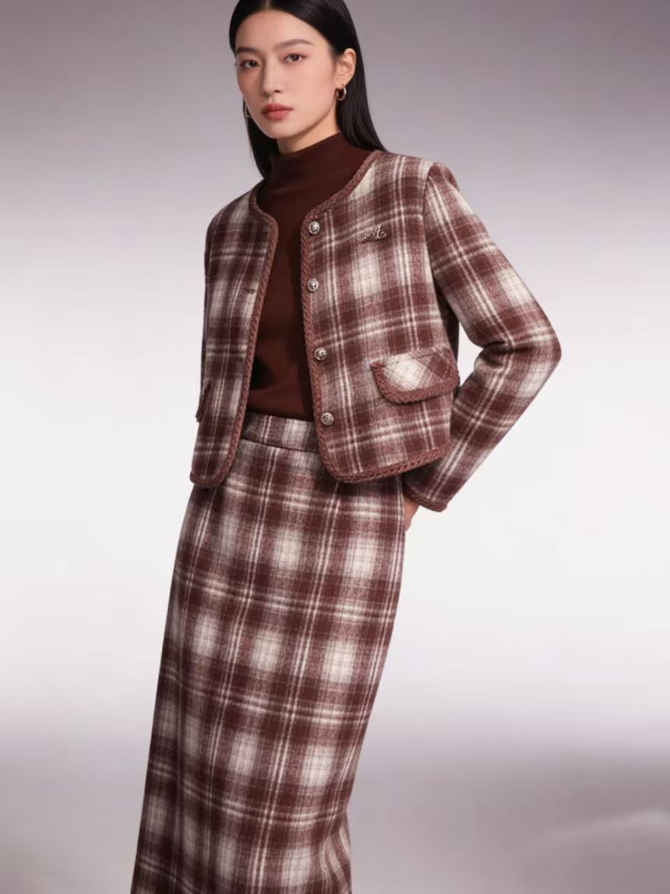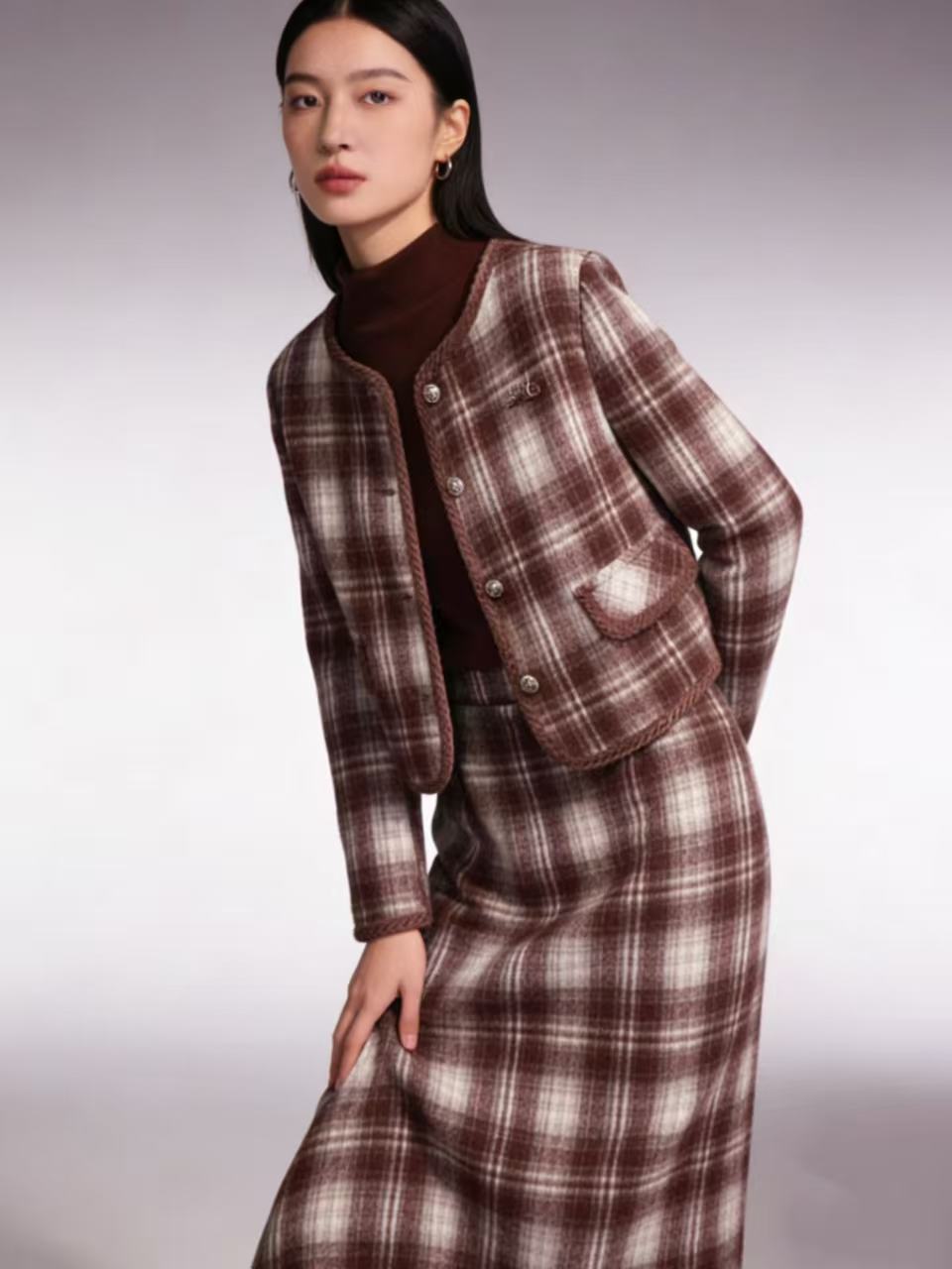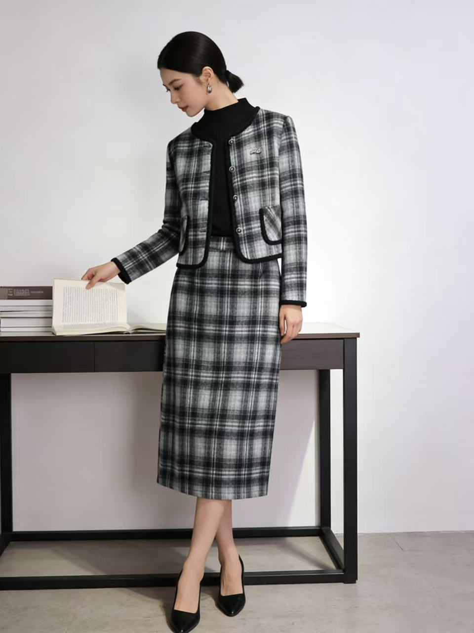 418良粉节|2026 活动爆款 活动爆款~【自营】衣周期~(三件套)Q81小香风格子外套➕打底衫➕半身裙三件套套装-喜出