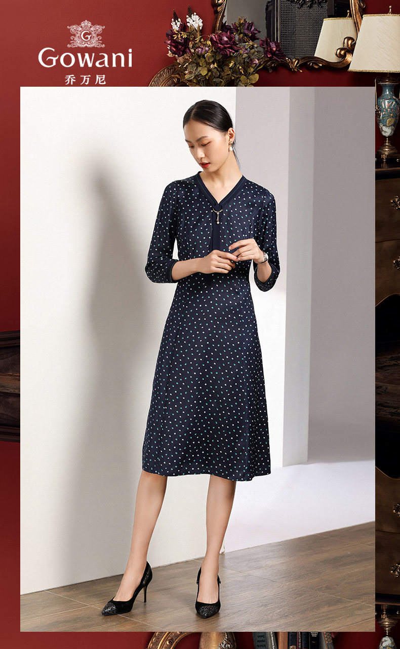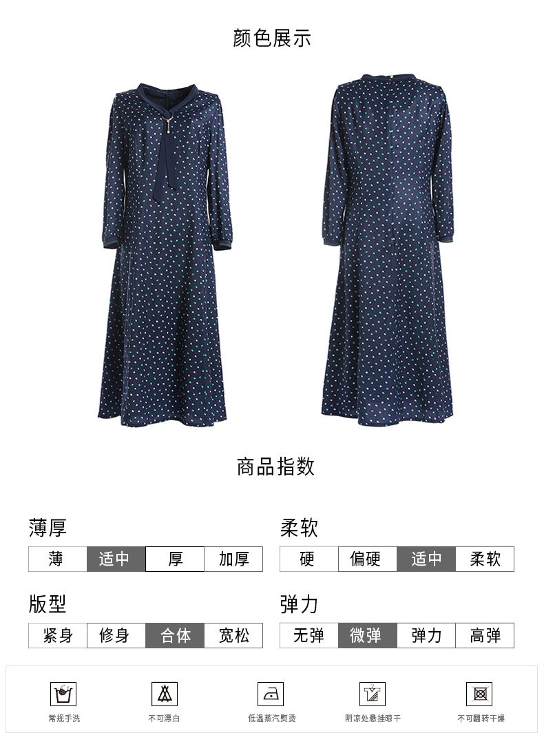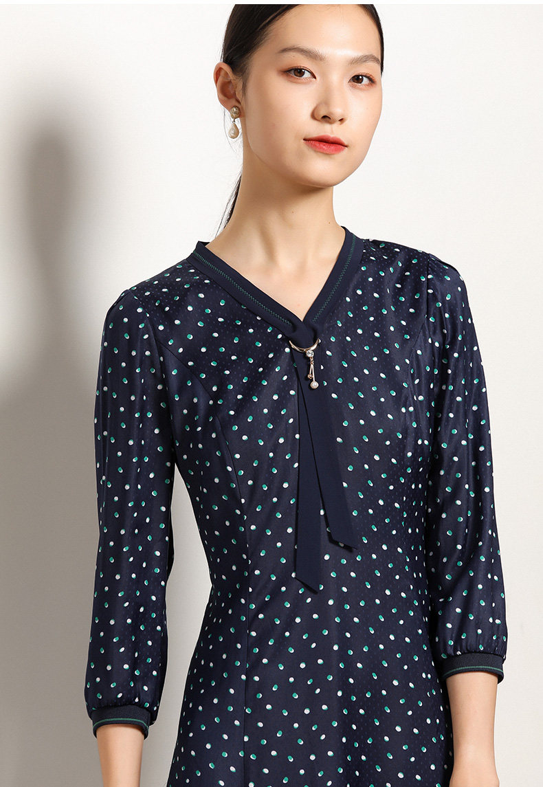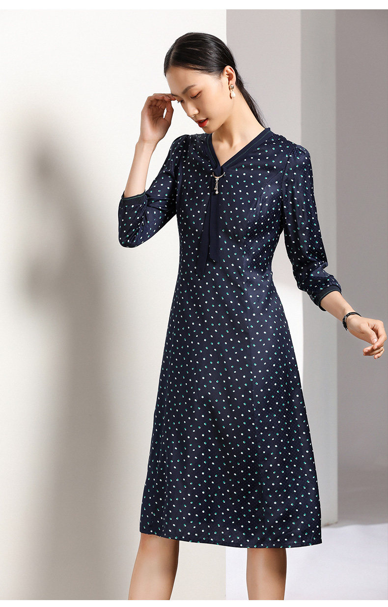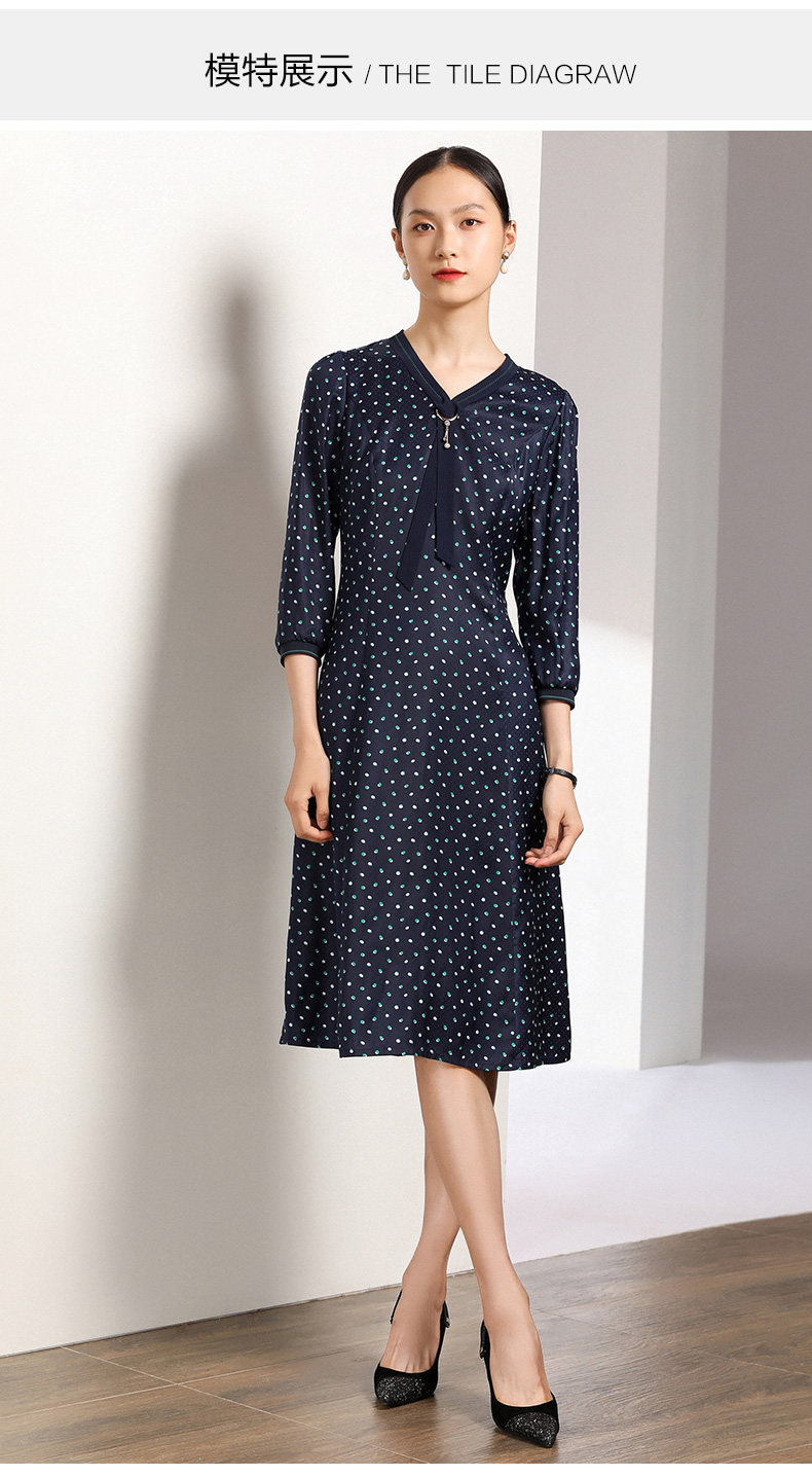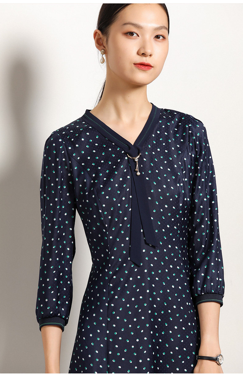 乔万尼秋装女波点修身显瘦气质七分袖领带连衣裙中长款EN3E327