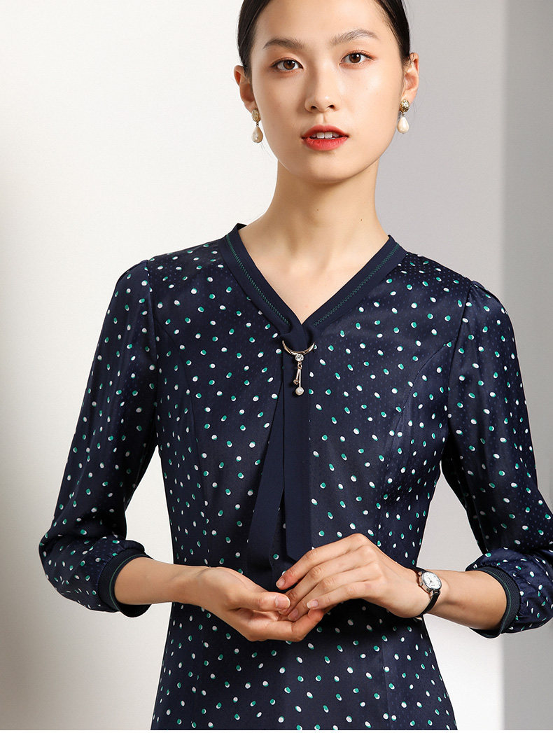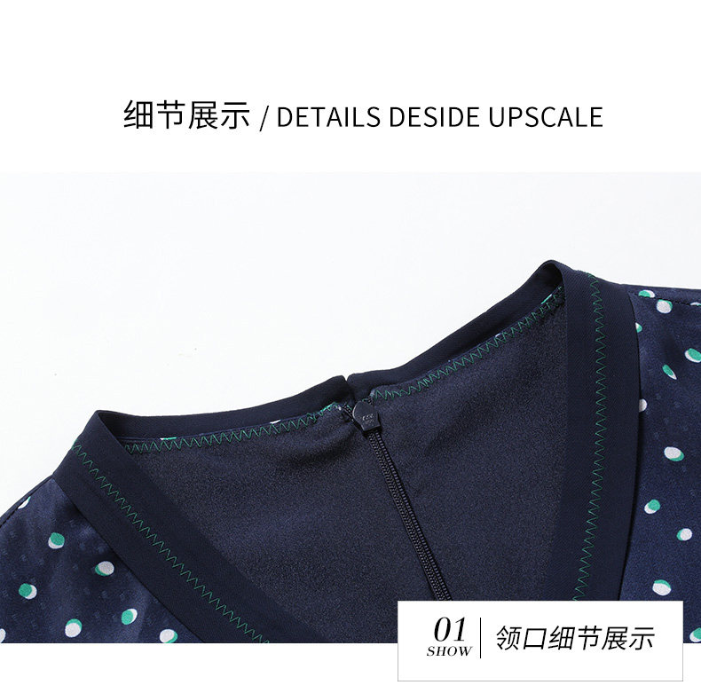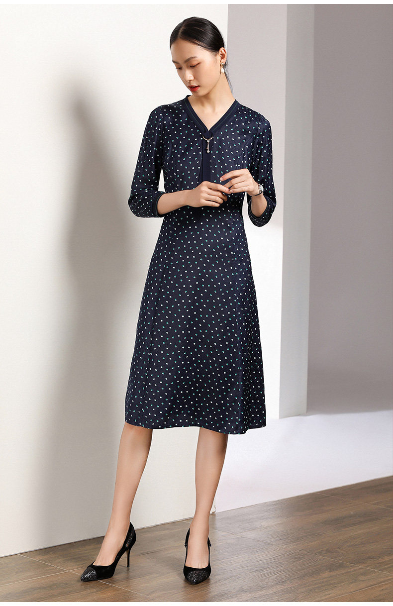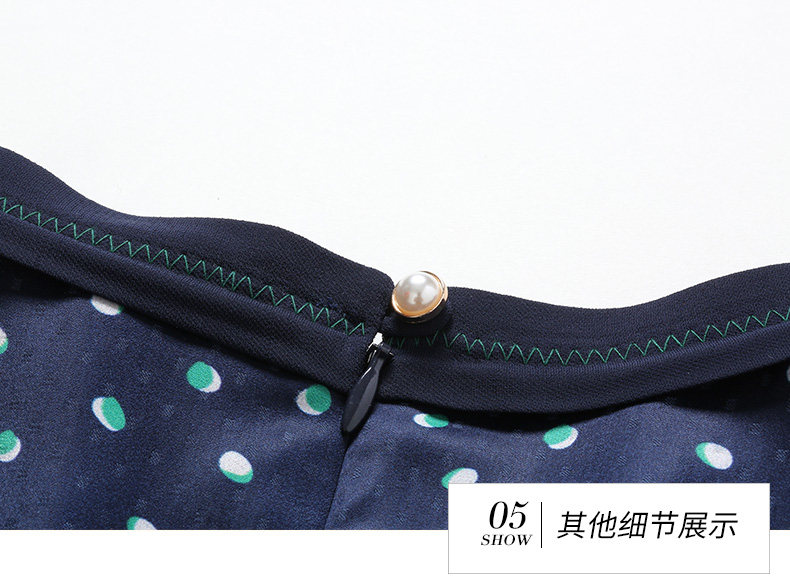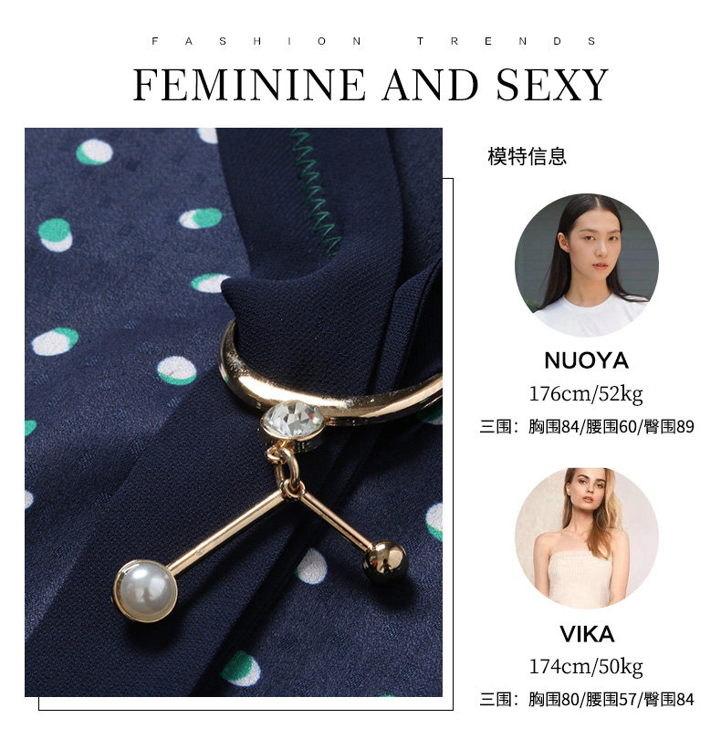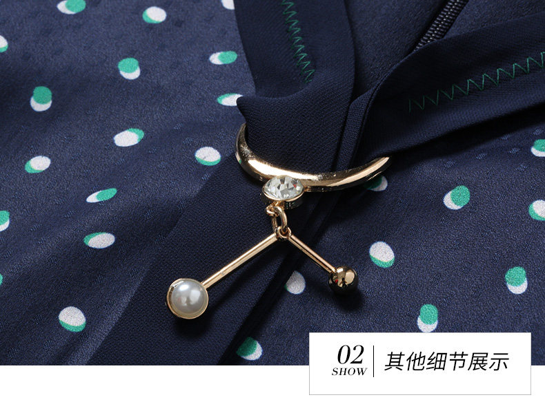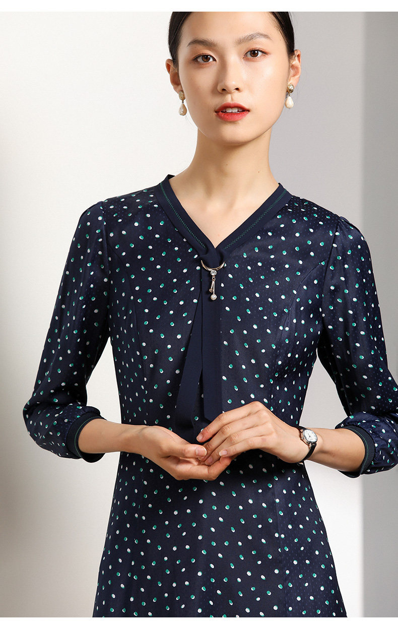 乔万尼秋装女波点修身显瘦气质七分袖领带连衣裙中长款EN3E327