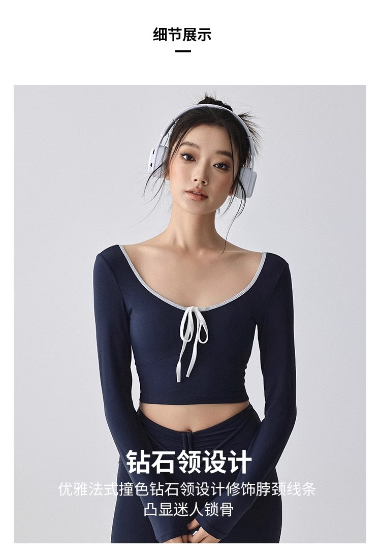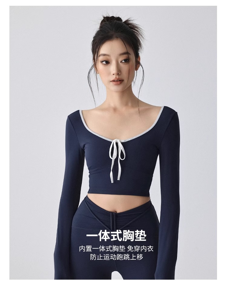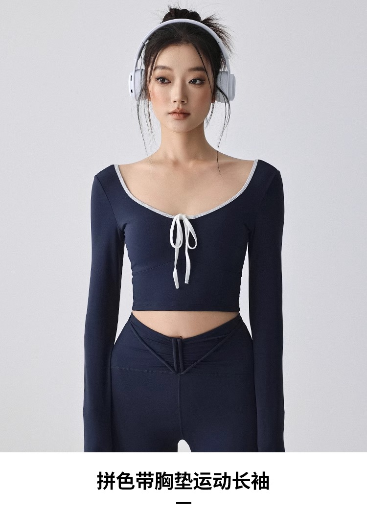 跃牌【禅语梵心】带胸垫拼色网纱瑜伽服女性感跑步运动T恤CX2942