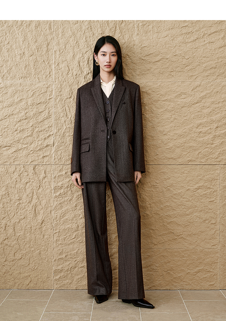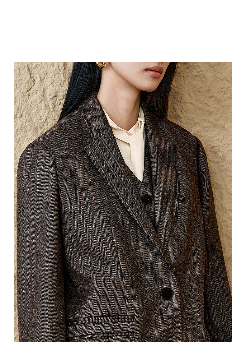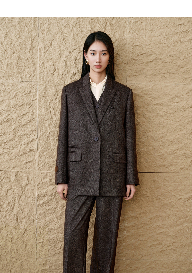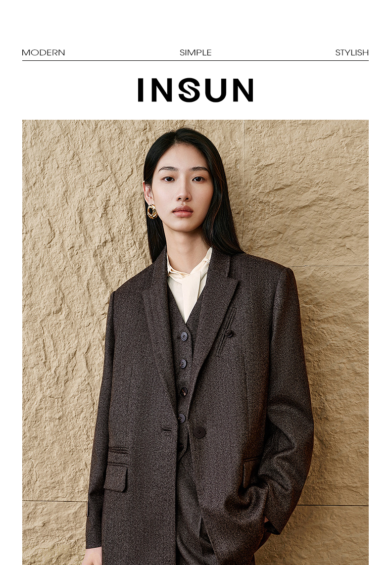 INSUN恩裳复古老钱风羊毛西装外套