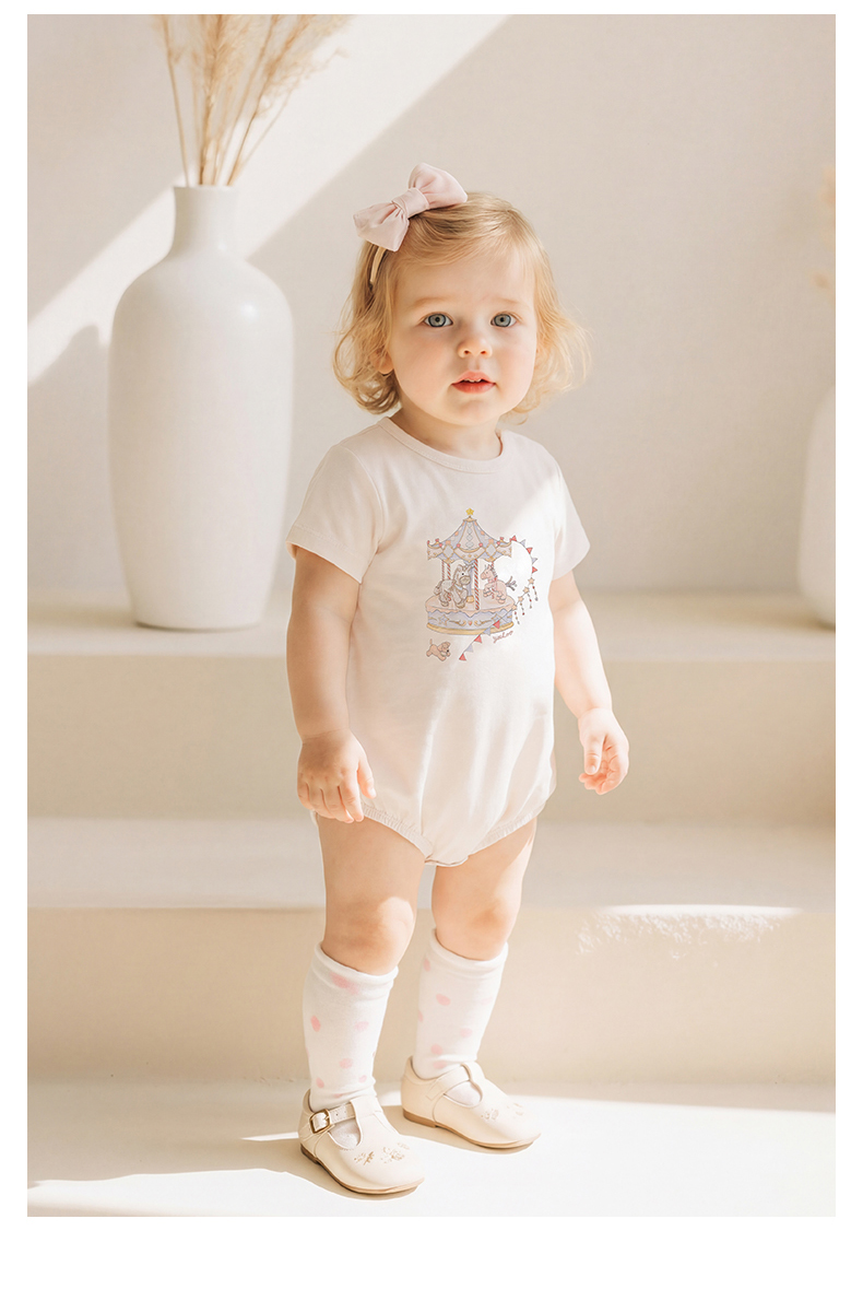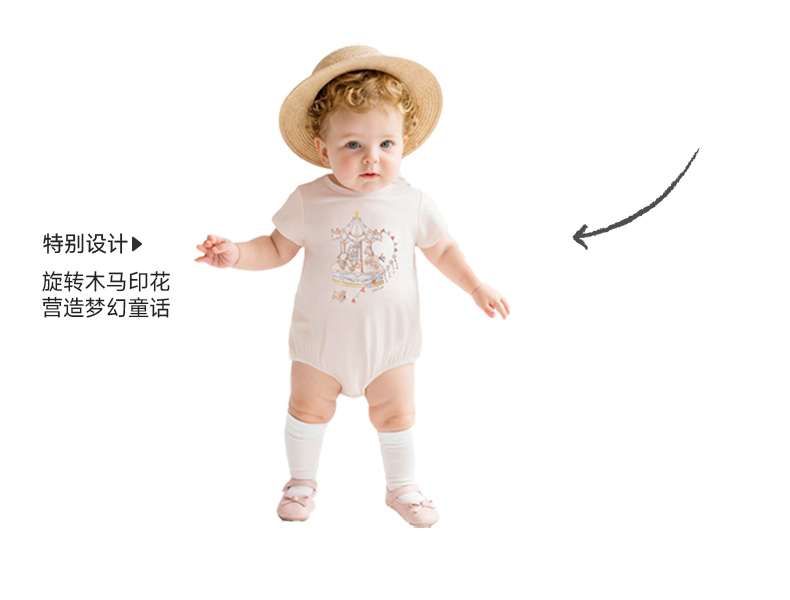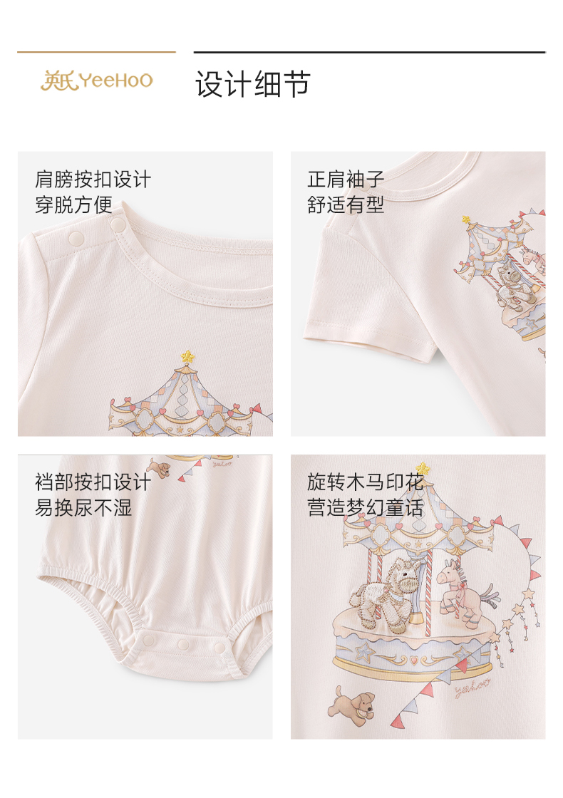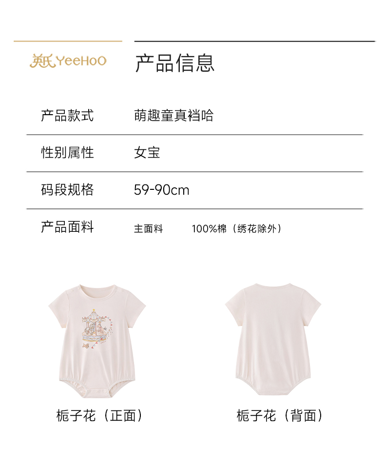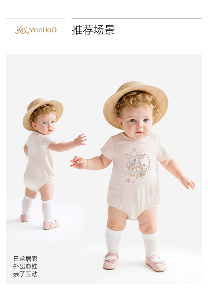 【商场同款】英氏婴儿连体衣夏新款女宝短袖哈衣纯棉宝宝爬服外出