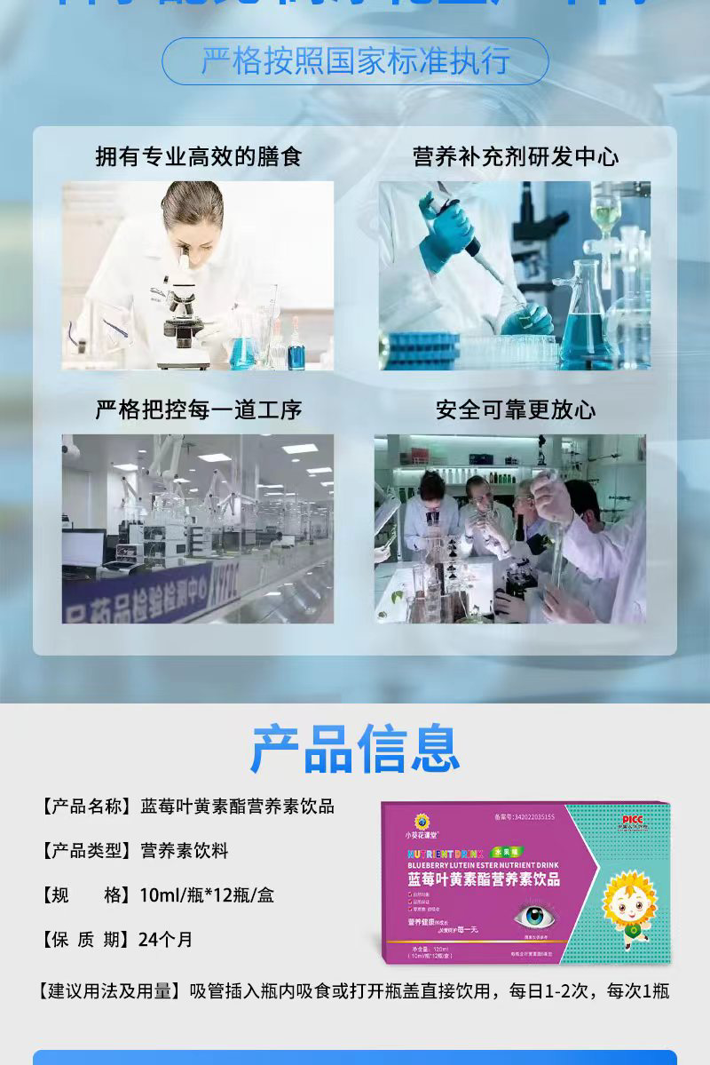 小葵花课堂蓝莓叶黄素酯营养素饮品12支儿童宝宝护眼增进视力防蓝光口服液营养品饮液