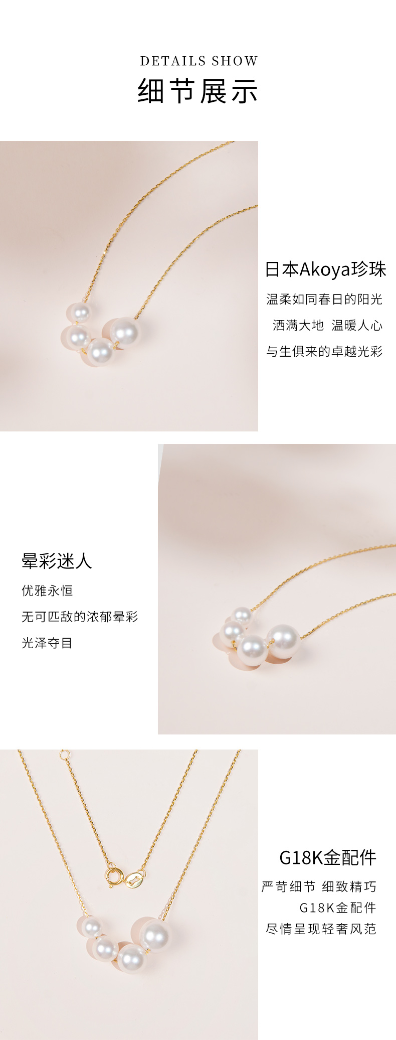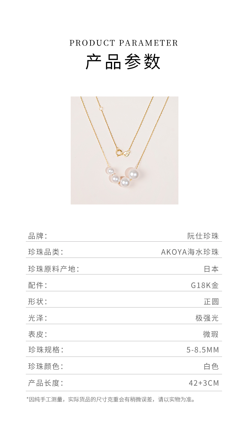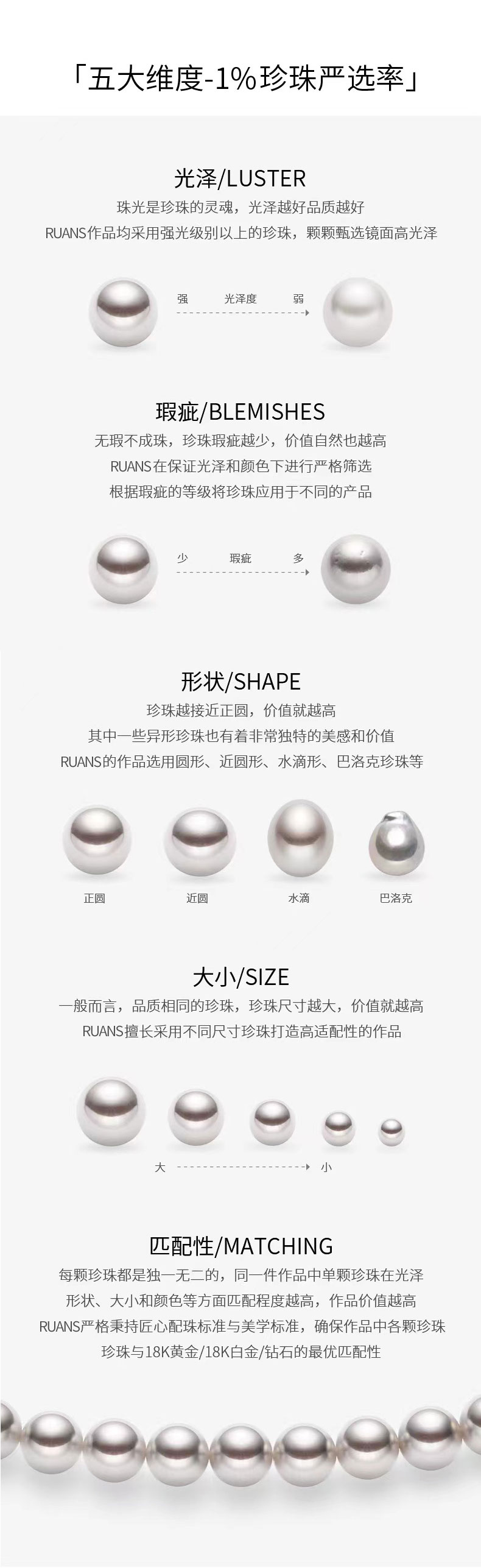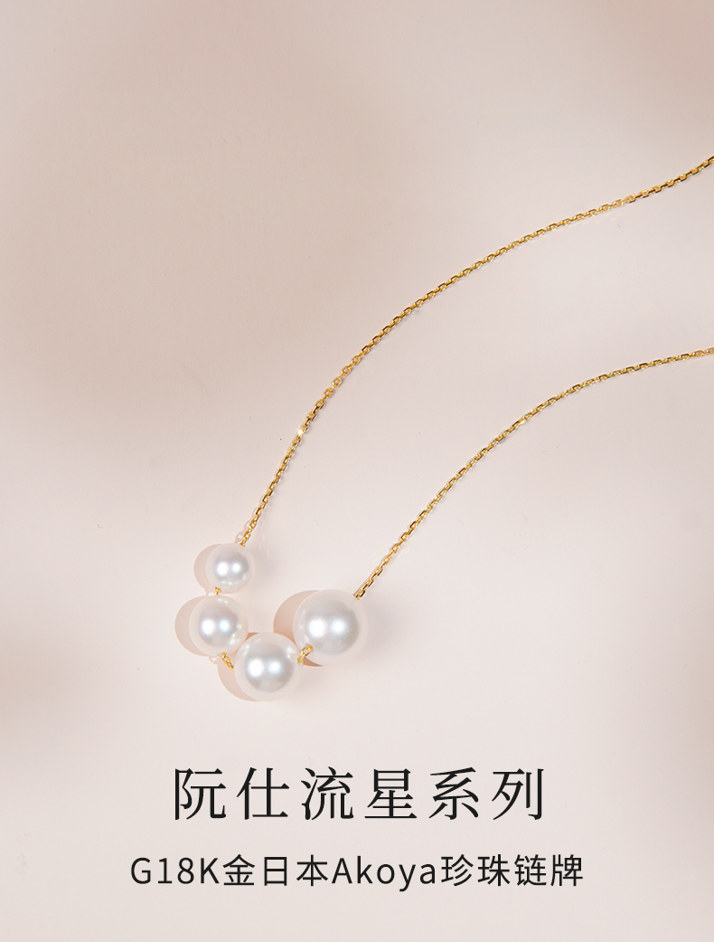阮仕珍珠 流星系列G18K金日本akoya珍珠链牌 5-8.5mm 正圆 微瑕 极强光
