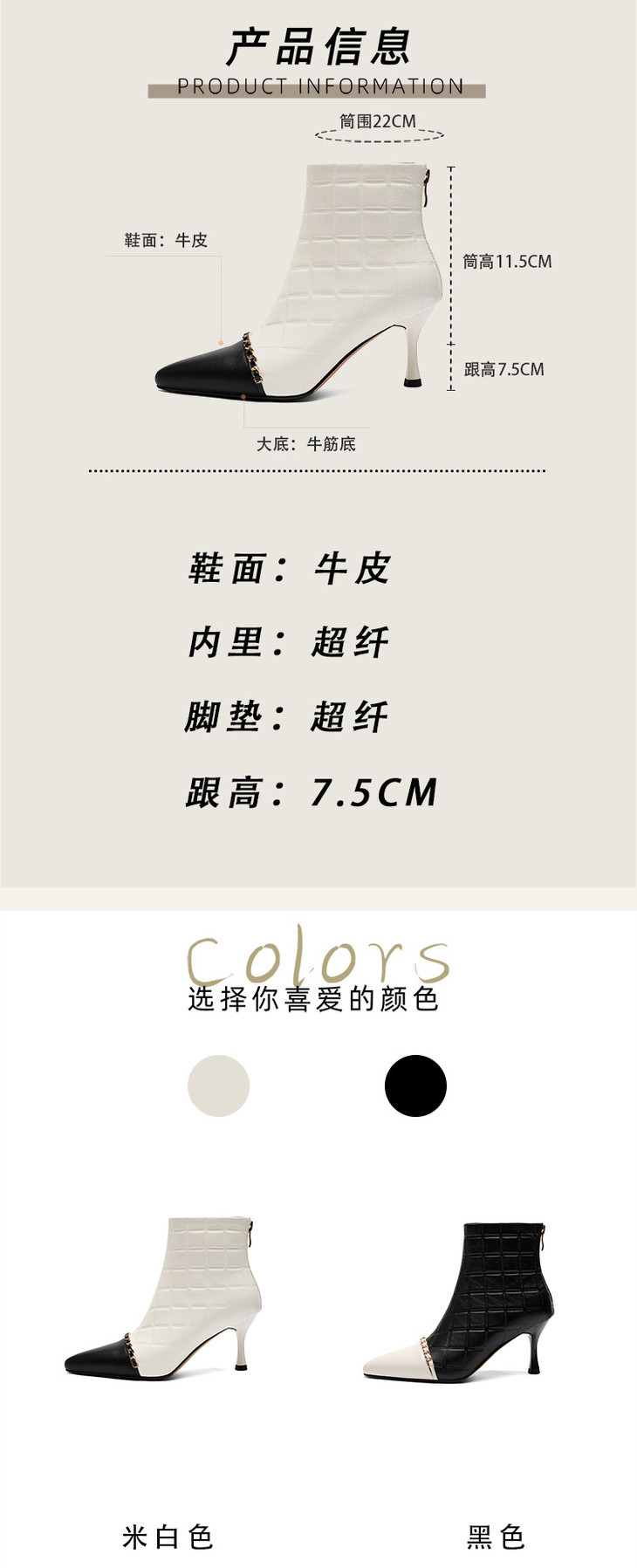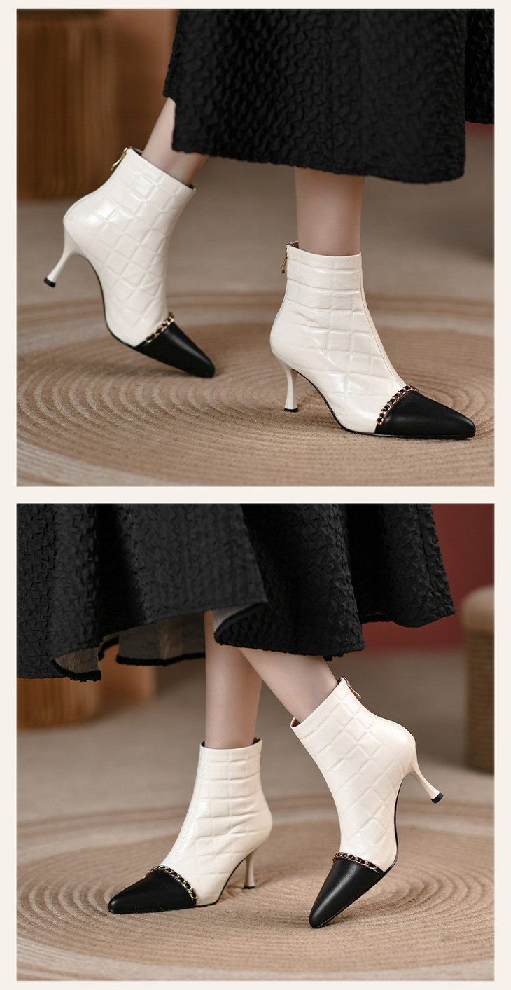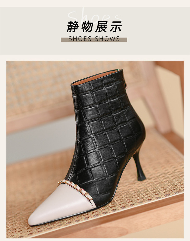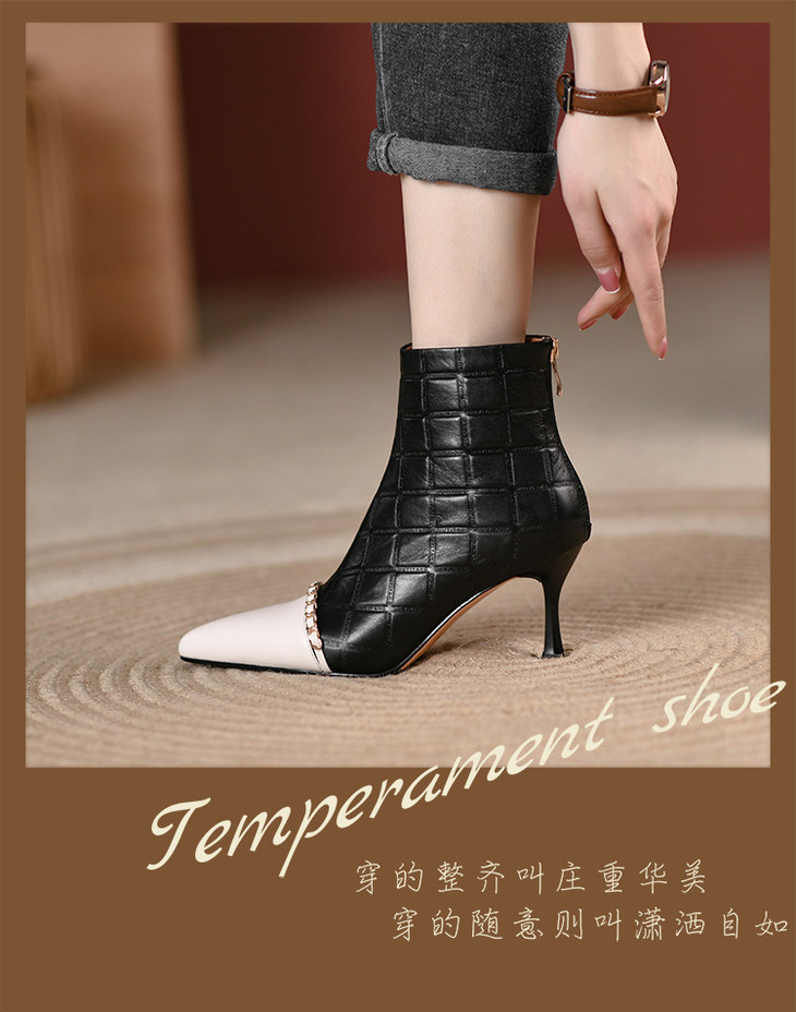 OLD1952dd新款韩版时尚气质尖头细高跟拼色短靴