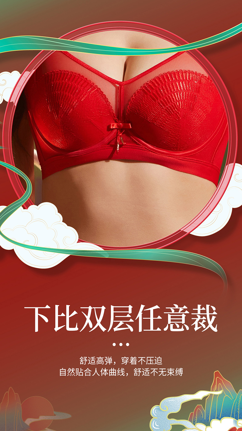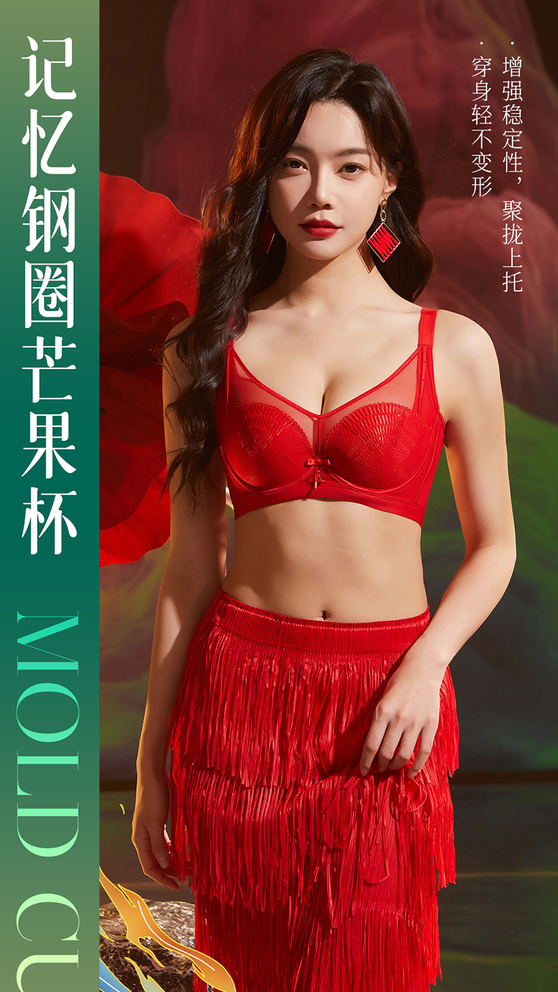 QC-Y1335 超薄芒果杯轻奢刺绣国风美感大胸显小桑蚕丝杯里高颜值聚拢文胸(单件)