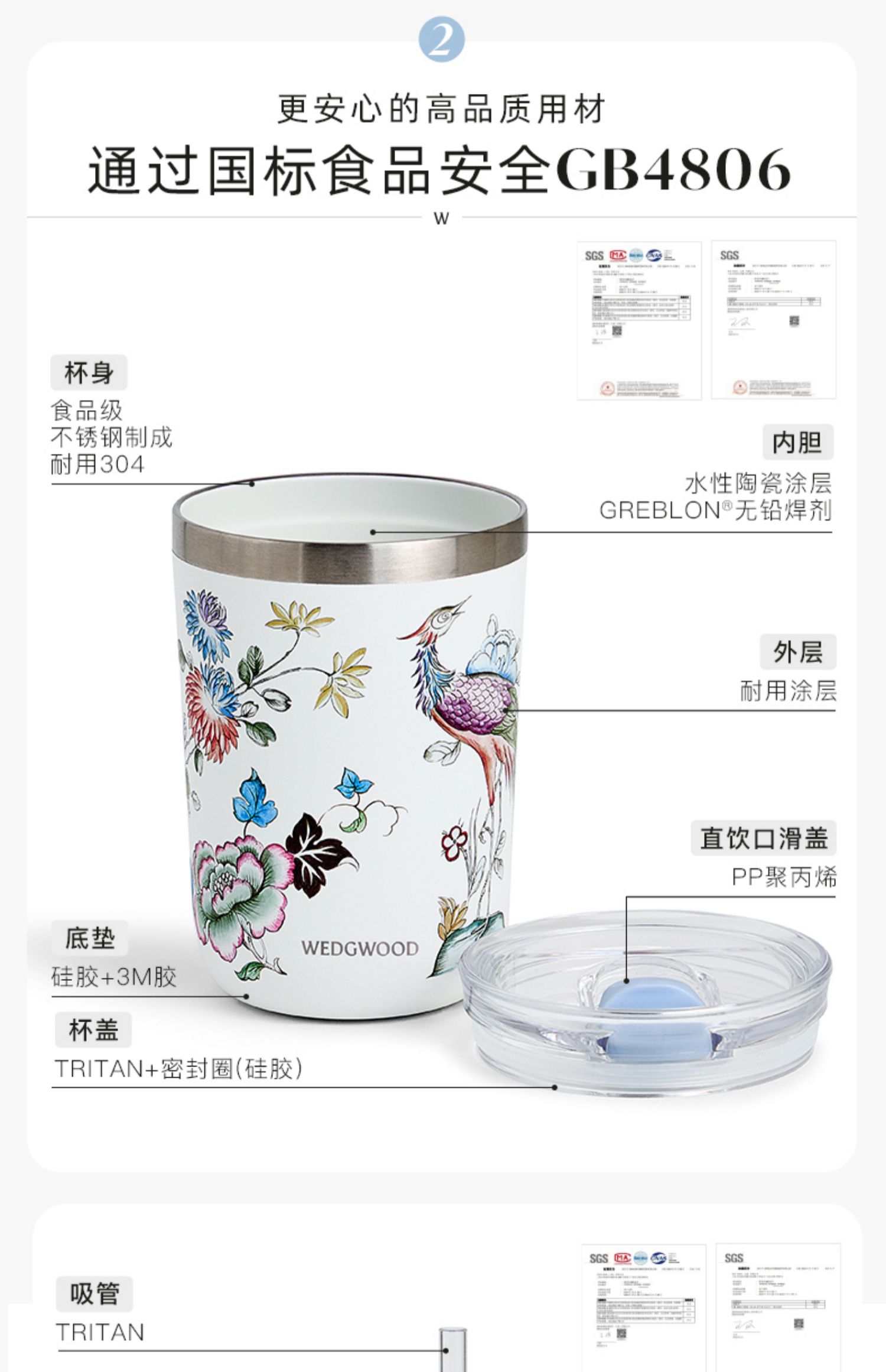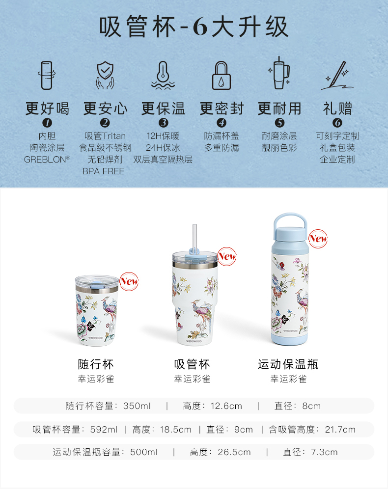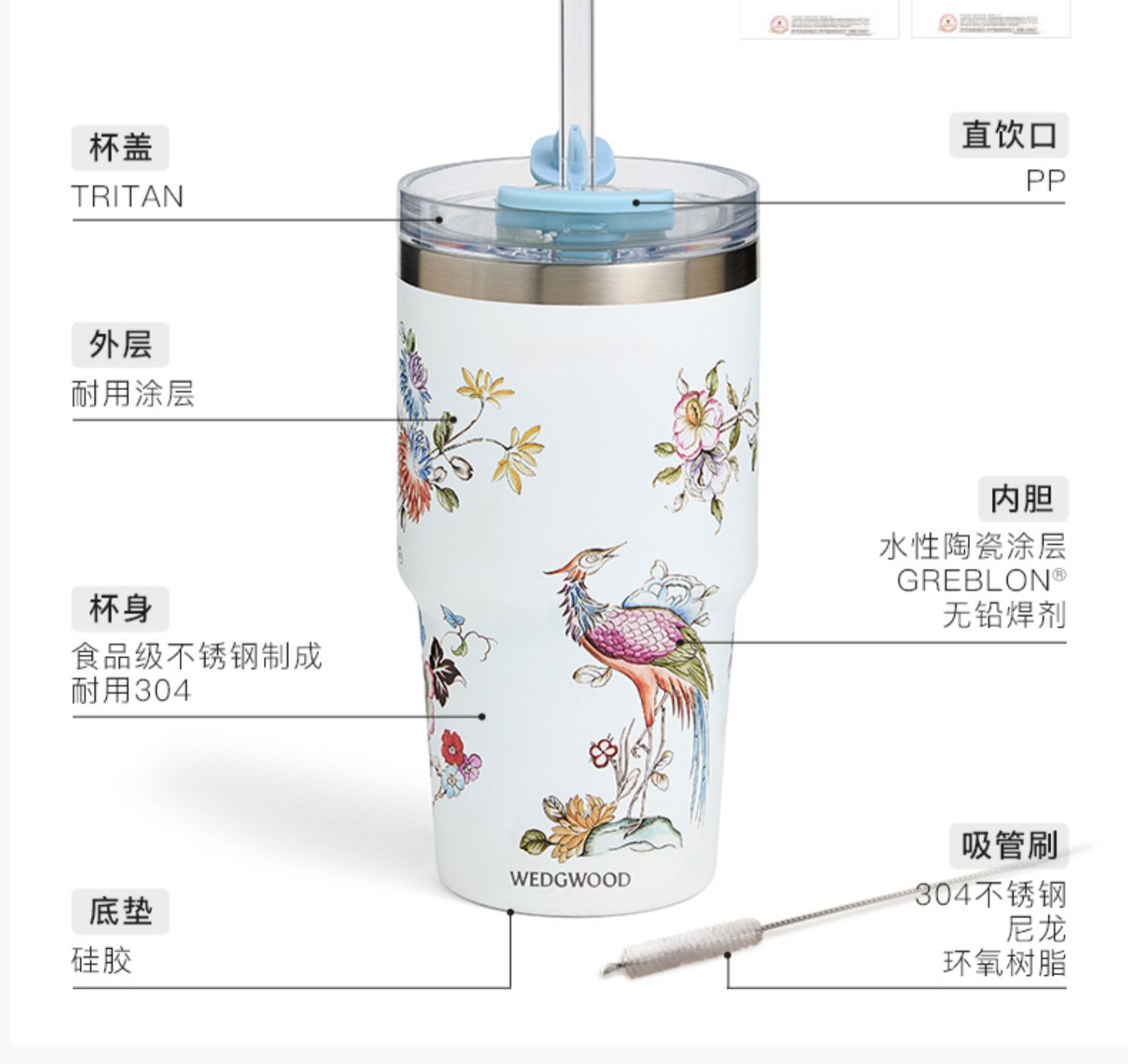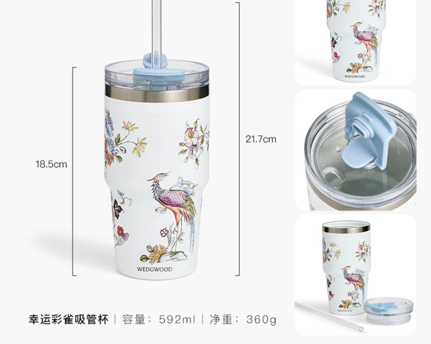 【WEDGWOOD】威基伍德幸运彩雀/漫游美境吸管杯592ml保温保冷杯