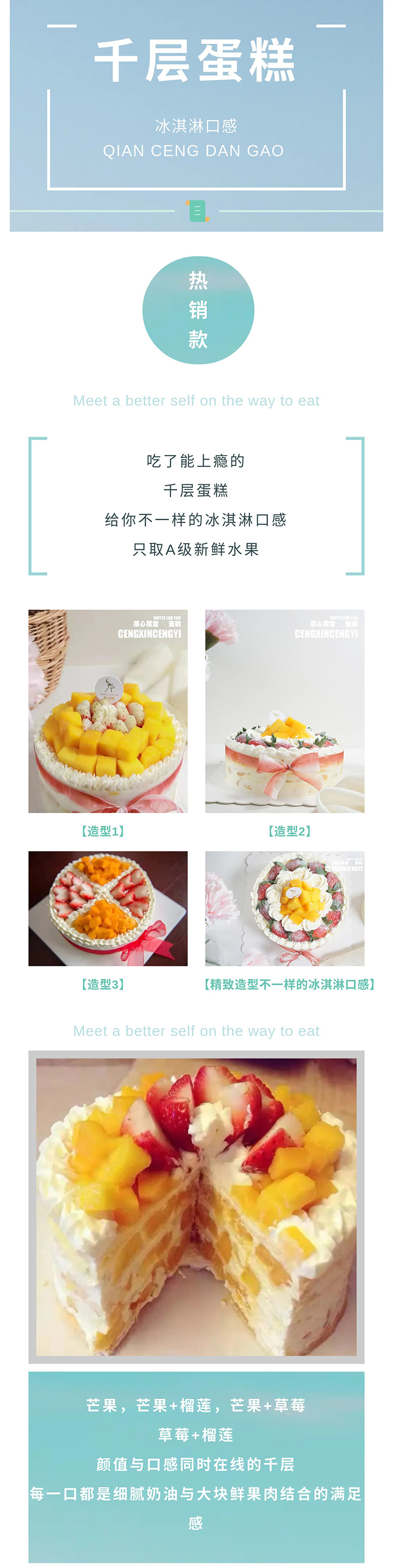 千层雪蛋糕 | 冰淇淋口感 | 芒果 | 草莓 | 榴莲(草莓已过季,现在草莓换树莓)