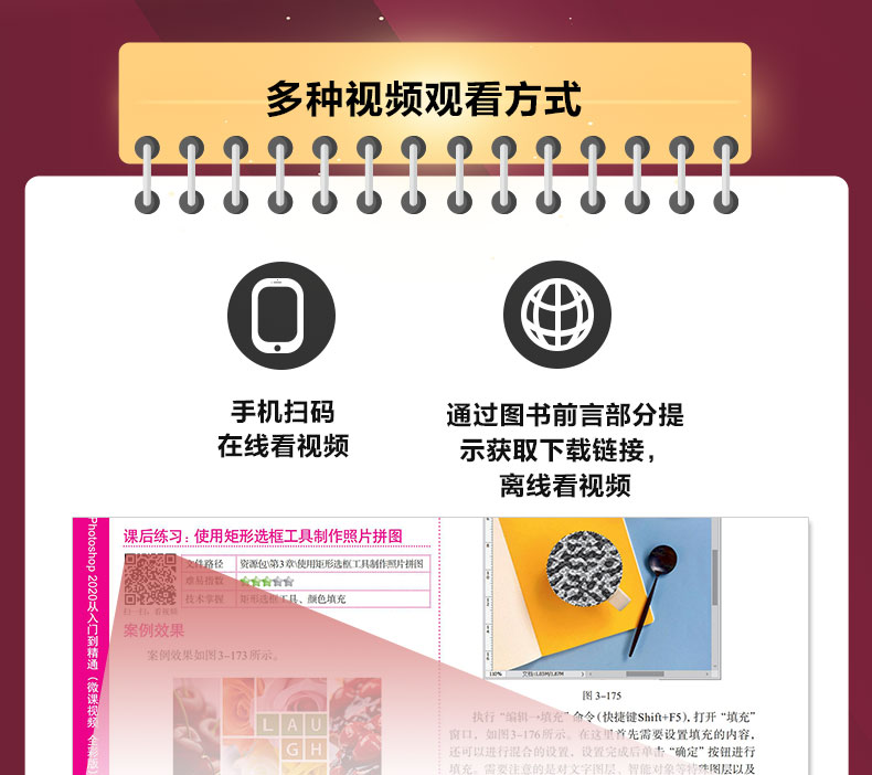 为了让读者朋友高效学习,每种书都专门制作了大量的同步视频,读者可以通过手机扫码和PC下载等多种方式观看。看百遍不如动手操作一遍,每种书还附带了几乎所有实例的素材源文件,读者可以对照图书或者视频的讲解进行练习操作。