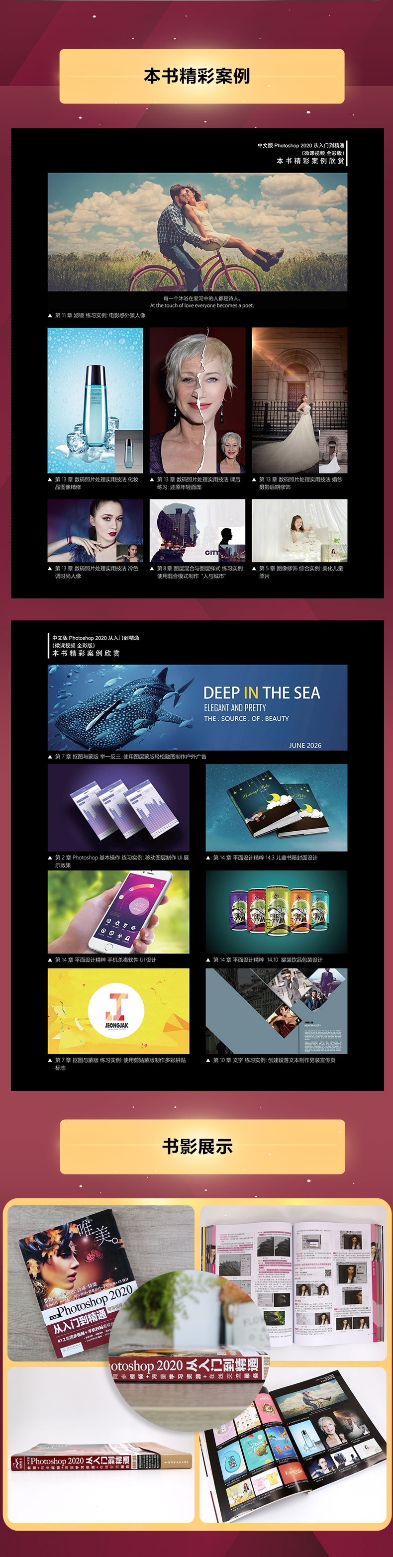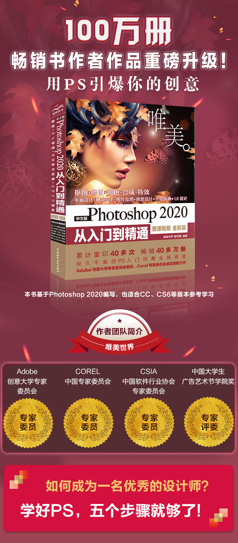 PS只是软件工具,设计优秀的作品一定要有美的意识。本书案例效果精美,目的是加强读者对美感的培养。