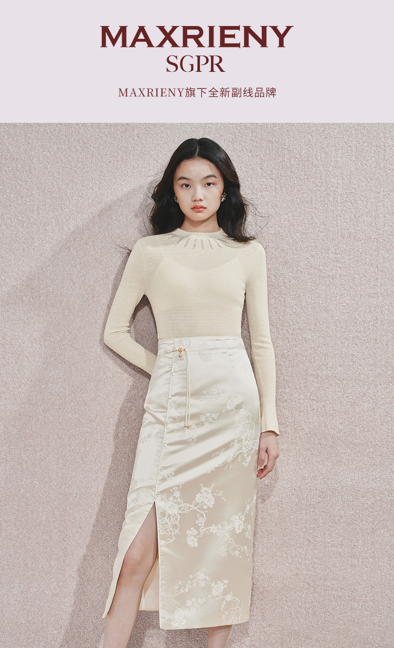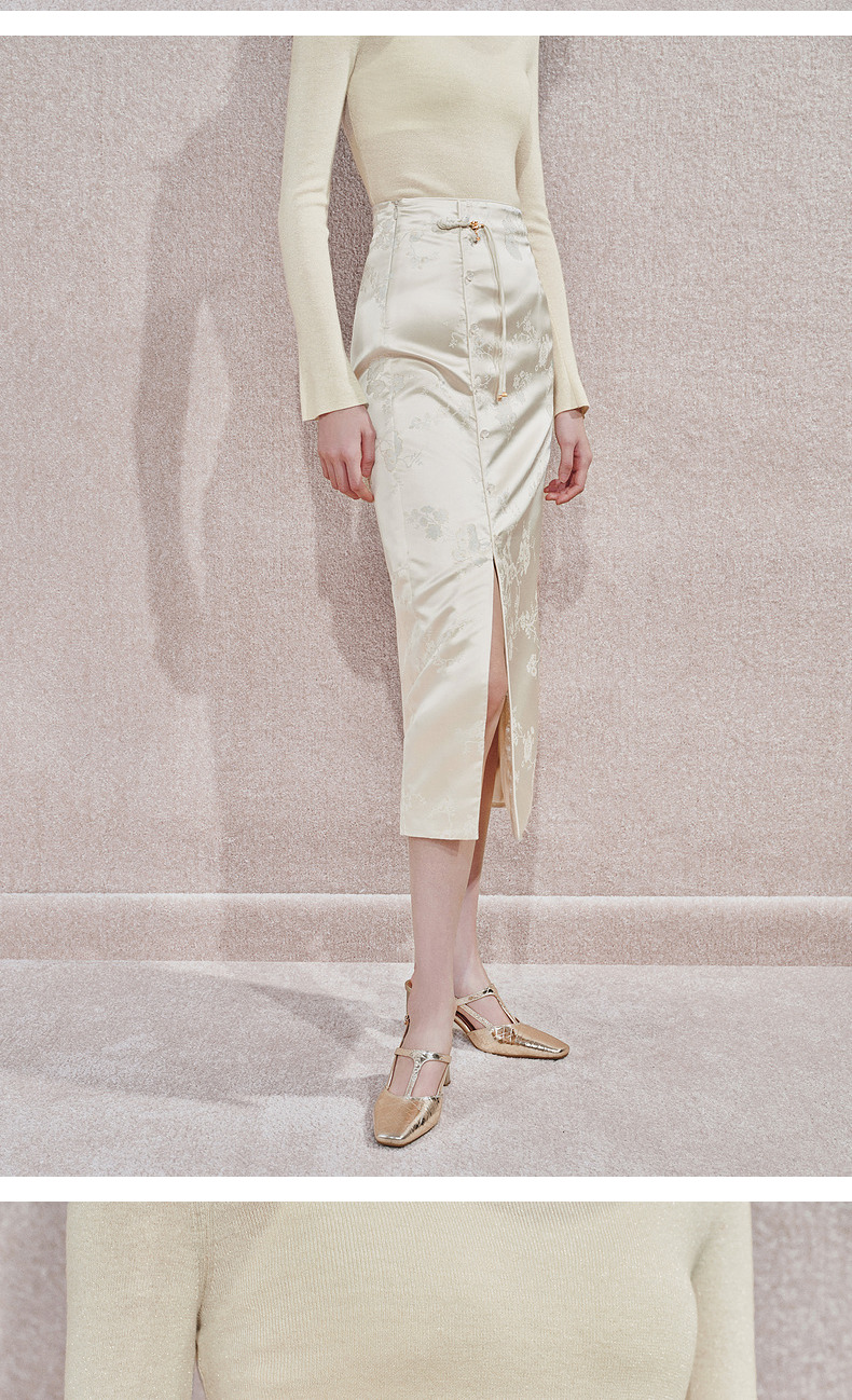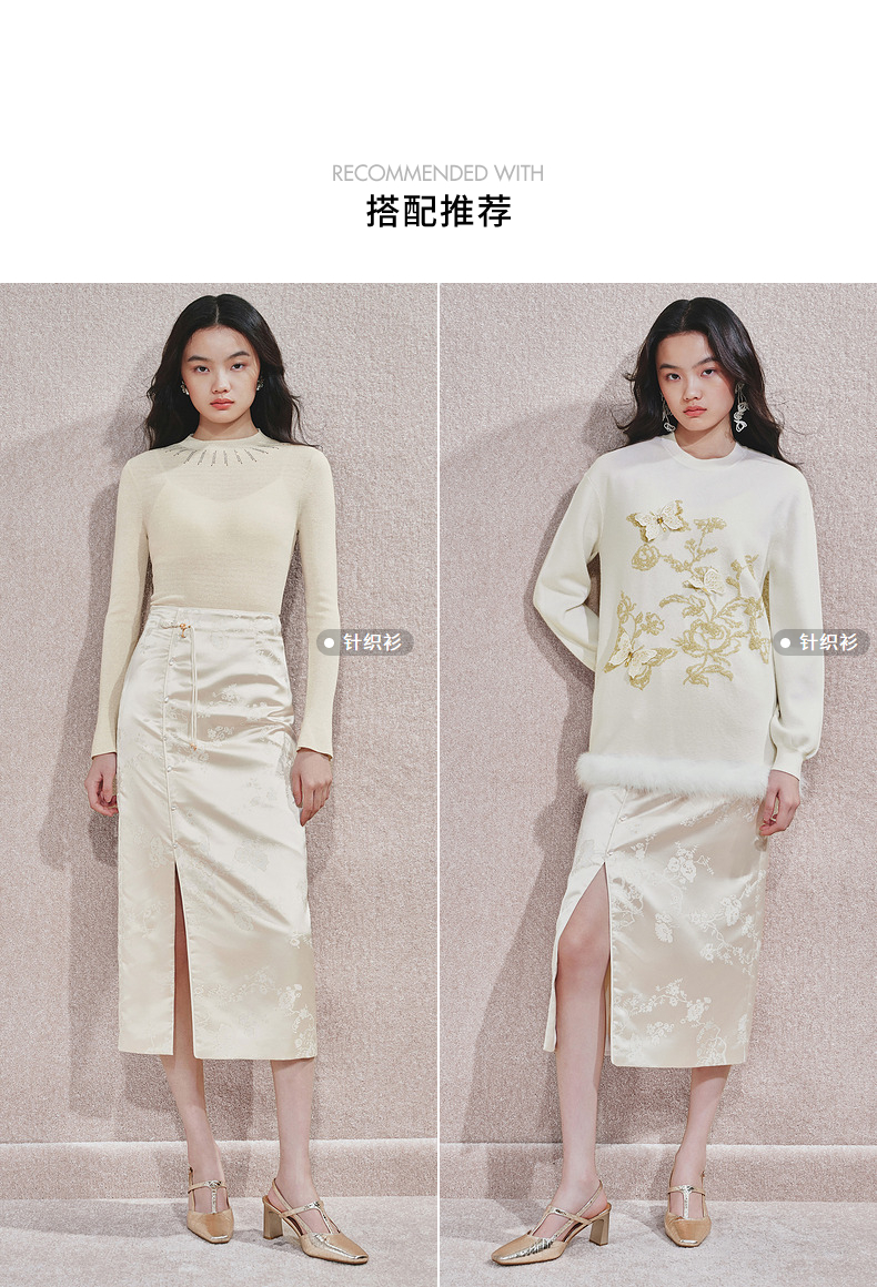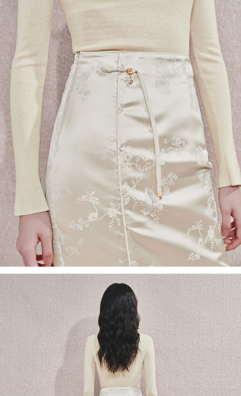 [东方新摩登]MAXRIENY贵雅新中式半身裙盘扣装饰提花裙子秋冬新款(货号:MS85SK510)