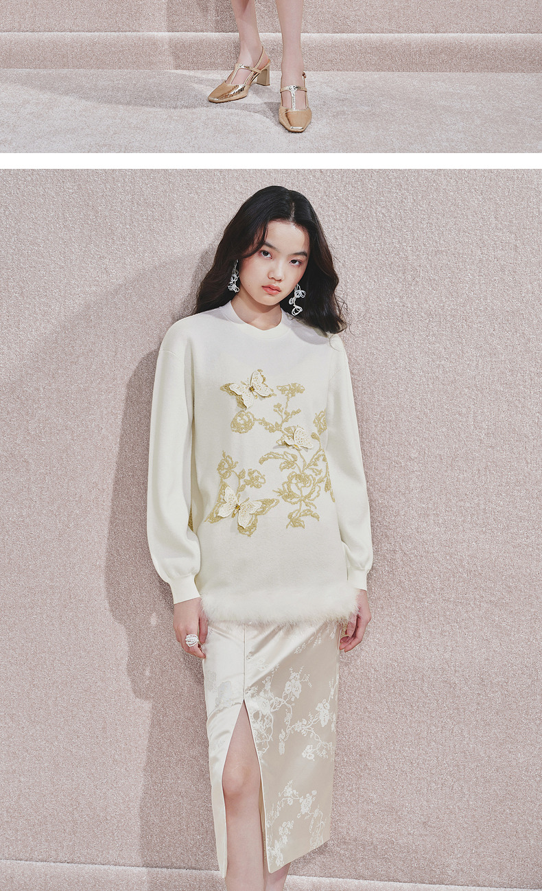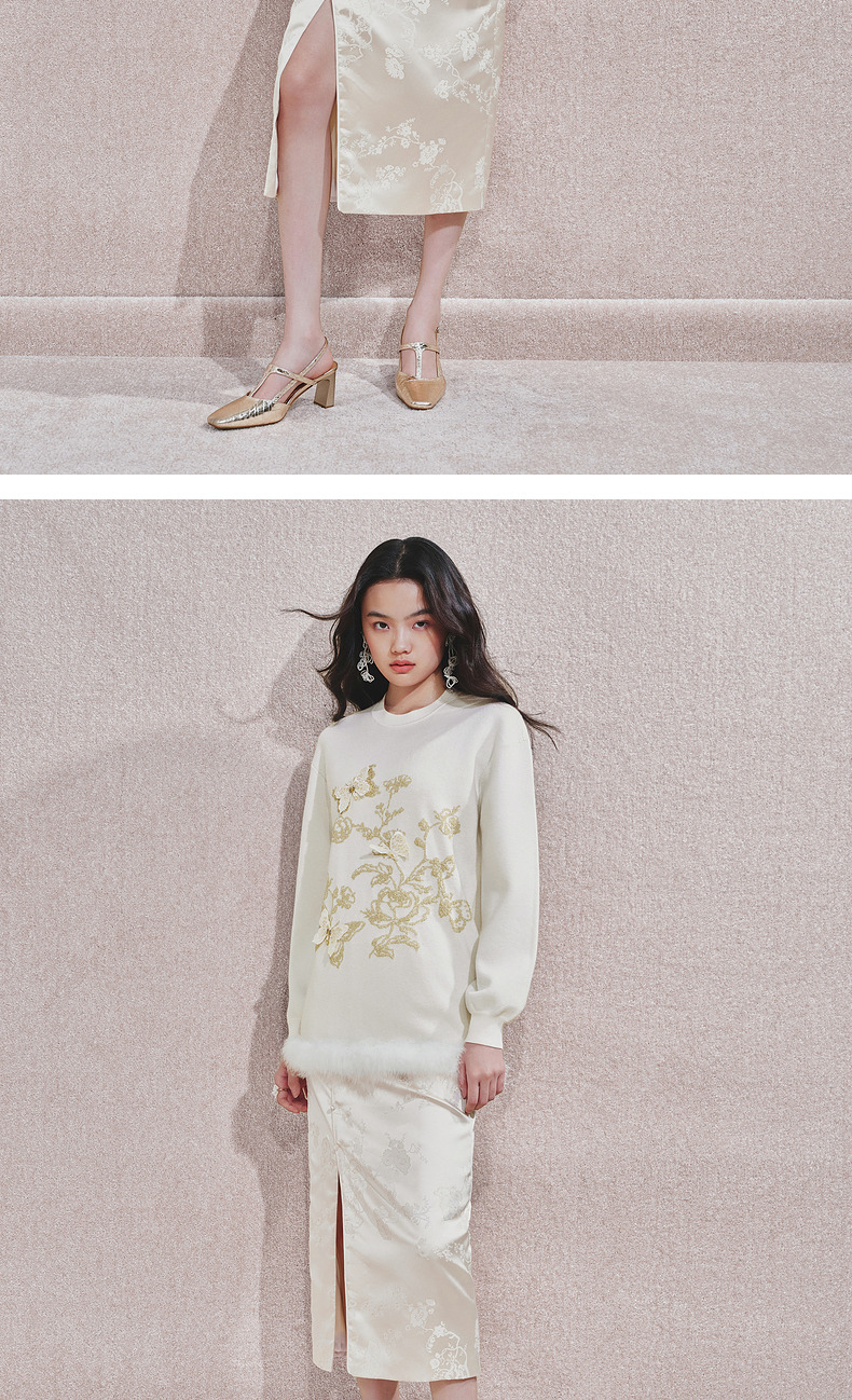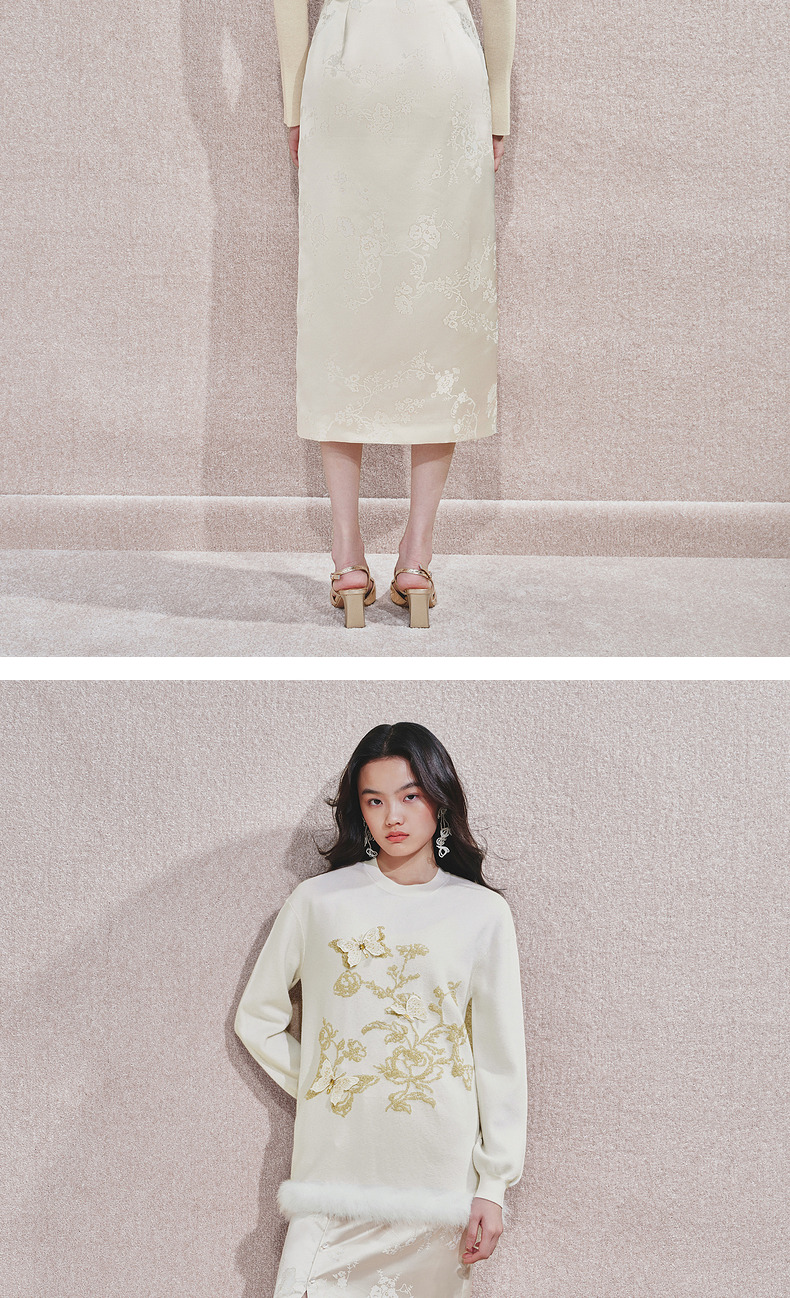 [东方新摩登]MAXRIENY贵雅新中式半身裙盘扣装饰提花裙子秋冬新款(货号:MS85SK510)