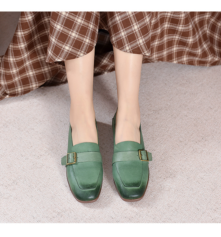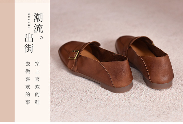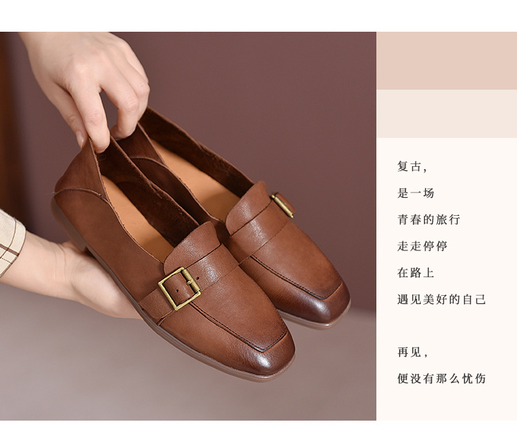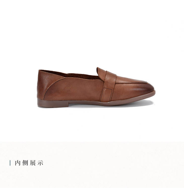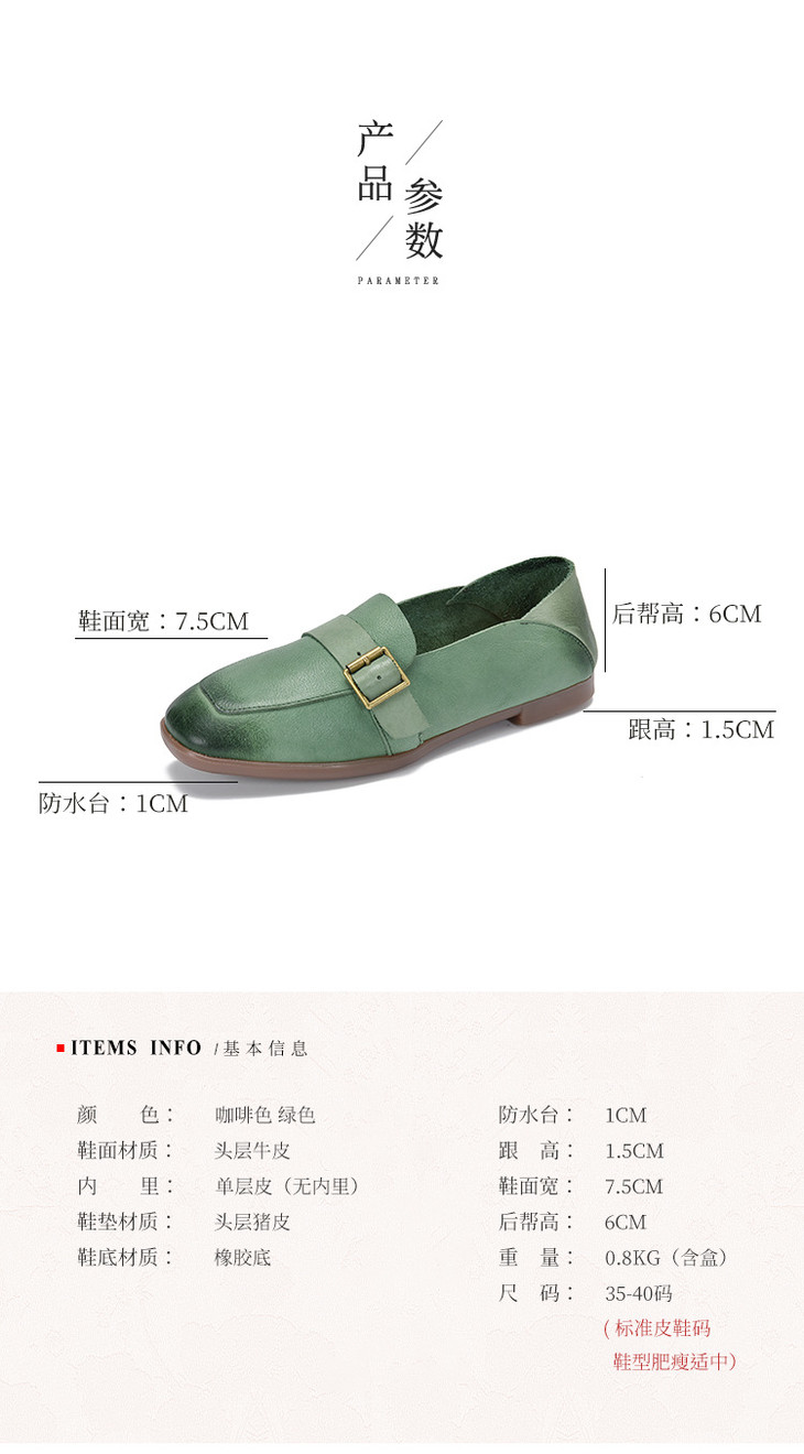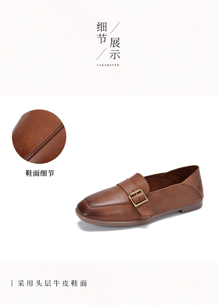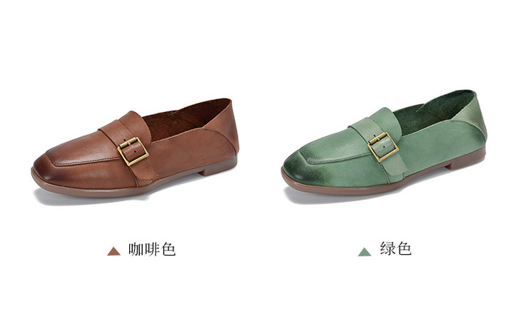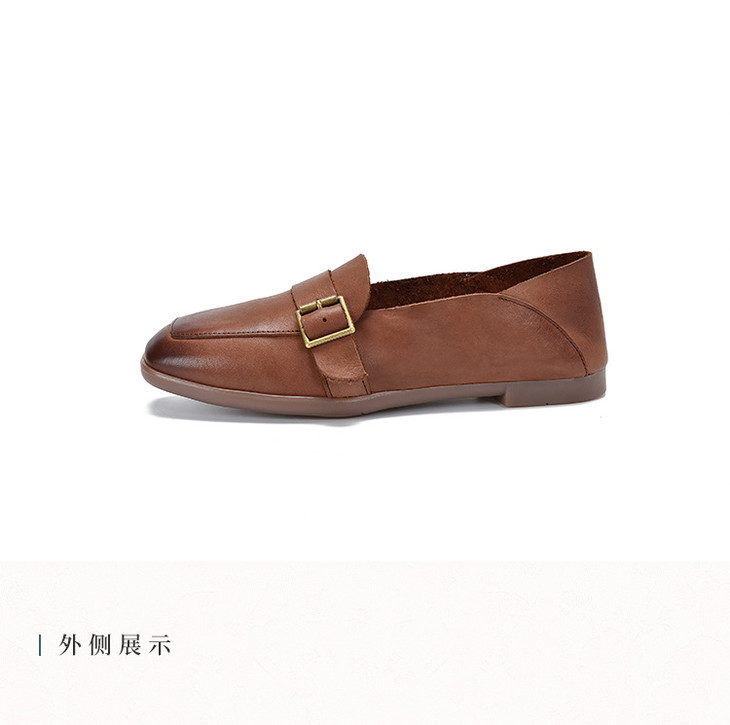 TN T83056-11英伦风真皮金属扣方头小皮鞋头层牛皮懒人鞋