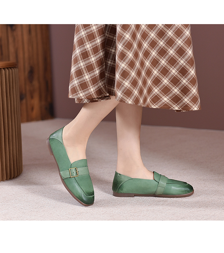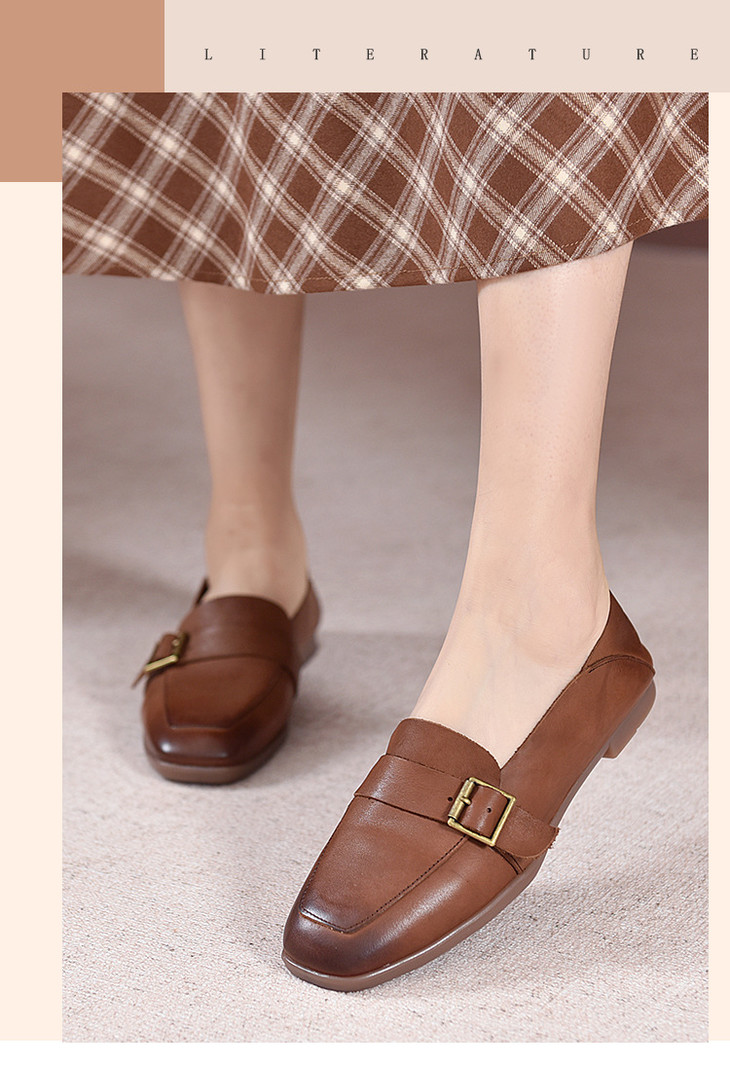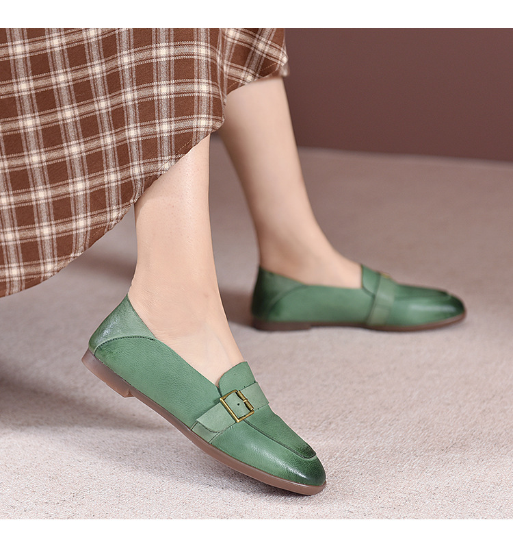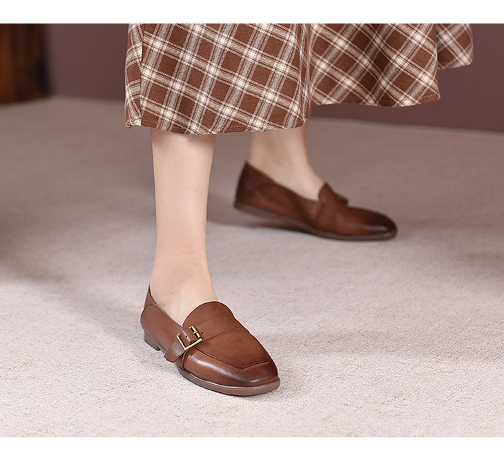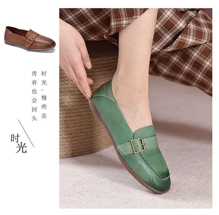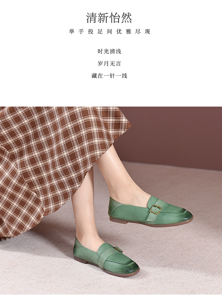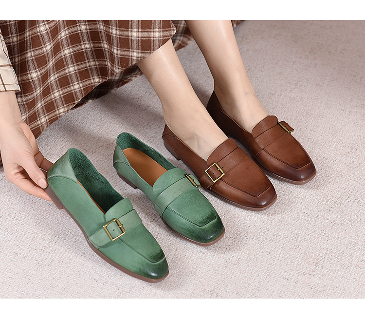 TN T83056-11英伦风真皮金属扣方头小皮鞋头层牛皮懒人鞋